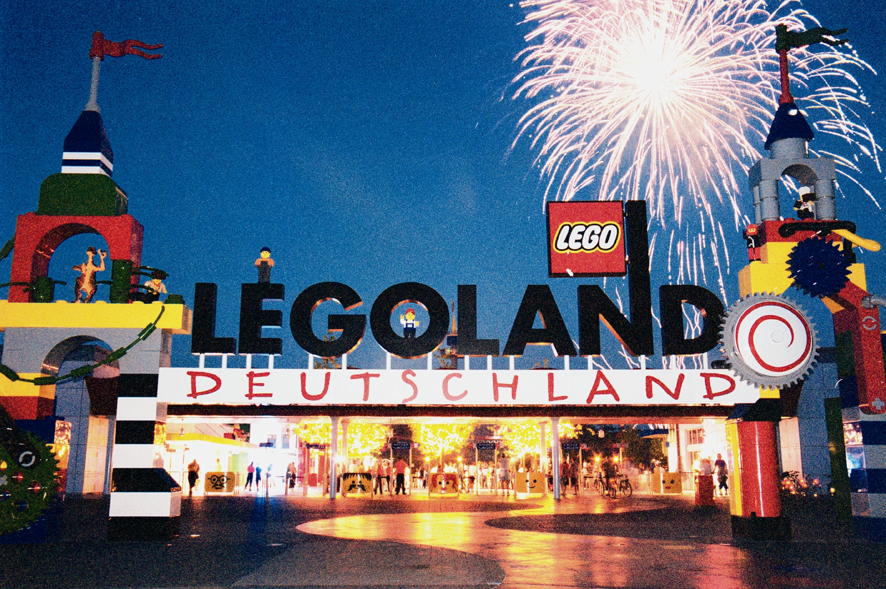 Zum glanzvollen Abschluss richten sich die Blicke erwartungsvoll in den dunklen Nachthimmel, denn ein gigantisches Feuerwerk mit Sternenregen und Lichterfunken wird den Himmel über dem LEGOLAND erstrahlen lassen und das Motto Feuer und Flamme an den Himmel zeichnen.