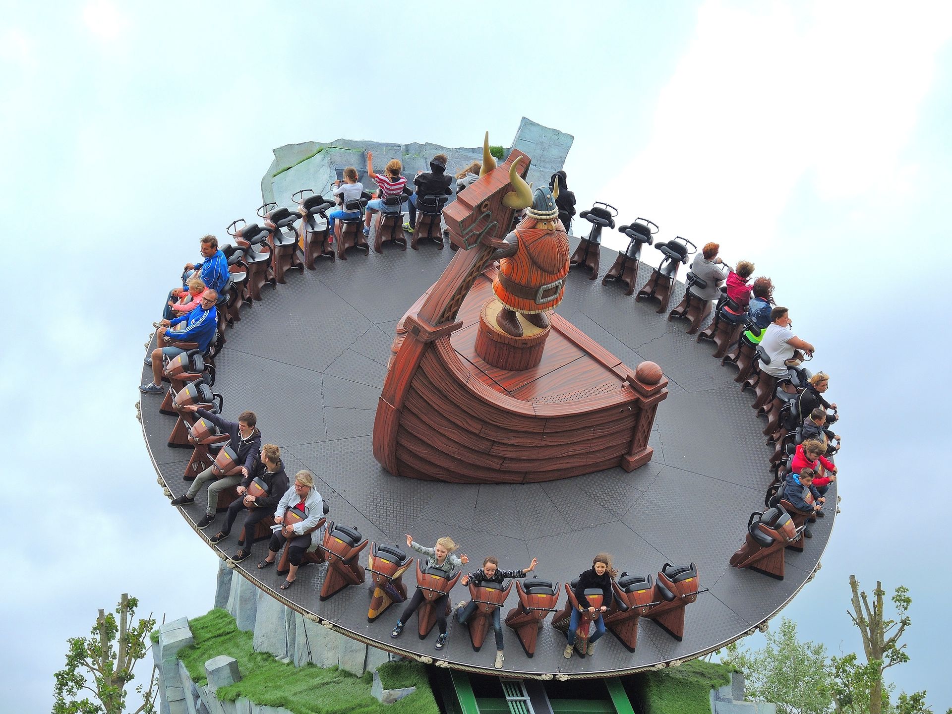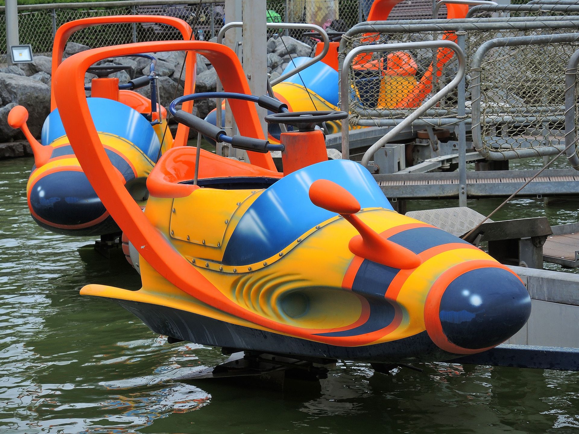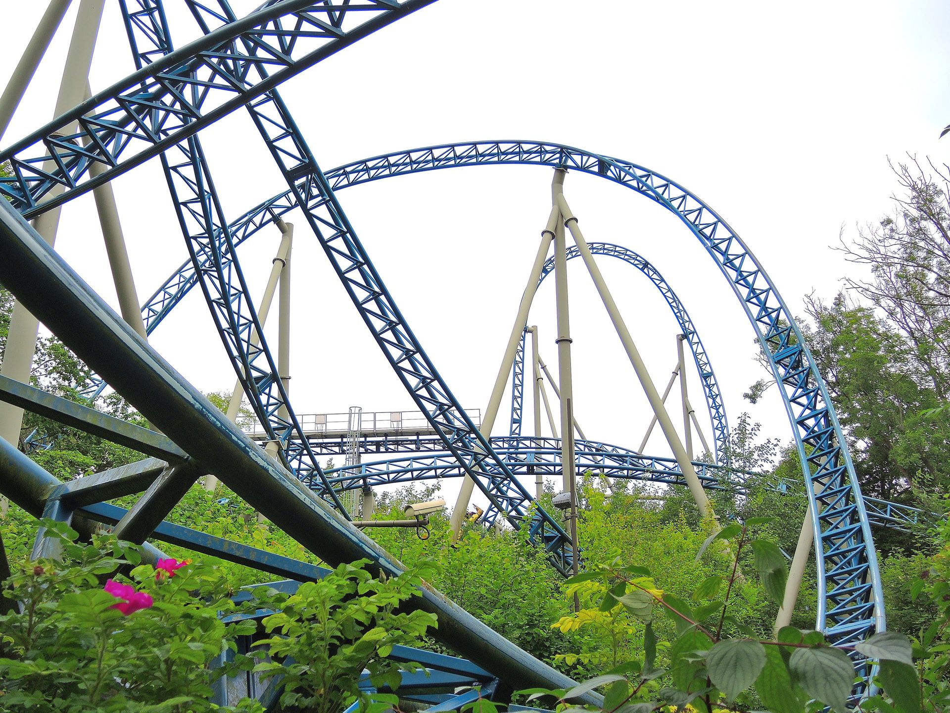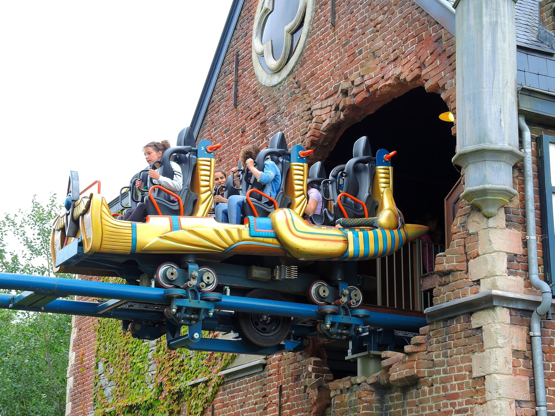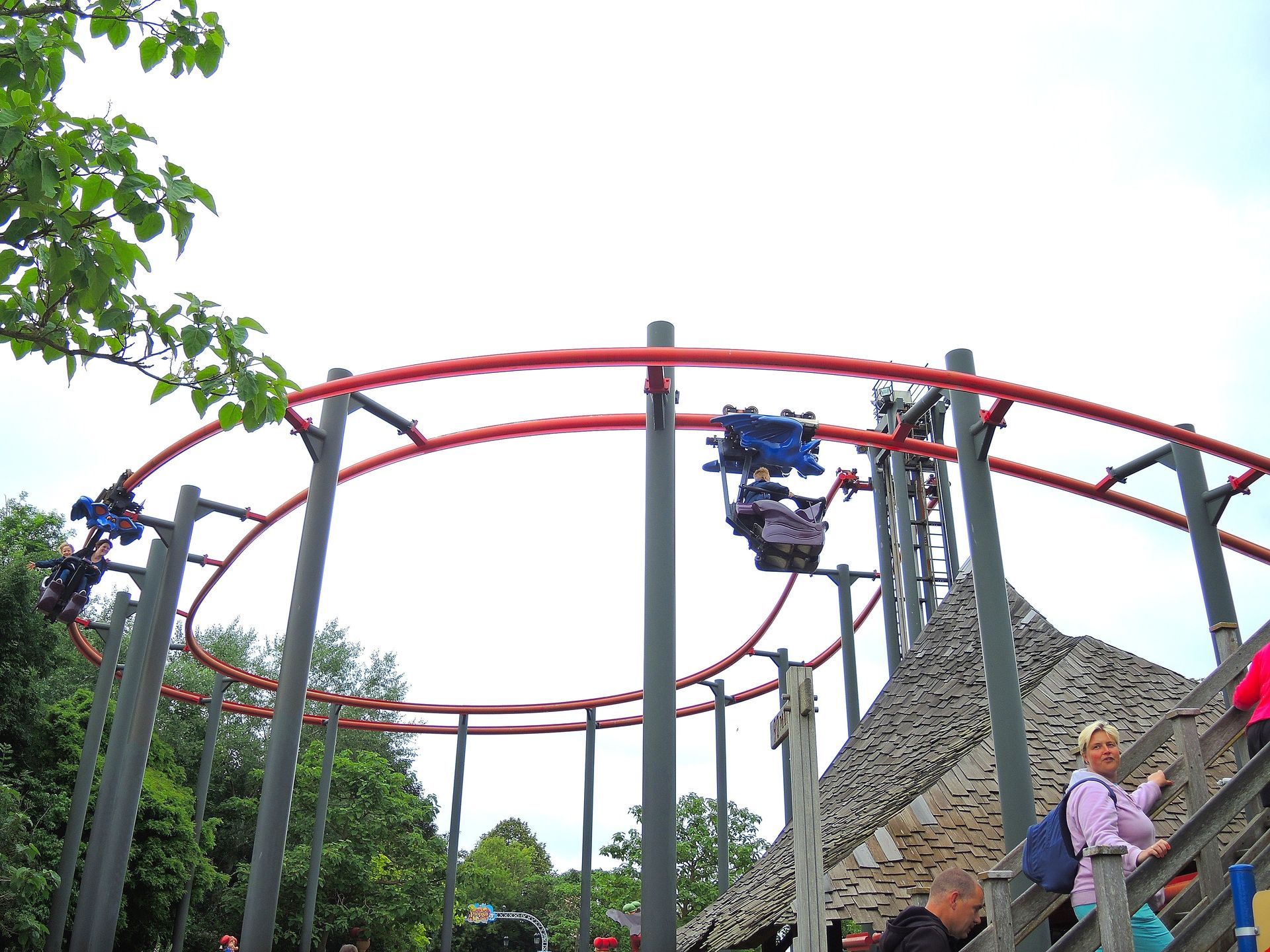 Als erstes begegnet man dem Disk'O-Coaster von Zamperla dessen Fahrbahn direkt über den Eingangsbereich führt.