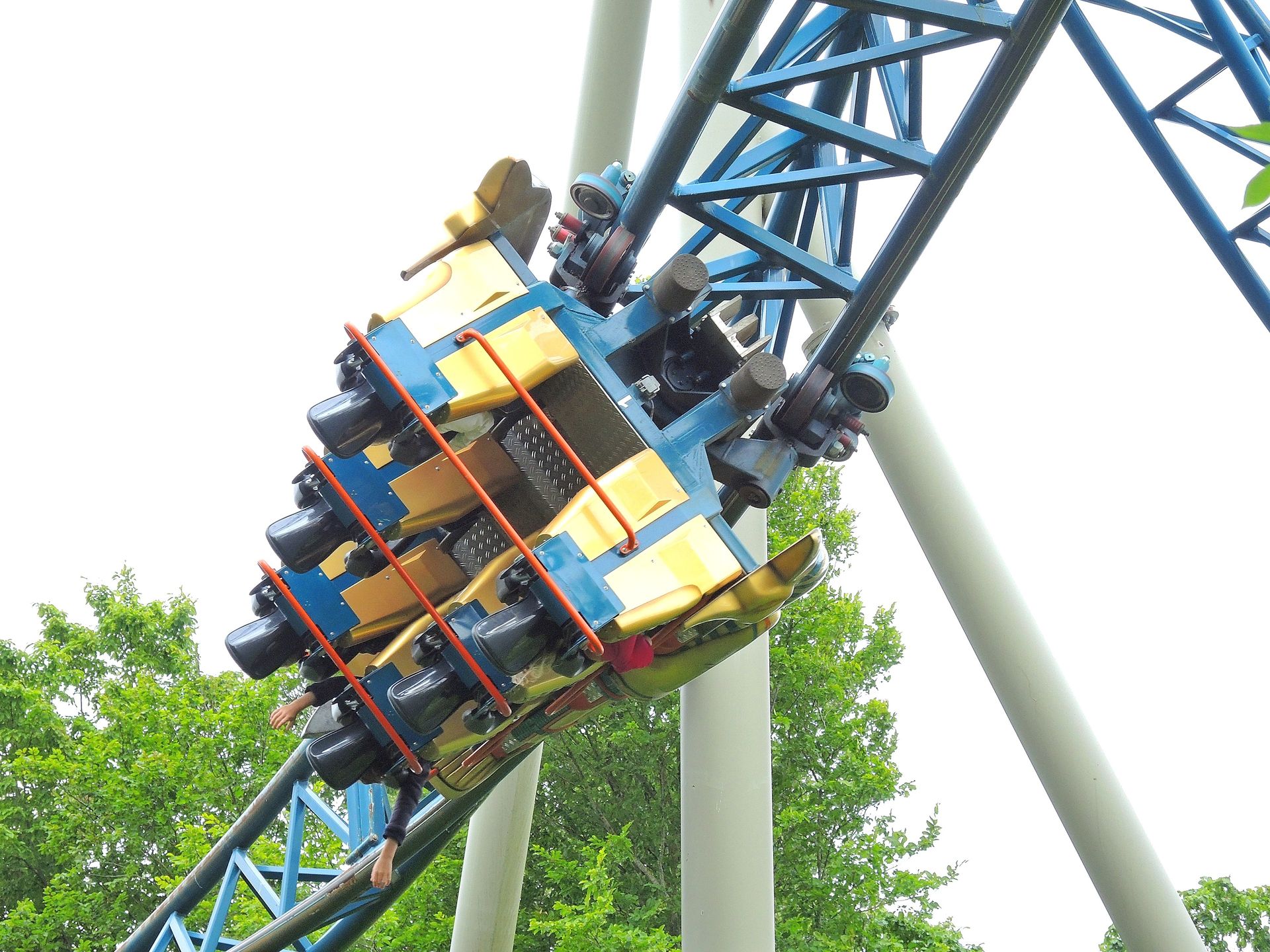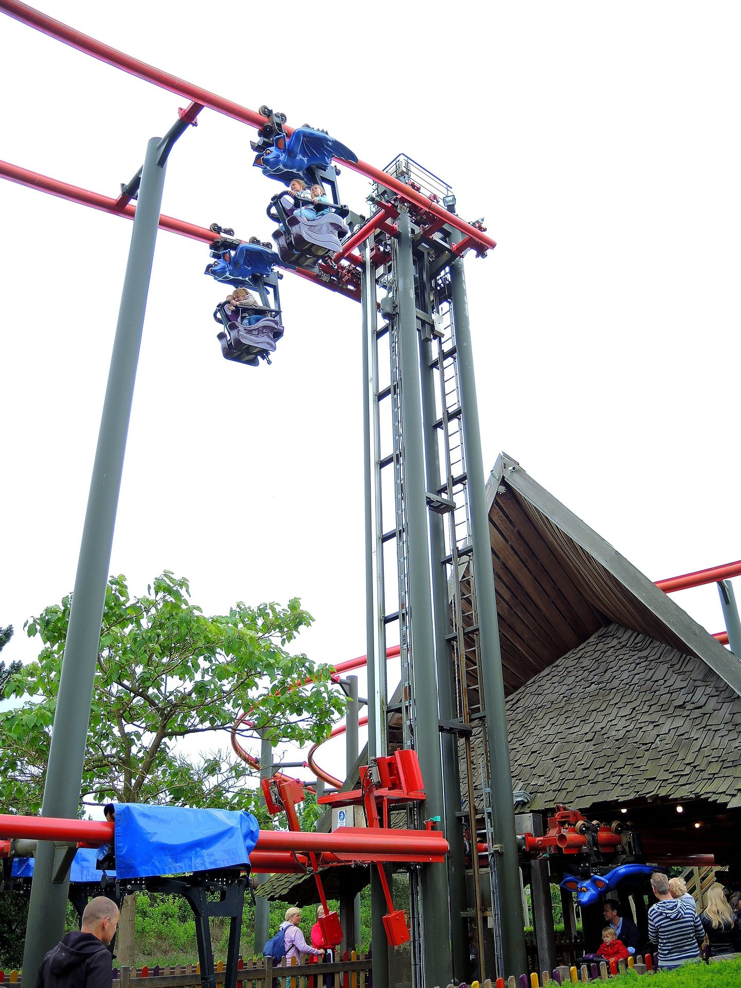Eigentlich ist die "Fledermaus" ein sehr interessanter Coaster mit der ungewöhnlichen Sitzposition und dem Vertikalaufzug, aber leider viiiiiieeeeel zu kurz. Da ist die Fahrt schneller zu Ende als sie angefangen hat.