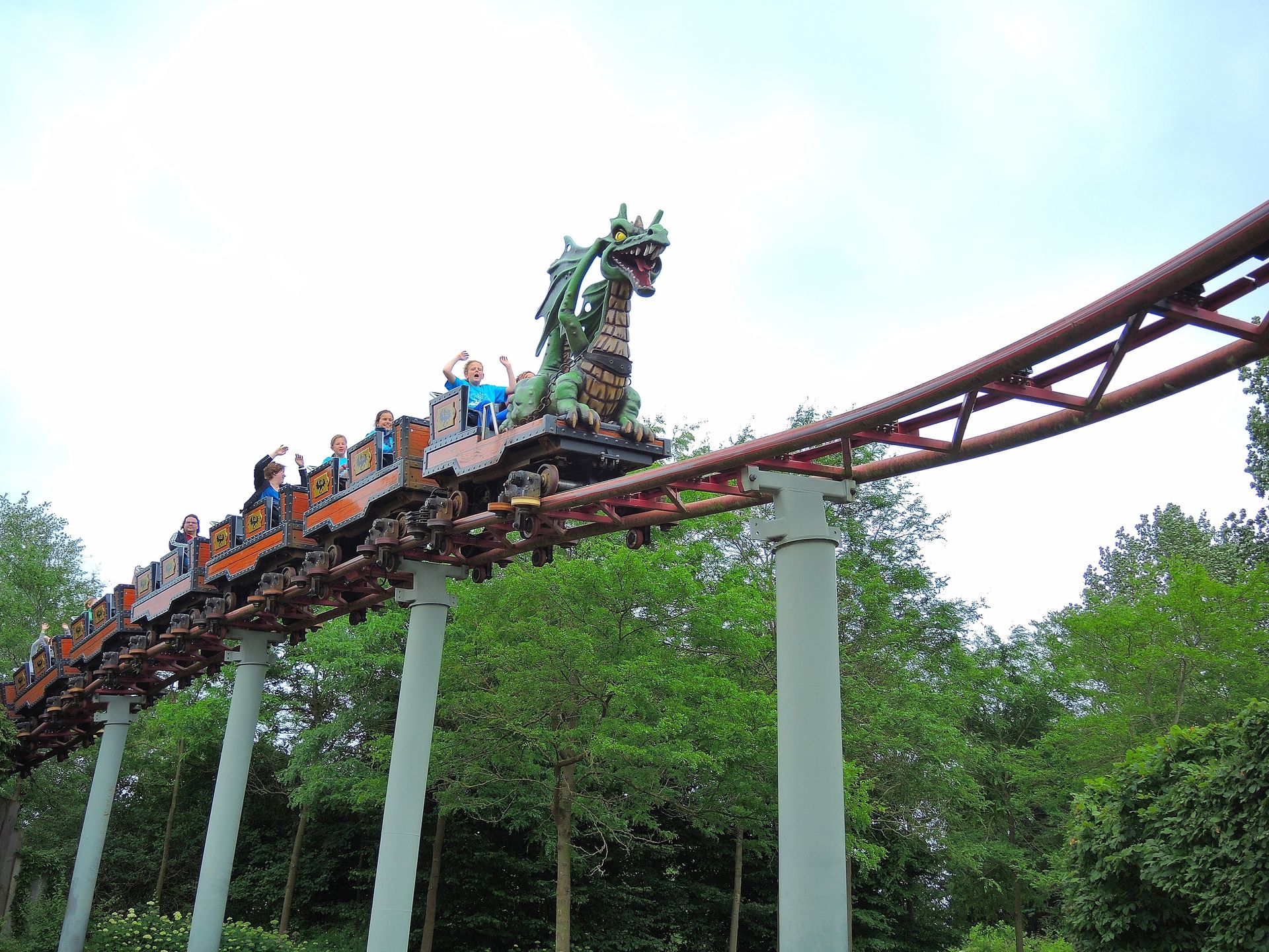 "De Draak", Powered-Coaster mit großer Streckenlänge und sehr schön design'tem Bahnhofsbereich.