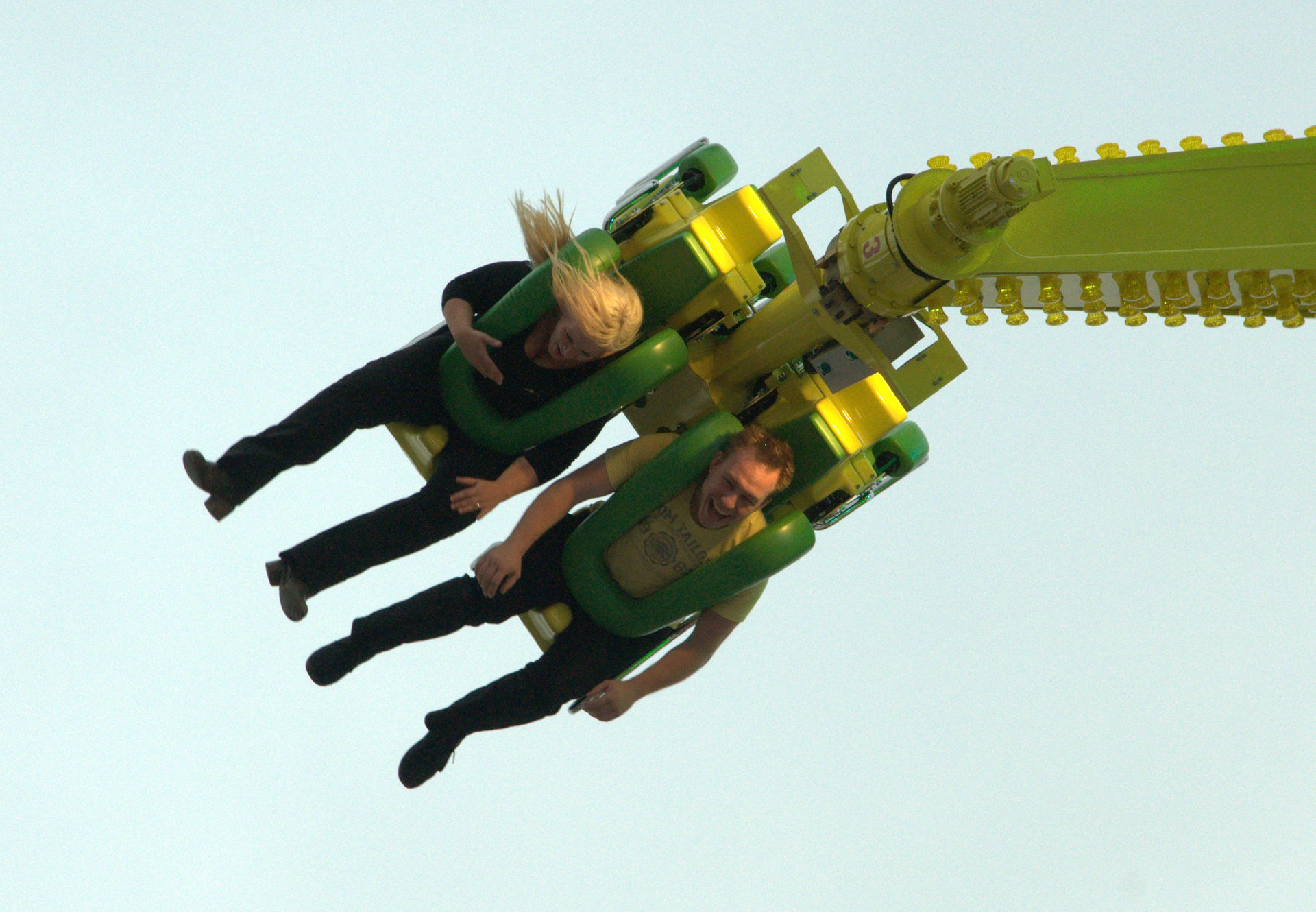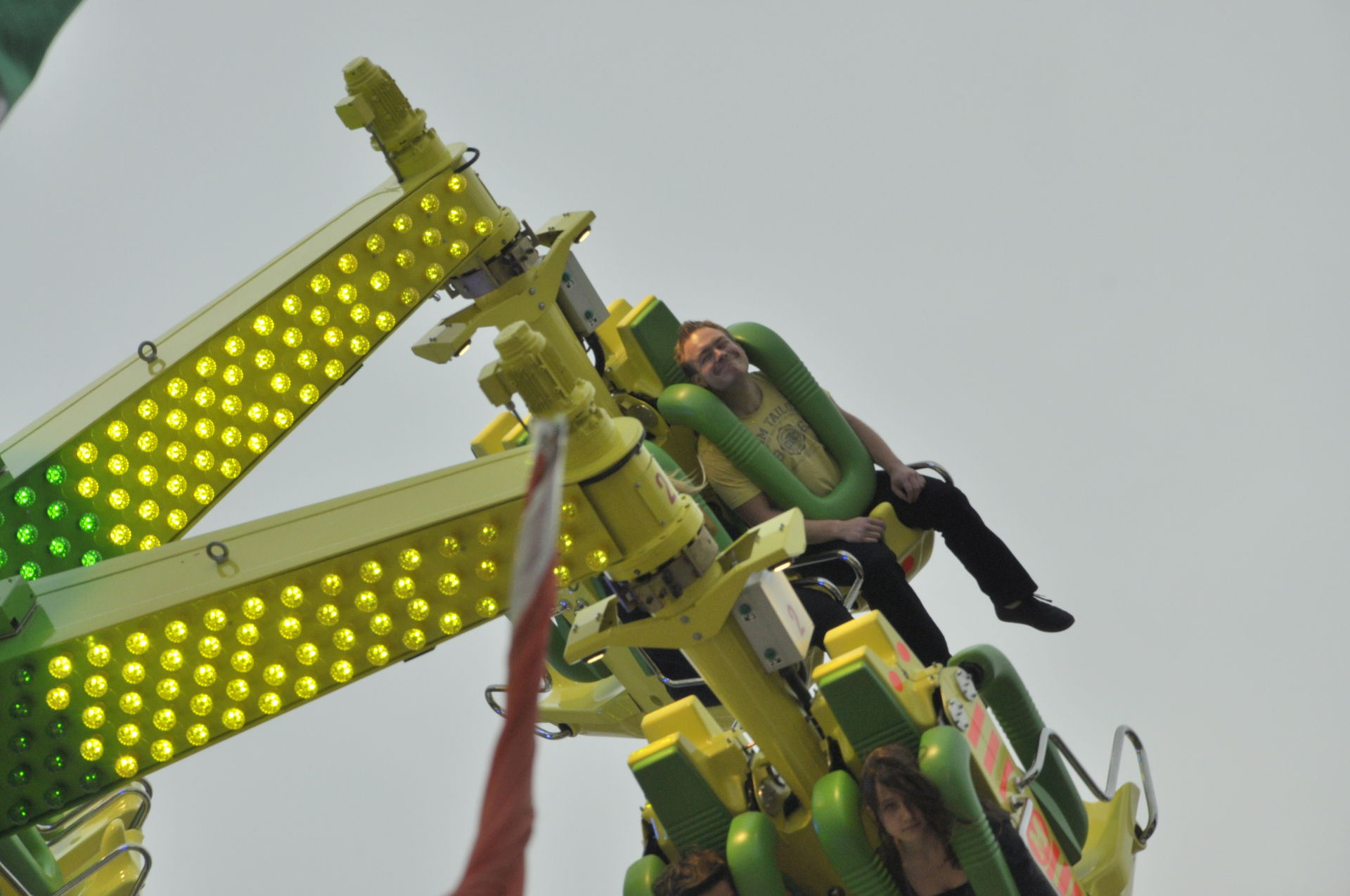 Bei einer späteren Wiederholungsfahrt hab ich das Karussel dann auch mal ausprobiert. Die Fahrt ist schon genial und ziemlich intensiv. Von außen sieht man das garnicht so, aber man hängt fast die komplette Fahrt vorne im Bügel.