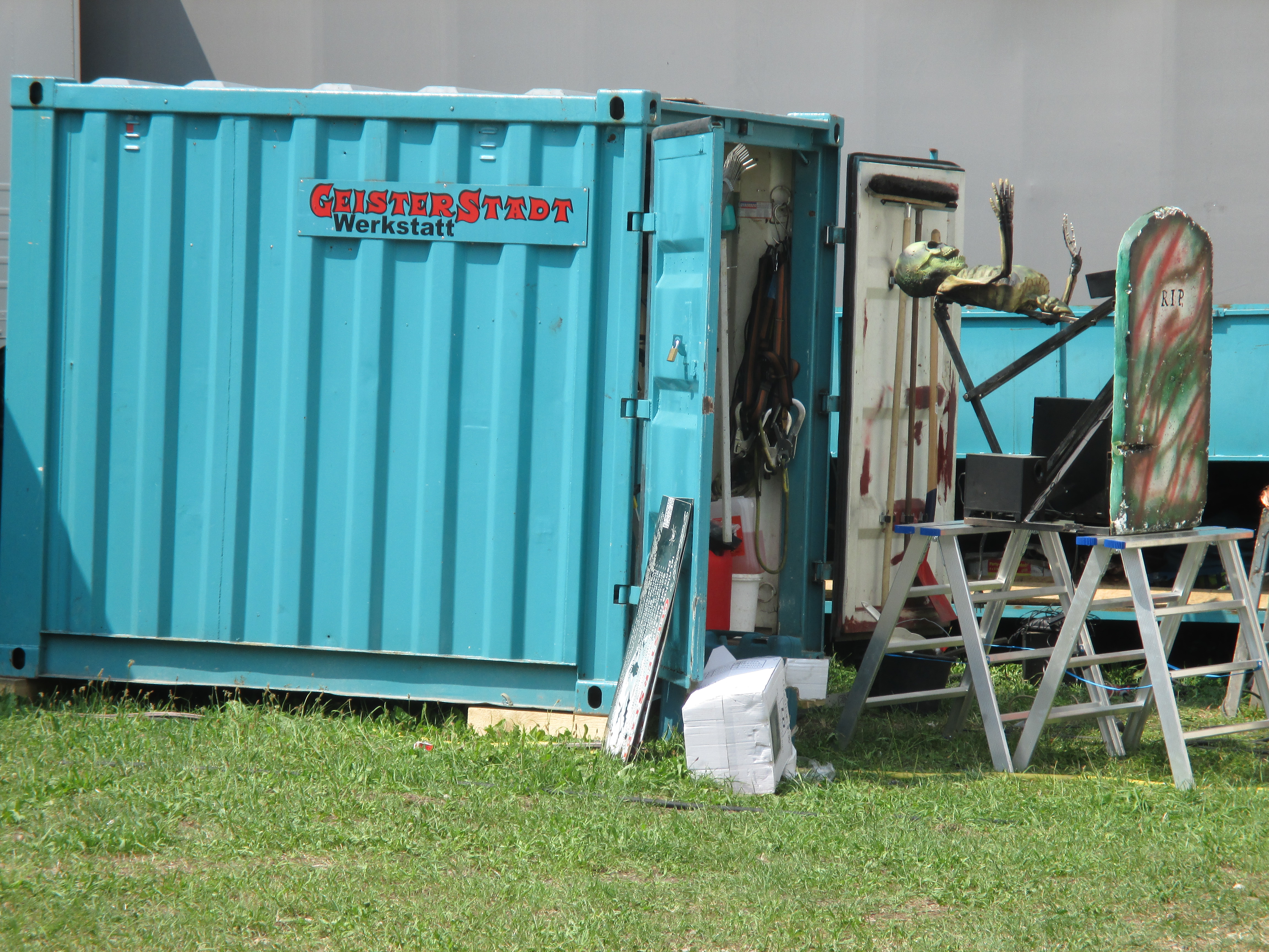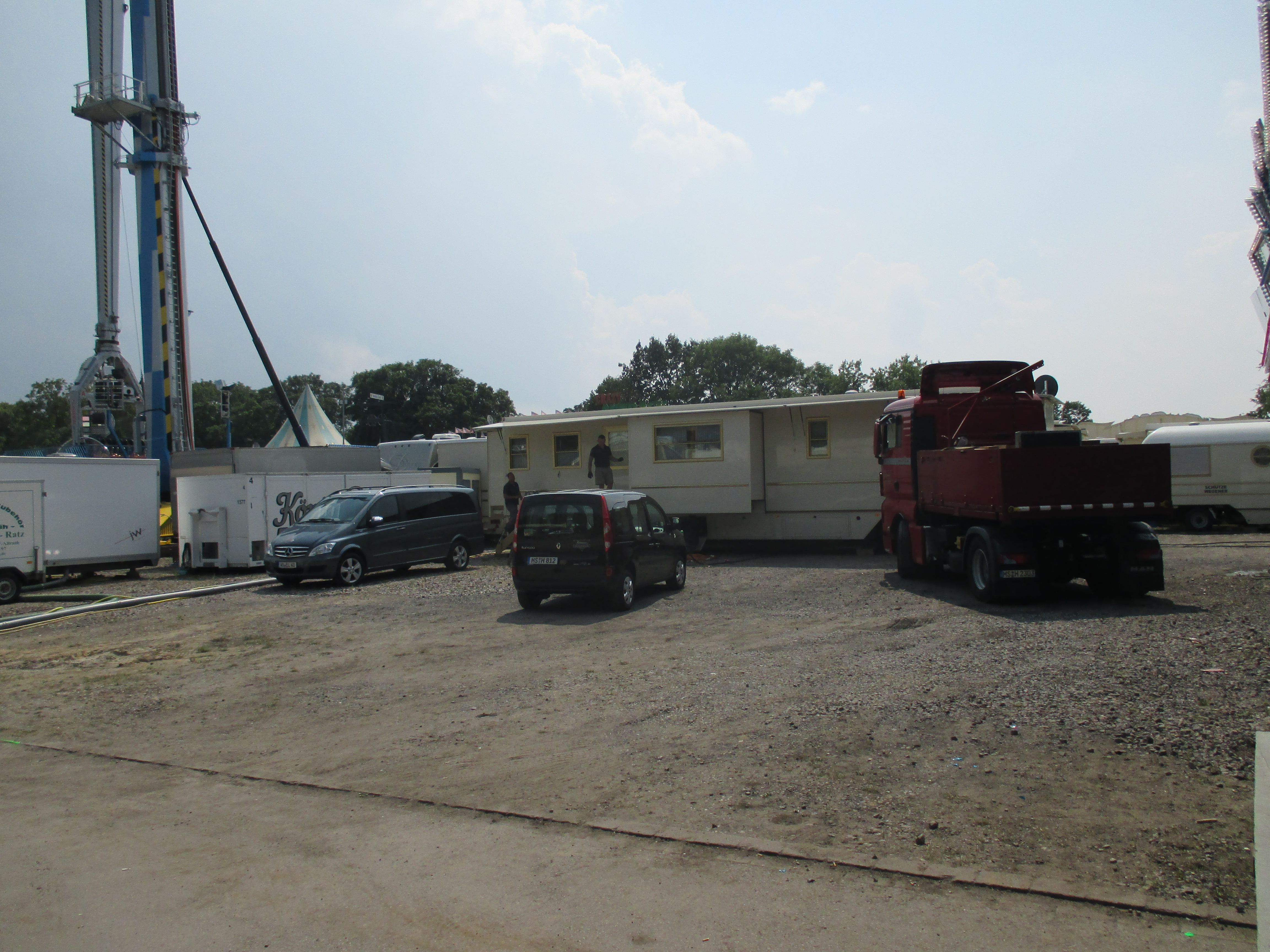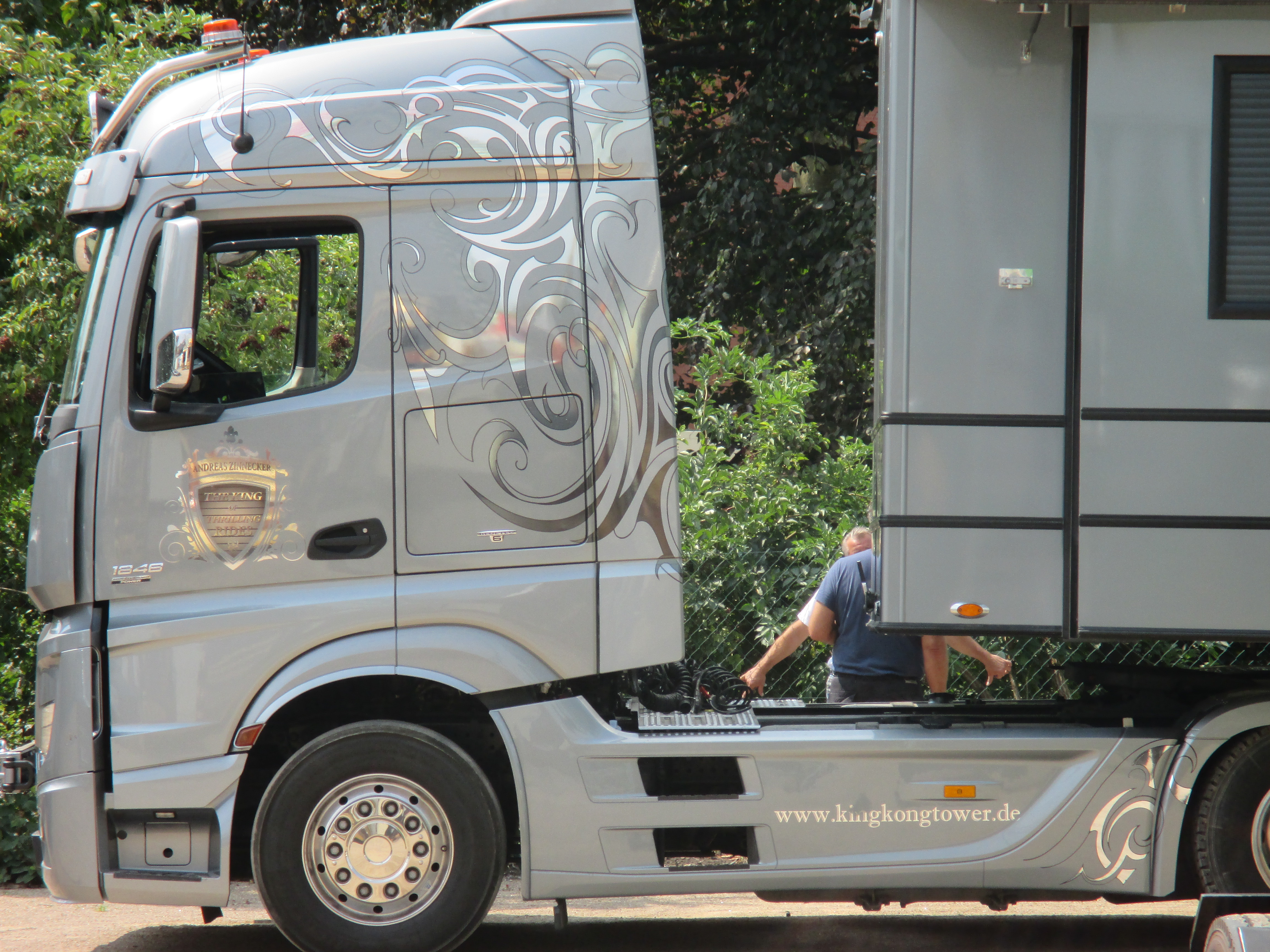 Hinter Lehmanns Horror-Lazarett ist mittlerweile der Wohnwagen-Truck von Zinneckers Mega King Tower eingetroffen. Dort steht noch der Schriftzug "kingkongtower" auf dem Gefährt.