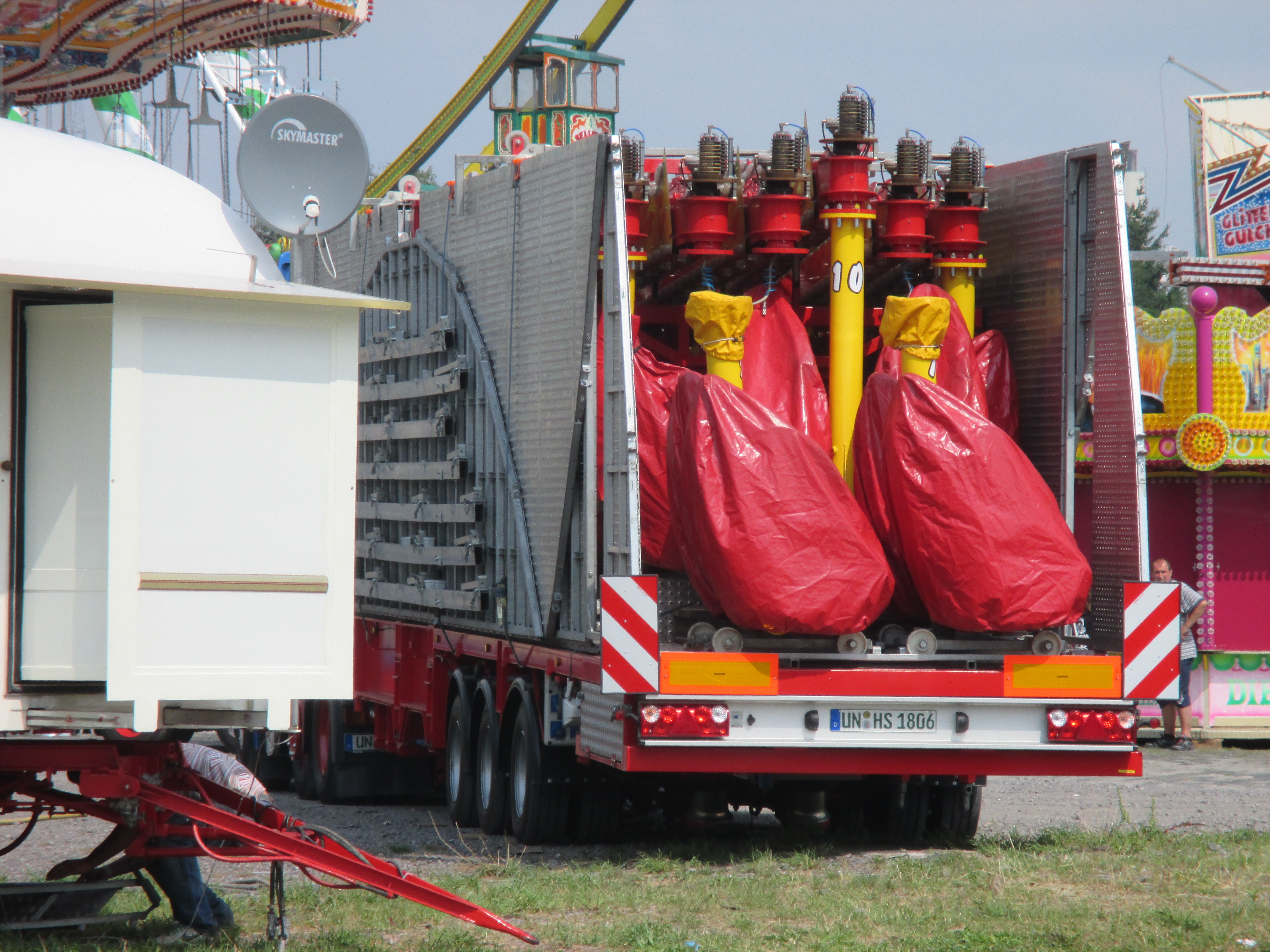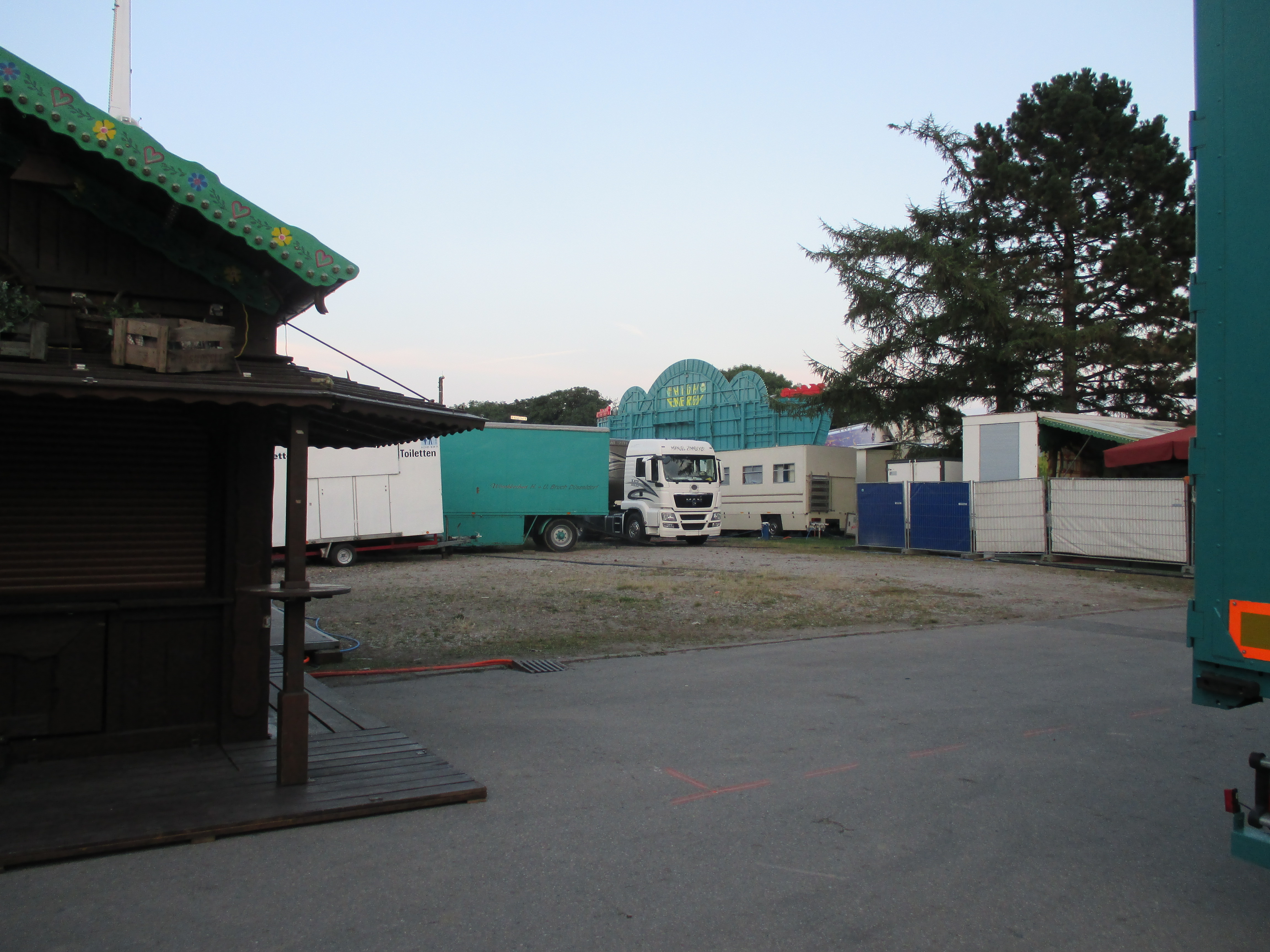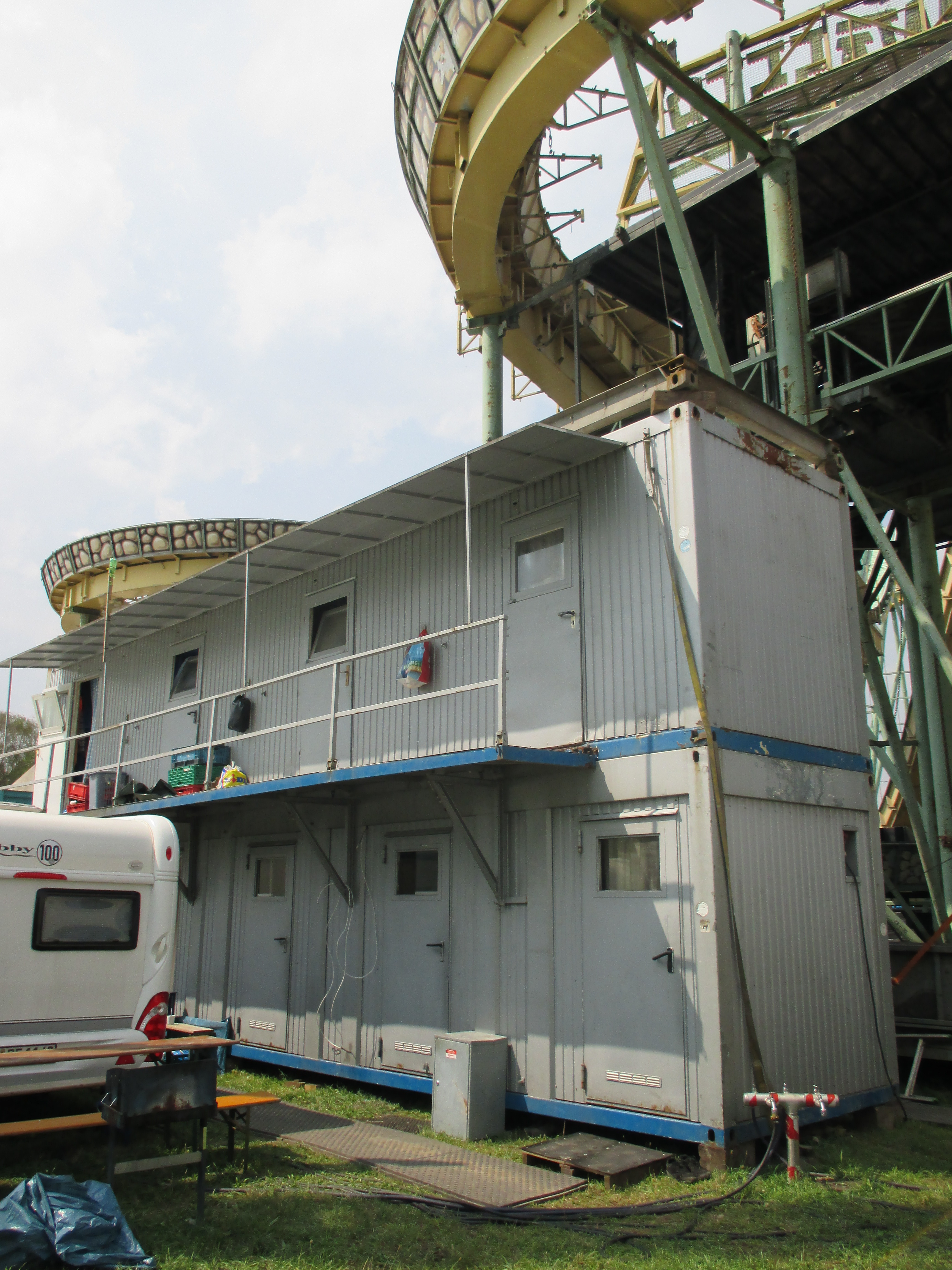Hinter Lehmanns Horror-Lazarett ist mittlerweile der Wohnwagen-Truck von Zinneckers Mega King Tower eingetroffen. Dort steht noch der Schriftzug "kingkongtower" auf dem Gefährt.