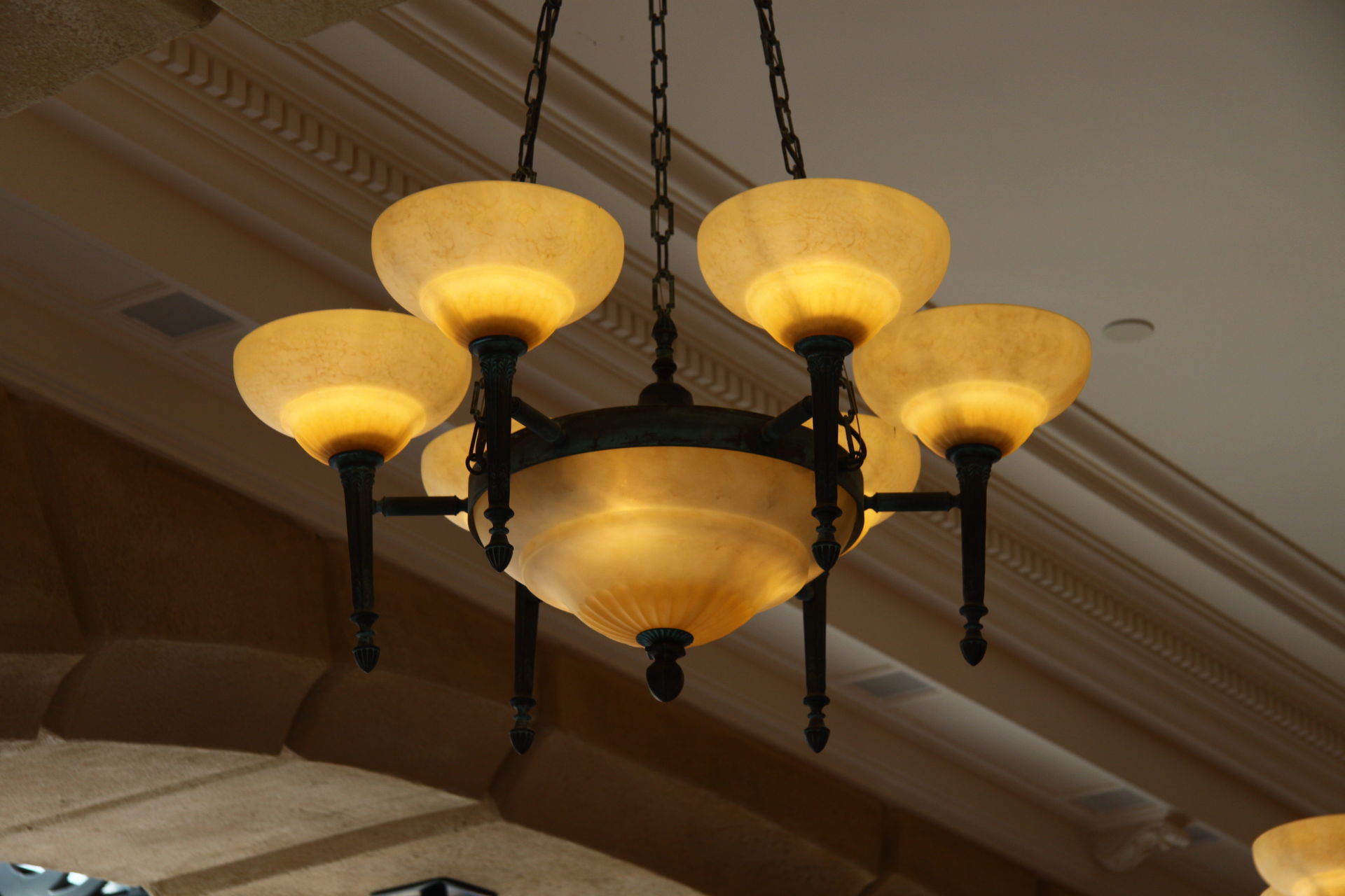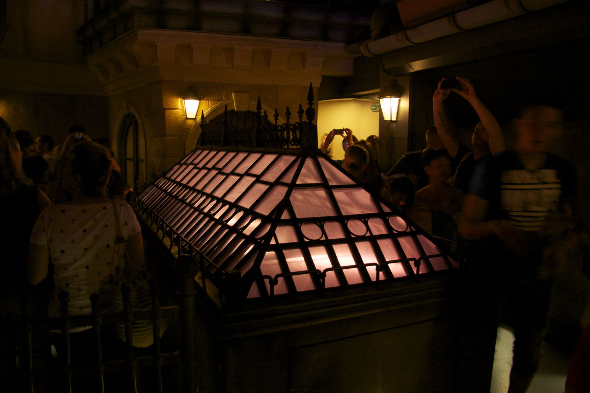 Diese Lampe hängt direkt über dem Eingang zur Halle.