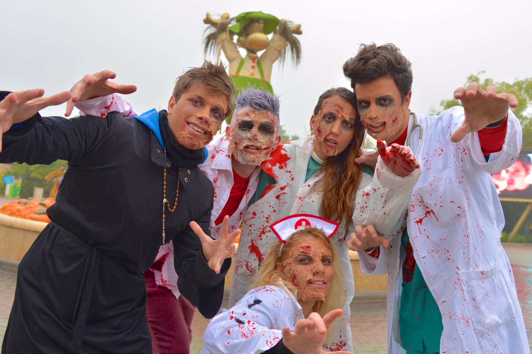 Wie immer ist im Park viel Spaß und Unterhaltung mit phantastischen themenbezogenen Shows und Inszenierungen angesagt, wo die typischen Halloween Symbole natürlich nicht fehlen dürfen: gigantische Kürbisse, die von innen beleuchtet geheimnisvolle Schatten werfen, Maiskolben, Heugarben, riesige Spinnennetze sowie – hört, hört – ein düsterer Friedhof für die ganz Mutigen. … zwischen den dreißig Attraktionen vernimmt man die furchterregendsten Klagerufe von Zombies und hier und da zynisches, eiskaltes Gelächter oder andere unheilvolle Geräusche, die richtig Gänsehaut machen …und, aufgepasst, hinter jeder Ecke können sich böse Geister verstecken, die ganz plötzlich hervorspringen, um den ahnungslosen Gästen einen ordentlichen Schrecken einzujagen.