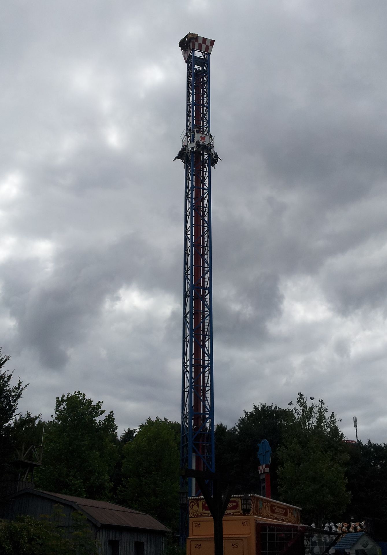Im Anschluss an die Holzachterbahn wollte Alex unbedingt den gegenüberliegenden Sky Diver testen. Ich selbst hatte zwar im Vorfeld auch Interesse bekundet, 19¤ pro Person (bei 2er-Flug) waren mir dann aber doch etwas viel. So musste Alex dann noch ein wenig mehr für seinen Flug bezahlen, während ich in der Zeit schonmal den nächsten Count abarbeitete.