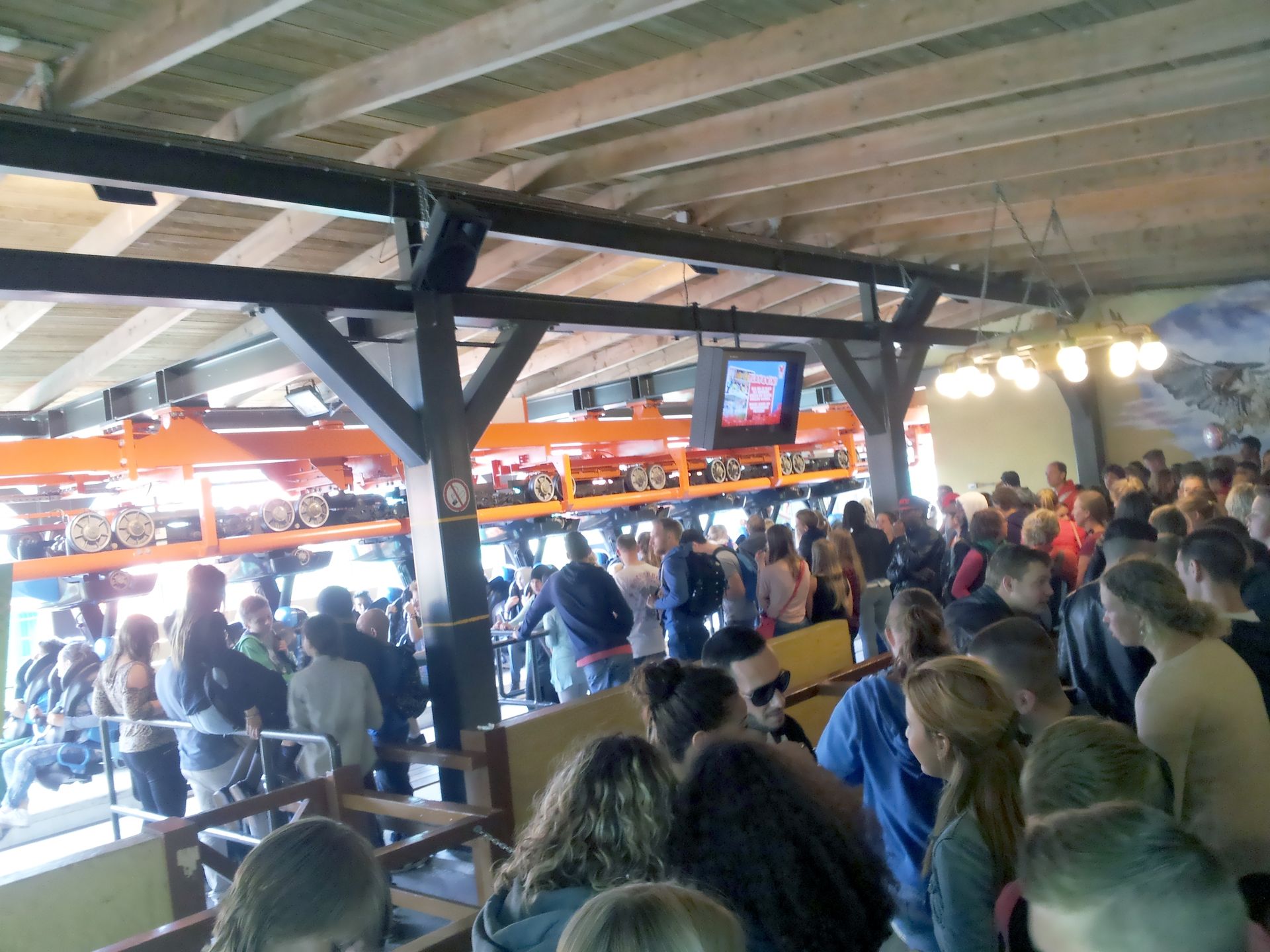 Knappe 20 Minuten mussten wir warten, dann waren gleich mehrere Plätze - sogar komplette Reihen - für uns "Single Rider" frei.