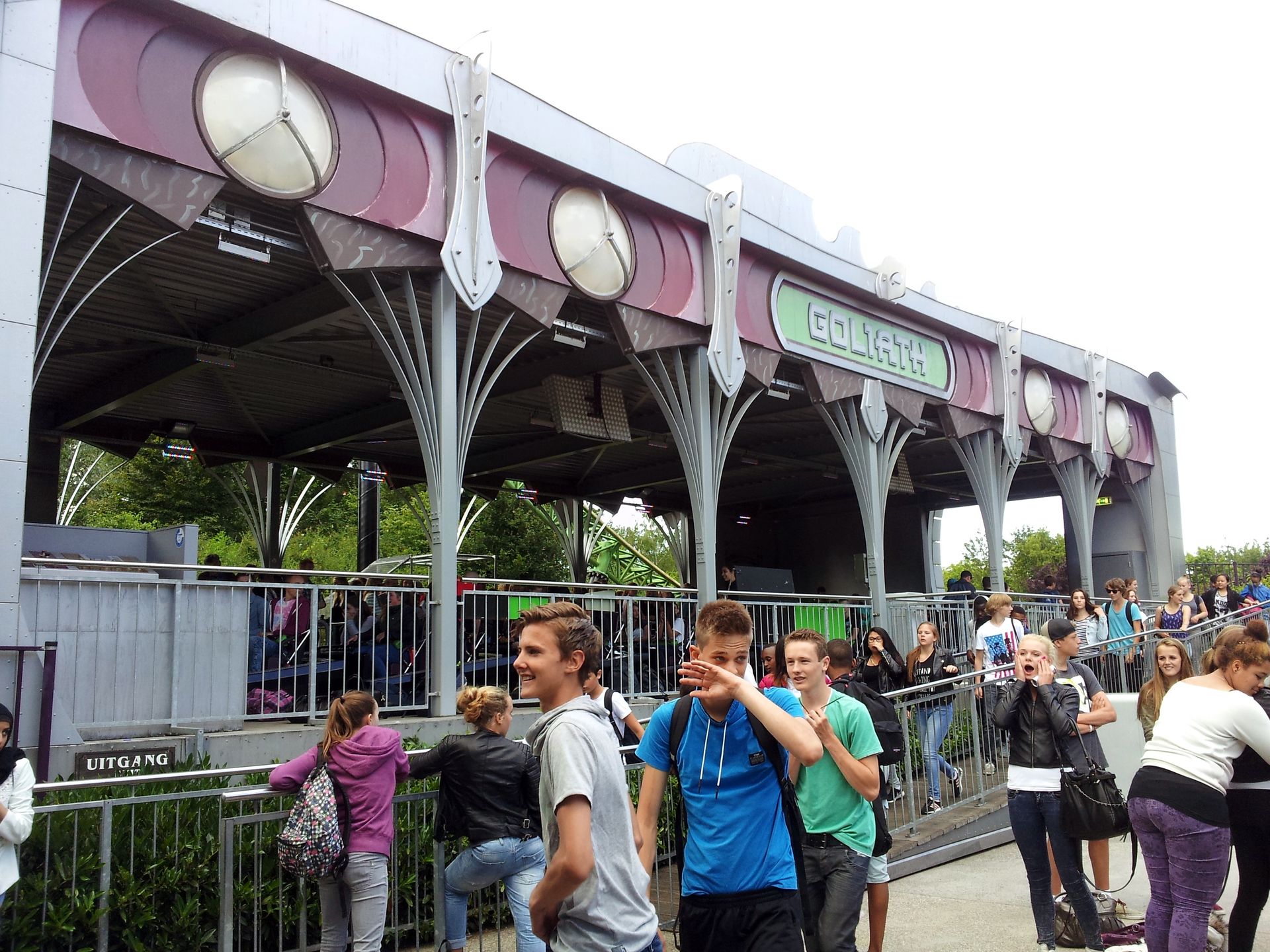 Dort hatten wir zwei Möglichkeiten: Entweder wenige Fahrten abwarten und in der ersten Reihe fahren, oder in der vierten Reihe direkt einsteigen. Wir gingen auf Risiko und entschieden uns für die zweite Variante, um uns anschließend eventuell gleich nochmal anstellen zu können. Doch der Plan ging nicht auf, inzwischen hatte man den Eingang bereits geschlossen. Aber auch so bildete Goliath einen fast perfekten Abschluss eines guten Tages.