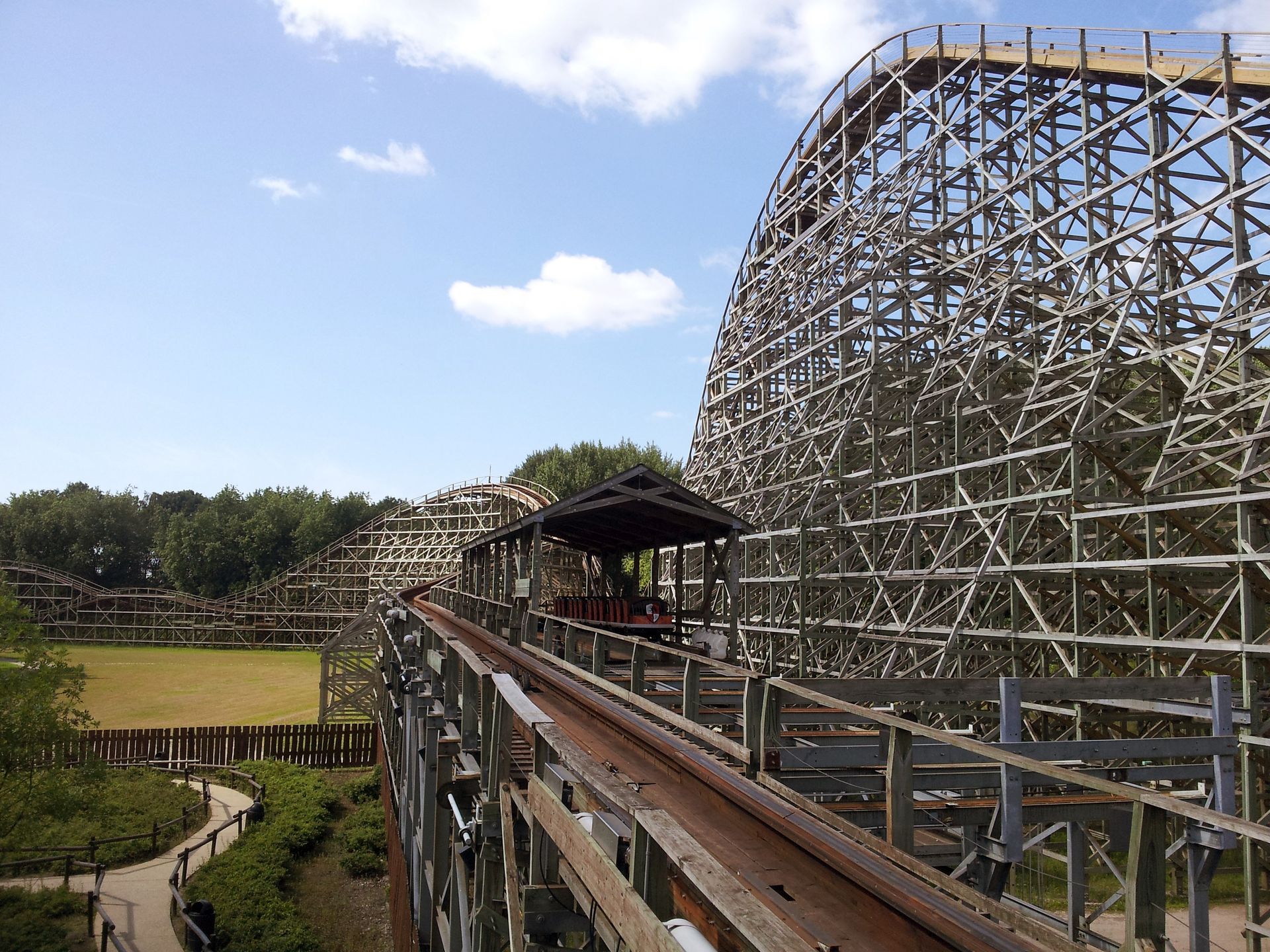 Vekoma bisher nur drei solcher Holzachterbahnen gebaut hat. Denn die beiden in den Walibi-Parks fand ich ziemlich gut. Jedenfalls wesentlich besser als so manche Stahlachterbahn in x-facher Ausführung mit ähnlichen Fahreigenschaften.