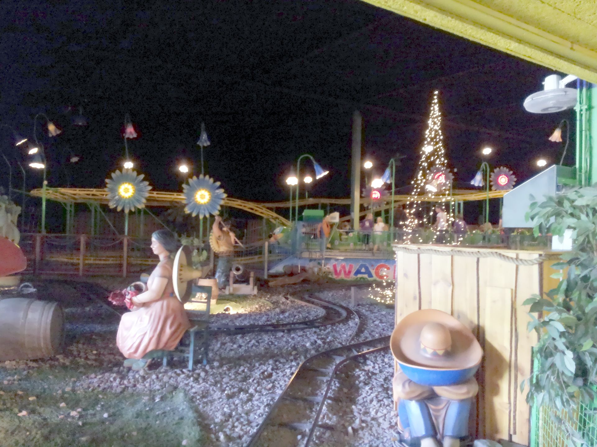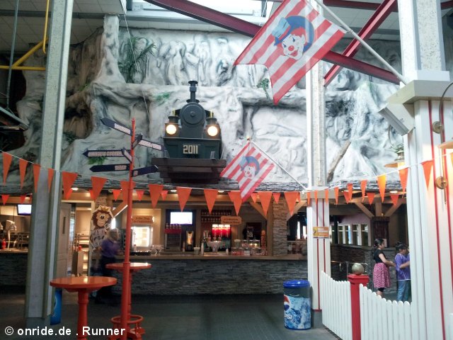 In einem weiteren Anbau finden sich eine Mini-Eisenbahn und die Achterbahn.