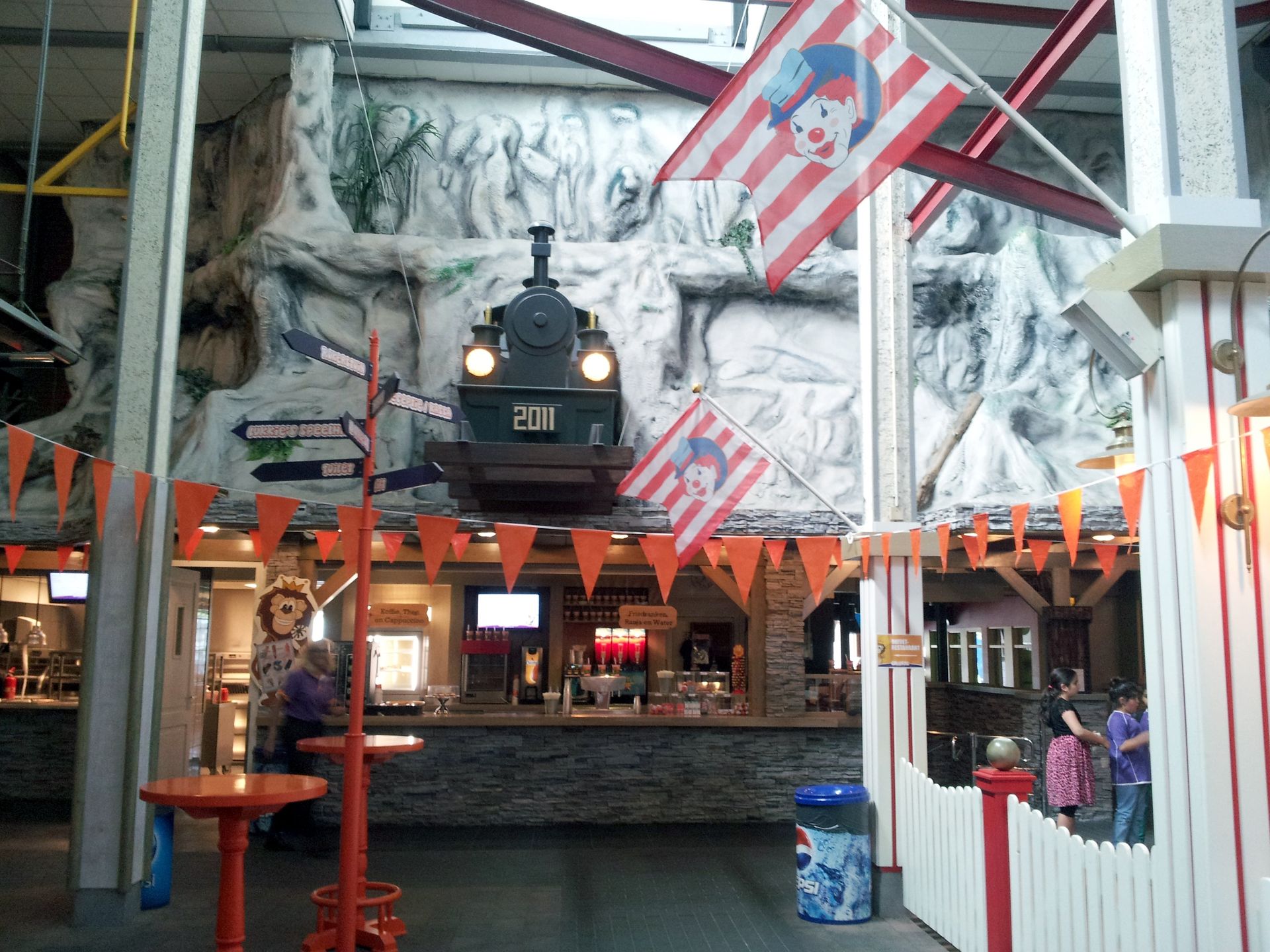 Die rechte Seite der Haupthalle wird von einigen Rutschen dominiert.