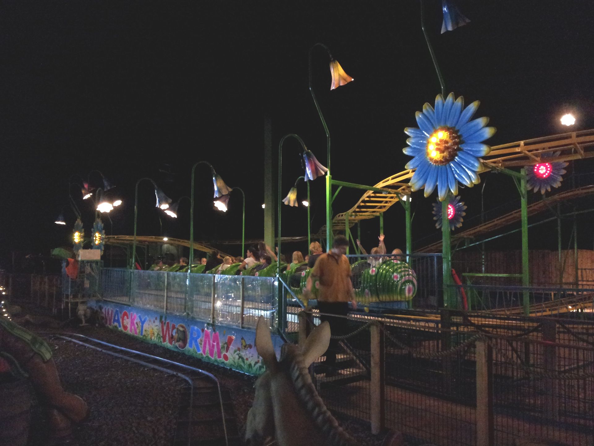 Ein klassischer Wacky Worm, der vom Ride-Op parallel mit der Eisenbahn betrieben wird.