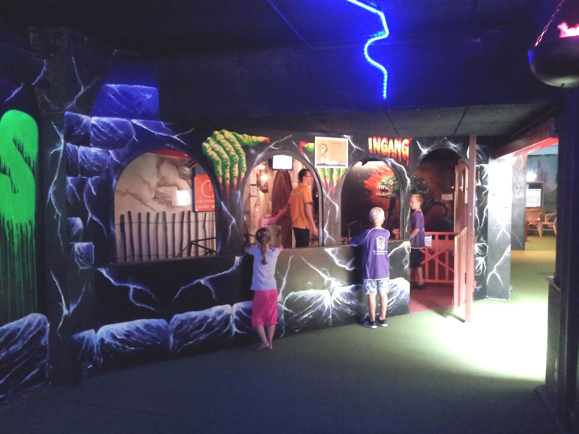 Somit hatten wir die untere Etage komplett und wollten fast schon wieder gehen. Im letzten Moment fiel mir dann aber ein, dass es laut Martins Bericht auf der oberen Etage noch eine Geisterbahn geben müsste. Also gingen wir nochmal zurück und nahmen die nächste Treppe nach oben.