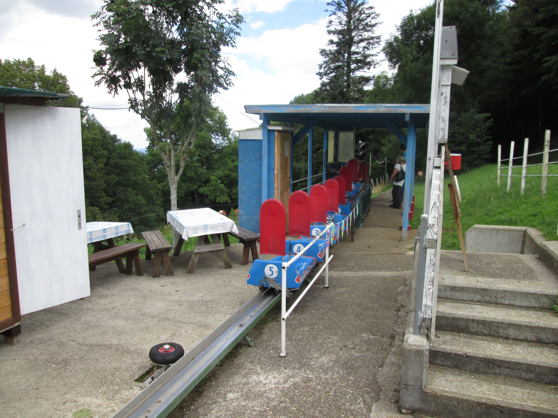 Ziemlich spontan ging es am Freitag, 08.08.2014 für Martin und mich auf eine Tagestour zu den Sommerrodelbahnen in den Vogesen. Den Auftakt sollte etwas weiter südlich im Schweizer Jura Toboroule -eine Art Alpine Coaster Marke Eigenbau - machen. Pünktlich zur Öffnung der Anlage um 14 Uhr erreichten wir die gefühlt am Allerwertesten der Welt liegende Anlage. Ein unscheinbarer Bahnhof und ein Parkplatz mit nur wenigen Stellplätzen erwarteten uns nebst einem kleinen Restaurant, einem Kinderspielplatz und einem kleinen Skilift.