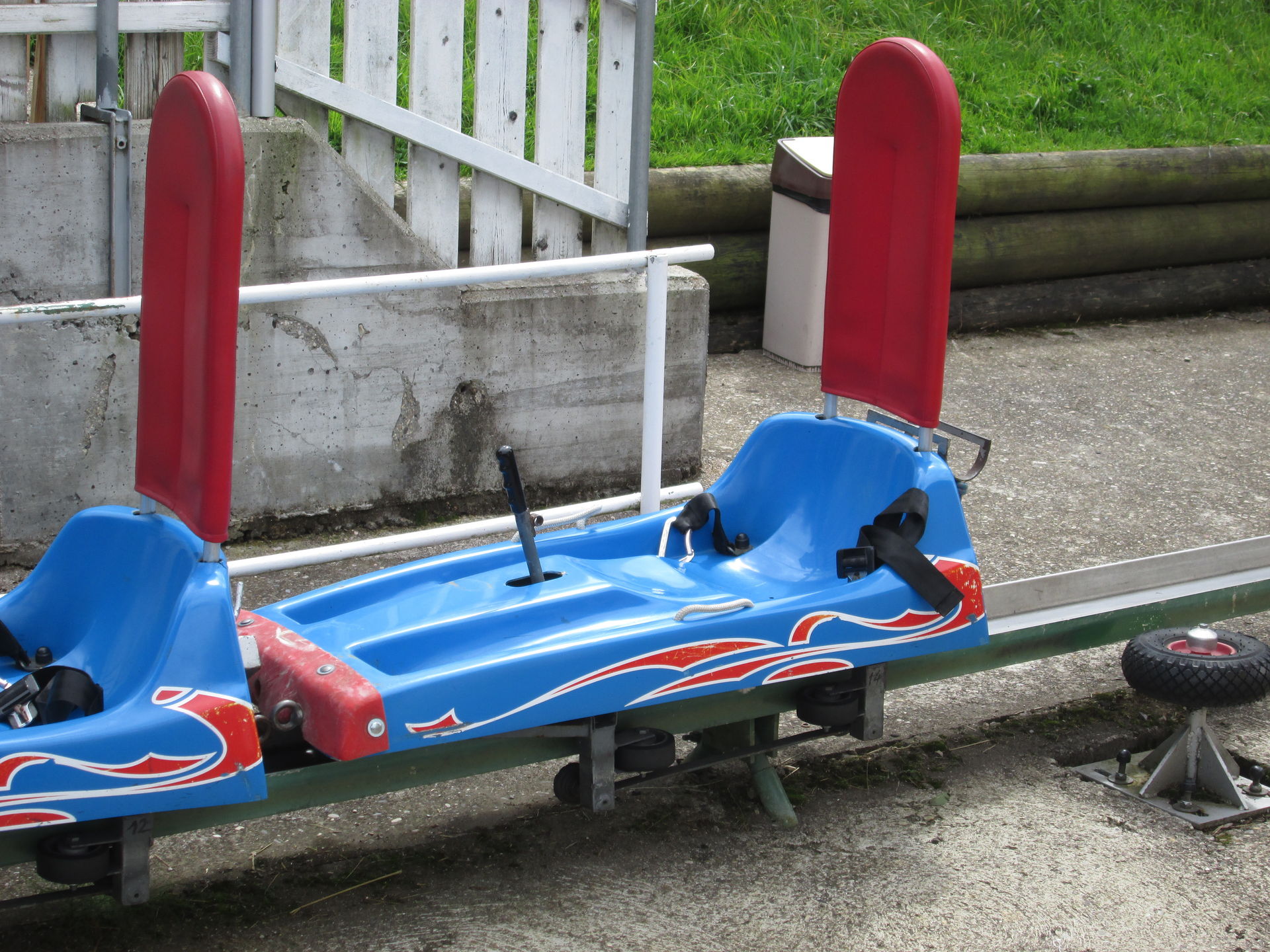 ... ist in keinster Weise eine Übertreibung! Hier ohne Bremsen runter zu düsen verlangt nicht nur viel Mut und ist fast unmöglich, nein, es ist auch ziemlich gefährlich! Auf einem meiner Fahrten riss es bei einem der Drops meine Beine zur Seite welche dann heftig den Boden neben der Schiene berührten. Hätte auch schmerzhaft ausgehen können ...