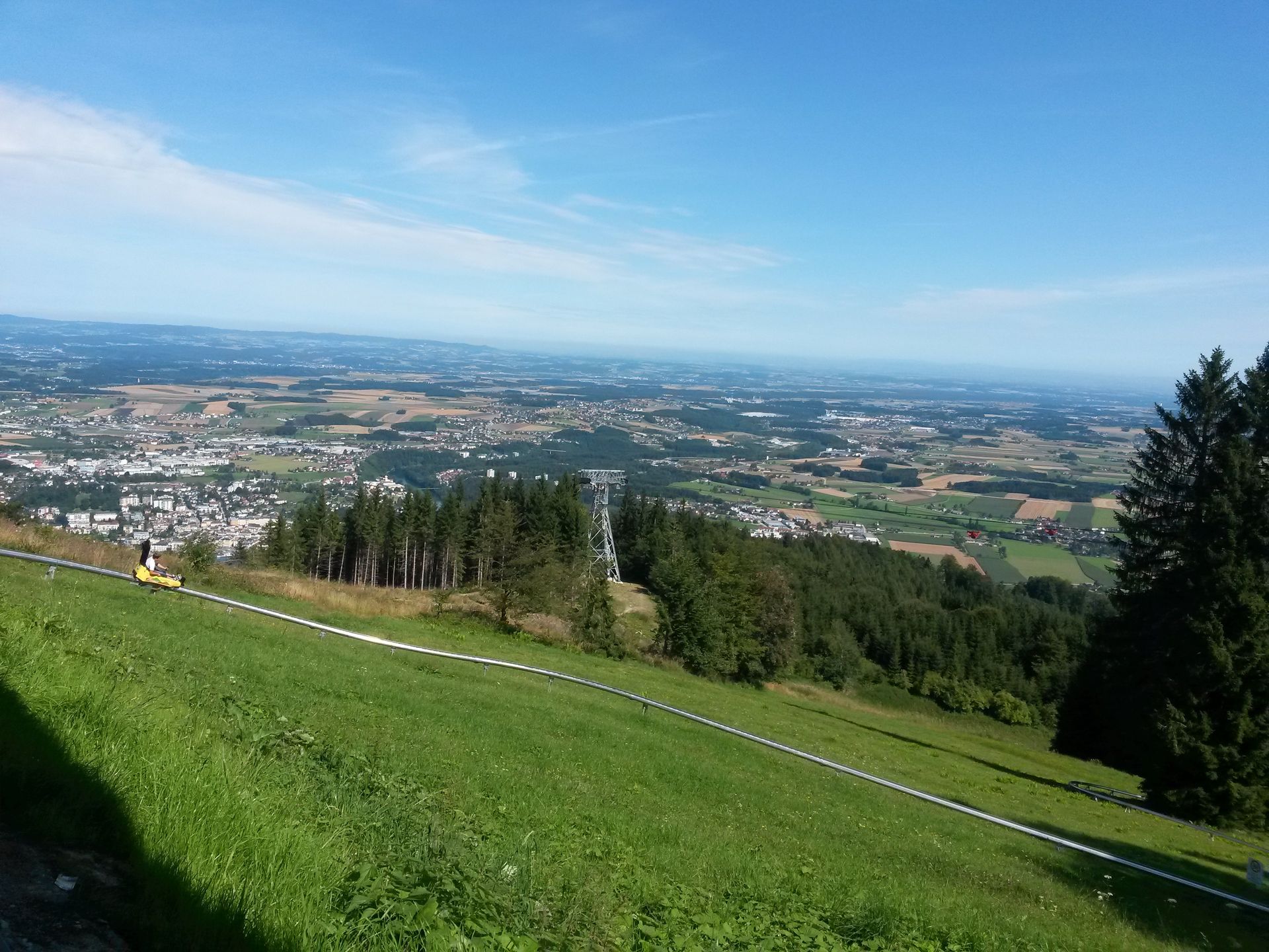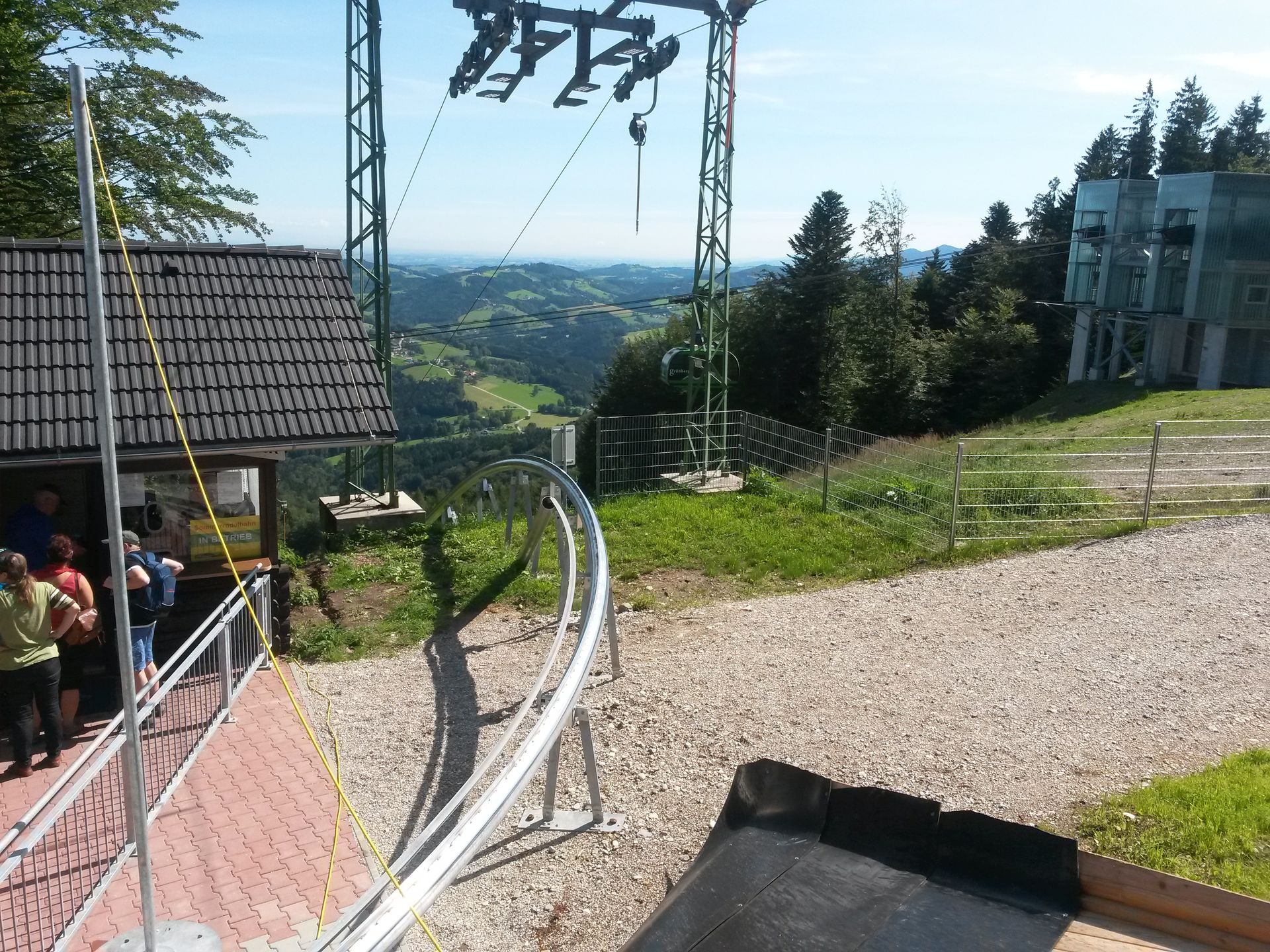 Der erste Stopp war am Grünberg bei Gmunden, wo die frisch eröffnete Brandauer Bahn der Grünberg-Flitzer am Programm stand.