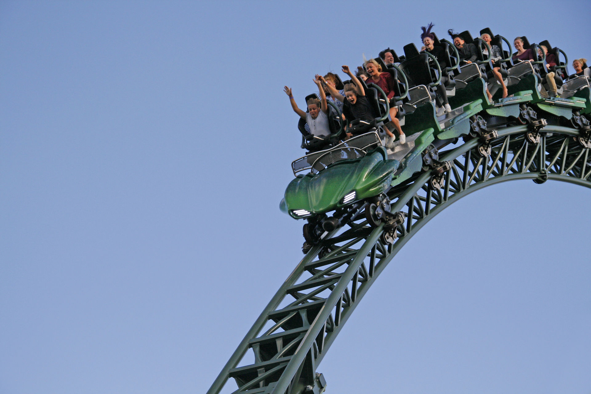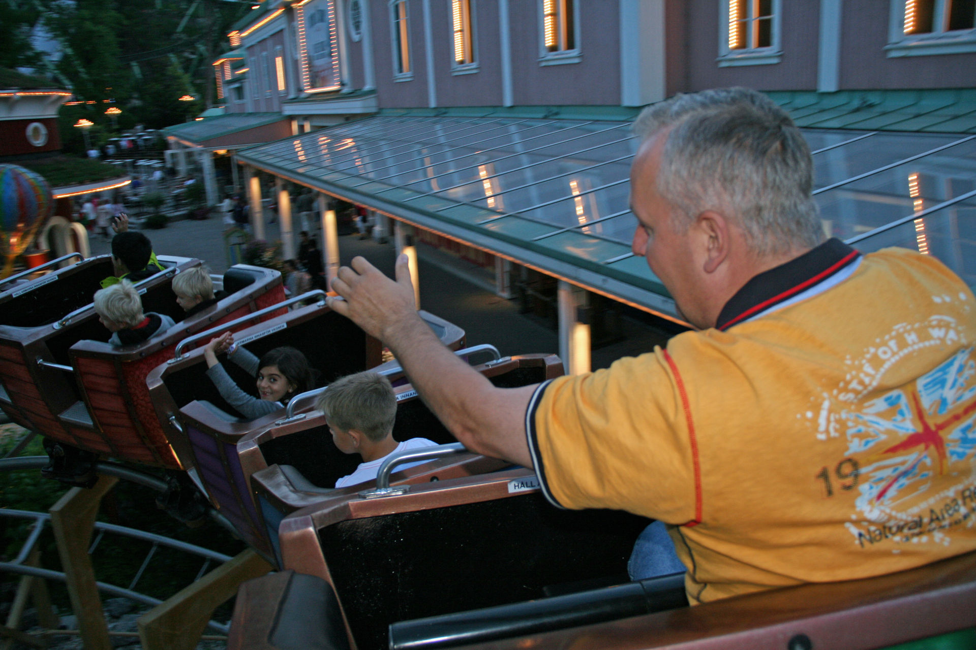 Bei meinem Besuch konnten wir in den letzten 30 Minuten mehr oder weniger dauerfahren. Hatte auch das Glück für die letzte Fahrt in die Front Row zu kommen. Diese überlies ich dann aber nem Kiddie und setzte mich, im sonst leeren Zug, einfach ganz nach hinten. Denn dort ist die Bahn imho auch am besten!