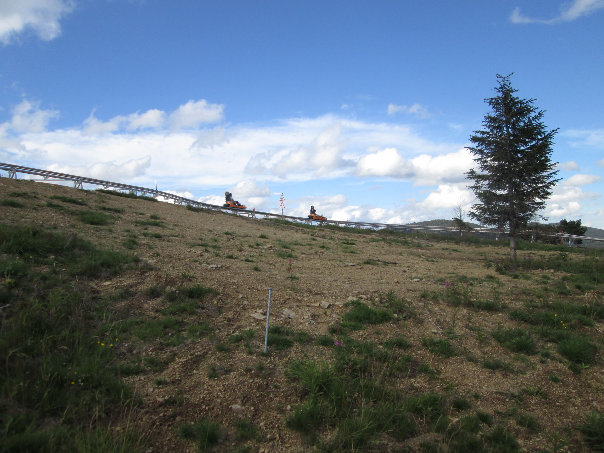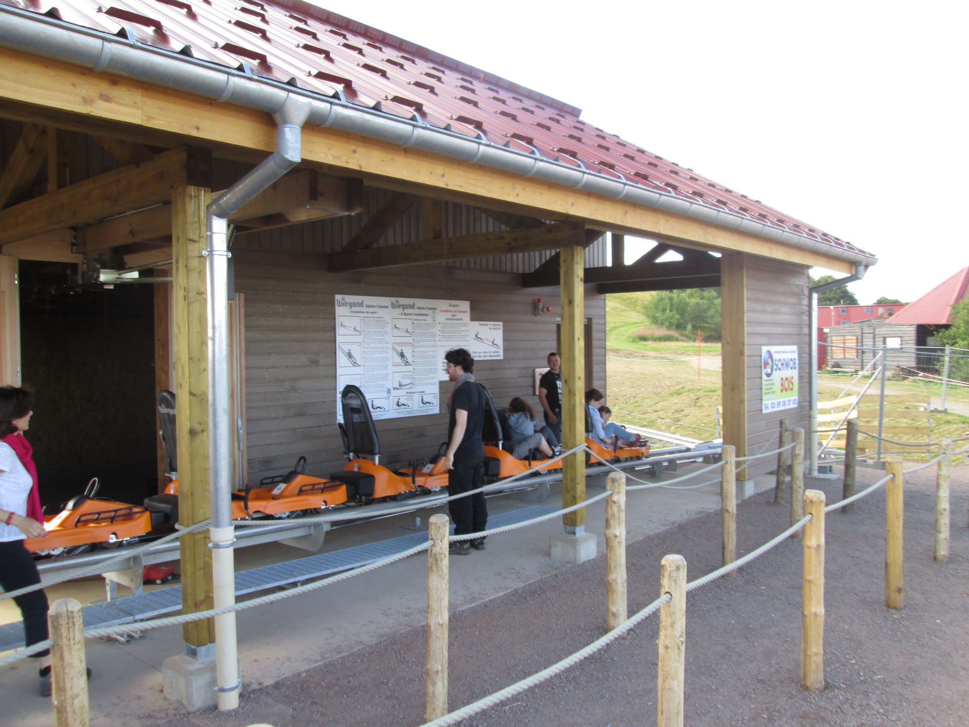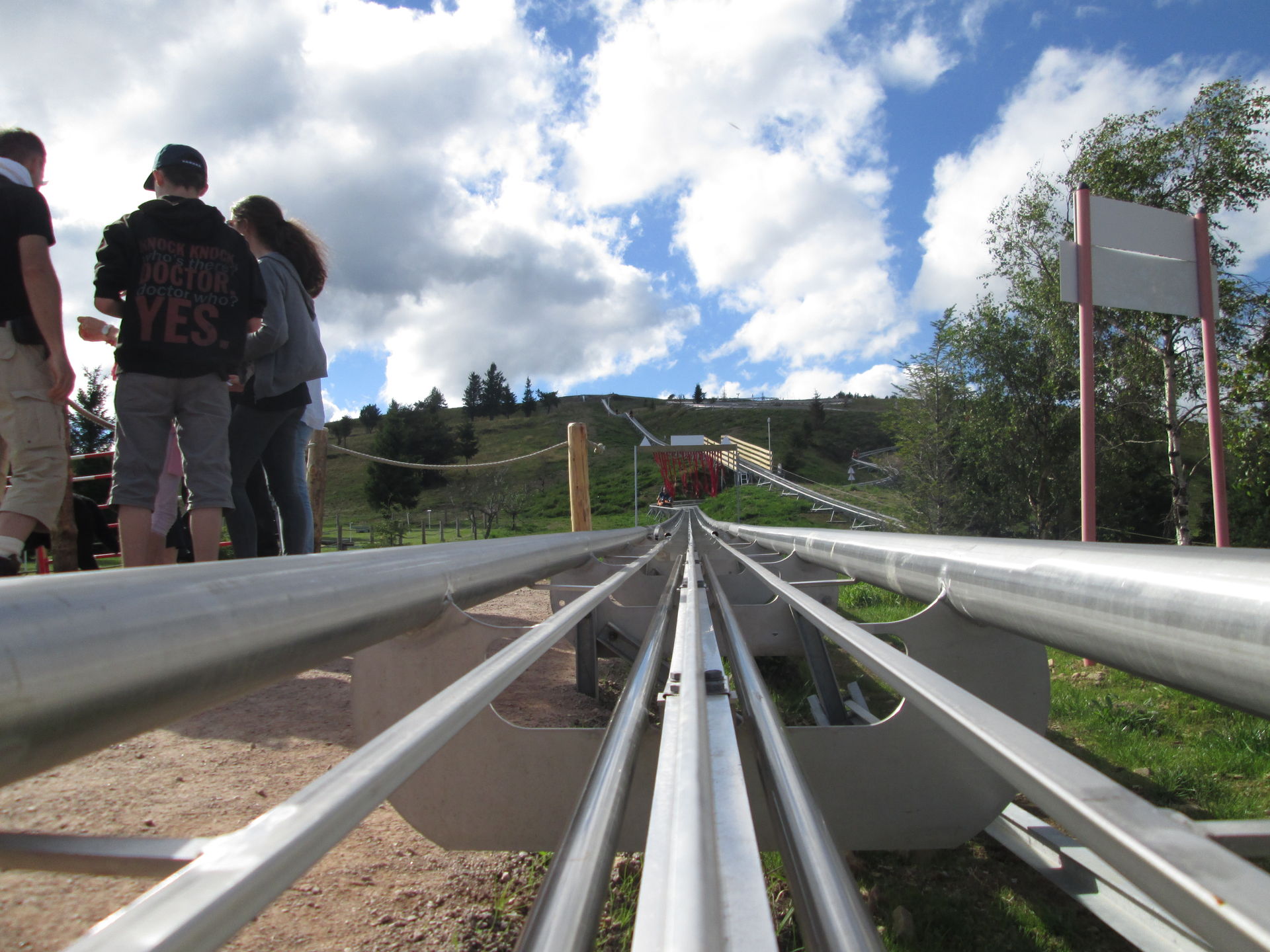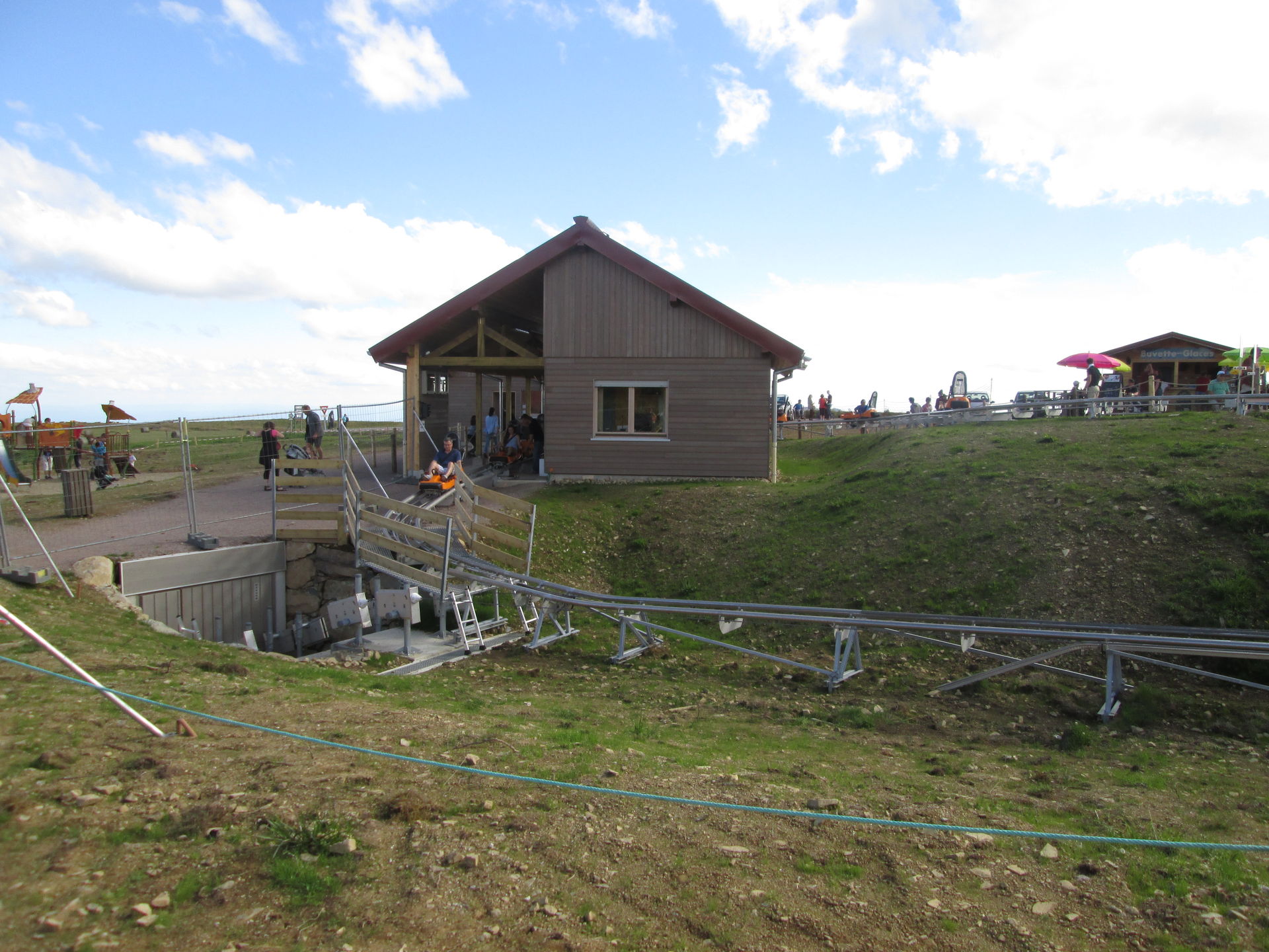 Keine 15 Minuten Autofahrt vom Grand Ballon entfernt, befindet sich Le Markstein, einer der größten Wintersportorte in den Vogesen. Neben diversen Liften und Restaurationsbetrieben (unter anderem eine Surferbar - ja Surfer, nicht Snowboarder) stand hier bis zum letzten Jahr Sommerrodelbahn von BobFrance, ähnlich der auf dem Grand Ballon. Diese wurde nun durch einen neuen Alpine Coaster von Wiegand mit dem sperrigen und wenig kreativen Namen "Luge sur Rail 4 Saisons" ersetzt. Eröffnung war am 05.07.2014 und die gesamte Konstruktion war bei unserem Besuch auch nur provisorisch abgesichert. Wie auch bei anderen aktuellen Auslieferungen von Wiegand ziehen sich auch hier Wirbelstrombremsen über die gesamte Strecke. Allerdings wird man ob des ohnehin eher flachen Terrains sowieso nicht besonders schnell. Alles in allem eine nette Bahn, aber definitiv nichts besonderes oder etwas, das einen Umweg lohnt. Wer dort sowieso Urlaub macht, kann das Bähnchen ja mitnehmen.