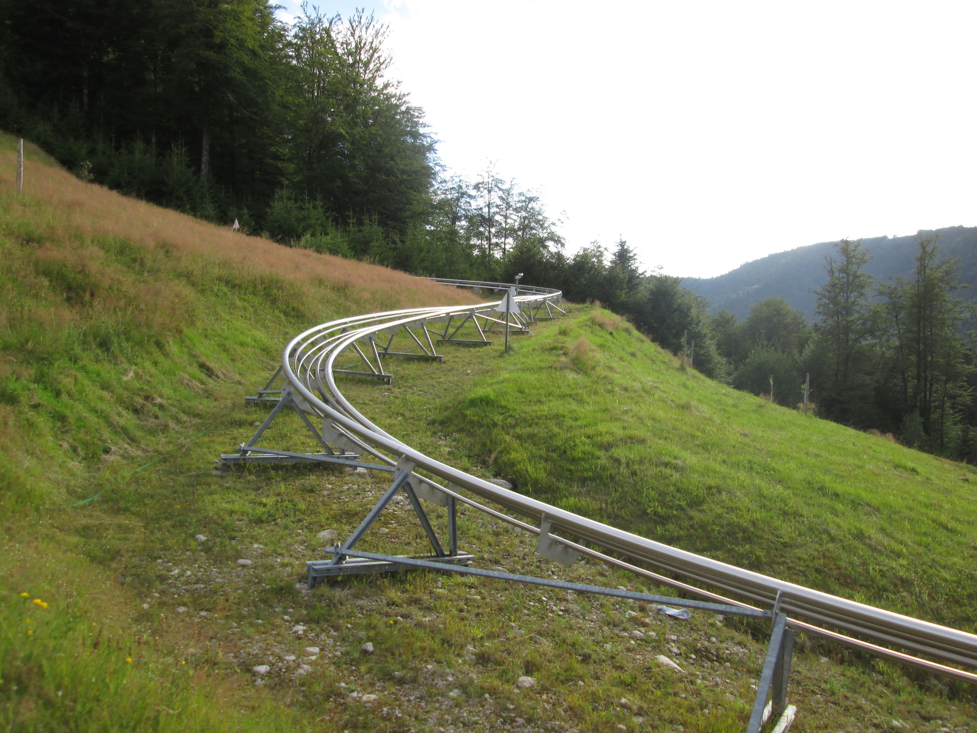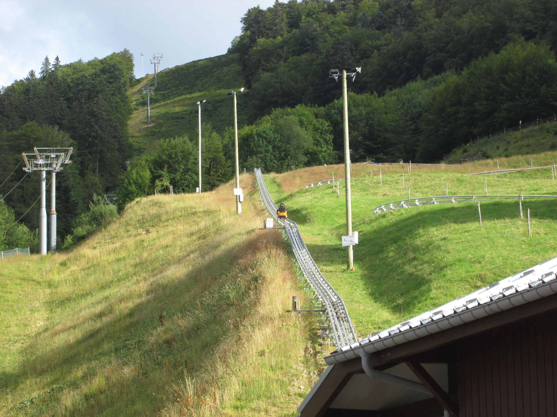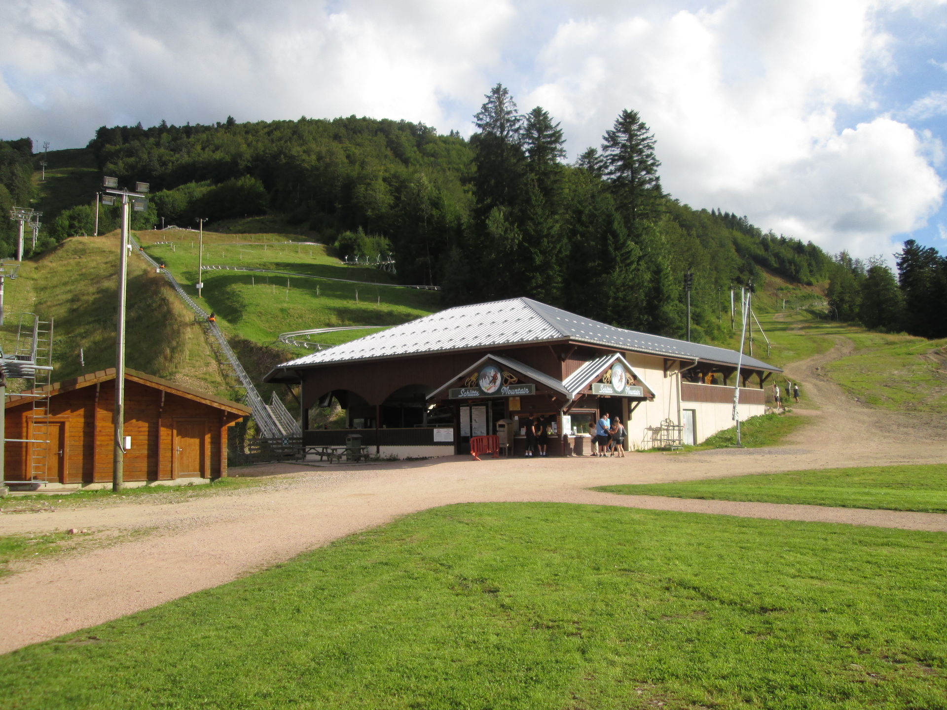 Wiederum nur wenige Minuten von La Schlucht entfernt, ist mit La Bresse-Hohneck das vermutlich größte Skigebiet der Vogesen zu finden. Große Hotelkomplexe im alpinen Stil wurden direkt am Auslauf der Abfahrten installiert. Mehrere Sessellifte und Schlepplifte bringen die Skifahrer zügig auf die Berge. Im Sommer ist allerdings nur ein Sessellift in Betrieb. Daneben wurden einige Kinderbespaßungsanlagen errichtet und - natürlich unser Besuchsgrund - der Alpine Coaster "Schlitte Mountain" von Wiegand. Leider ist auch diese Anlage eher eine Enttäuschung. Für einen Preis von 4,80¤ gibt es eine sehr kurze Fahrt, die leider genau dann endet, wenn man gerade das Gefühl hat, dass es beginnt. Ich war bisher nur von der Anlage in Bottrop mehr enttäuscht, wobei diese wenigstens noch mit einem für einen Alpine Coaster ungewöhnlichen Setting punkten kann.