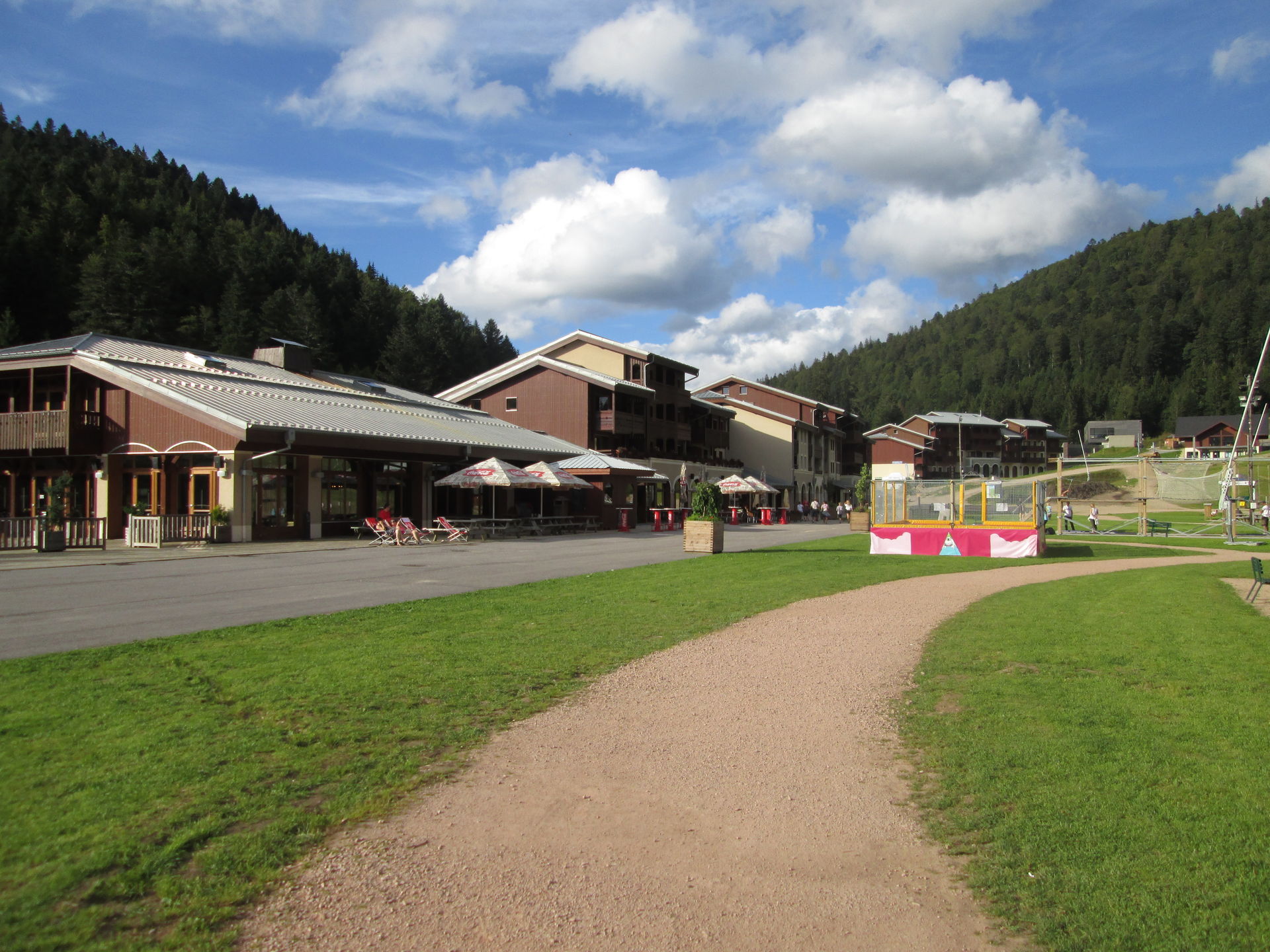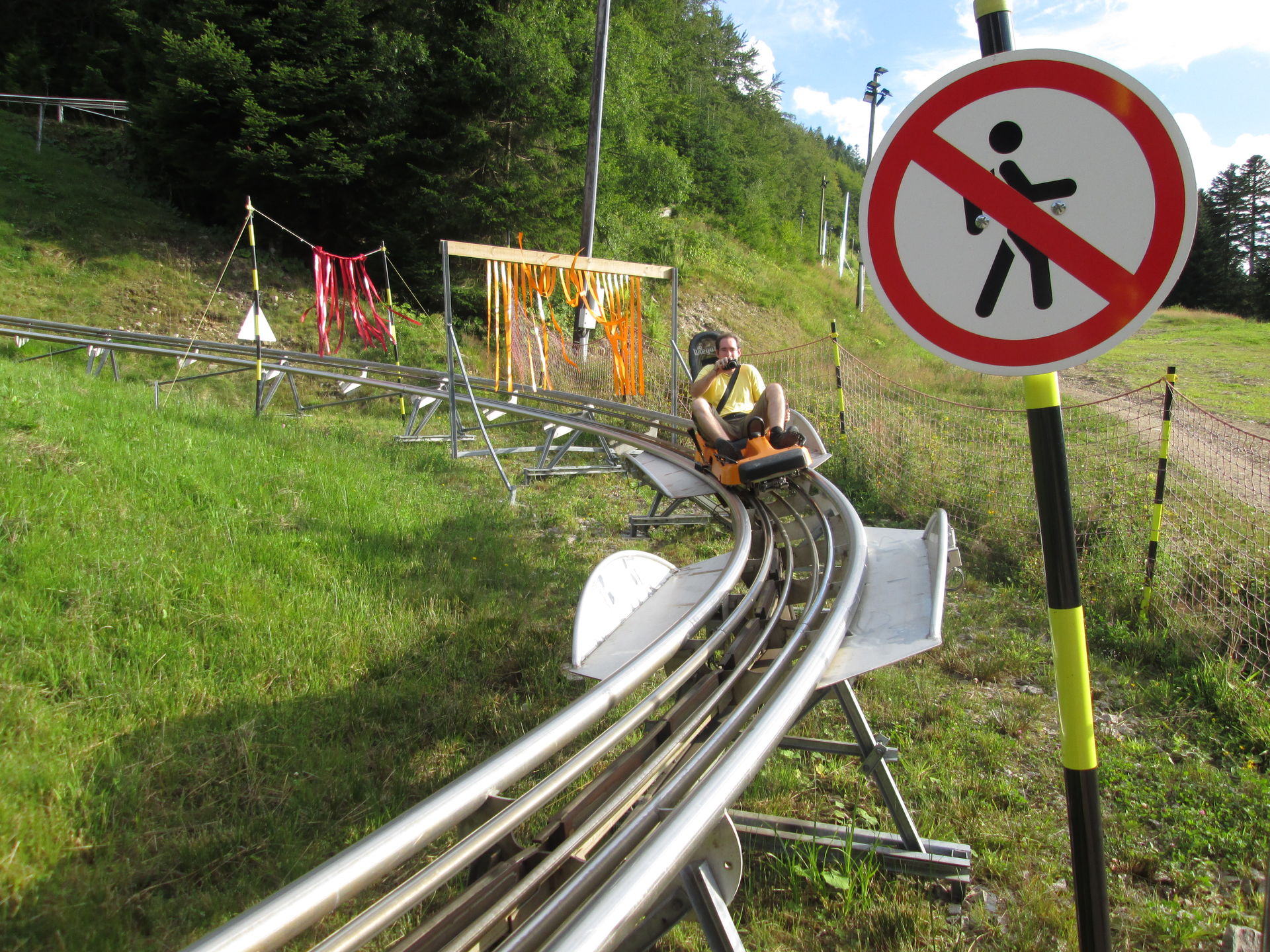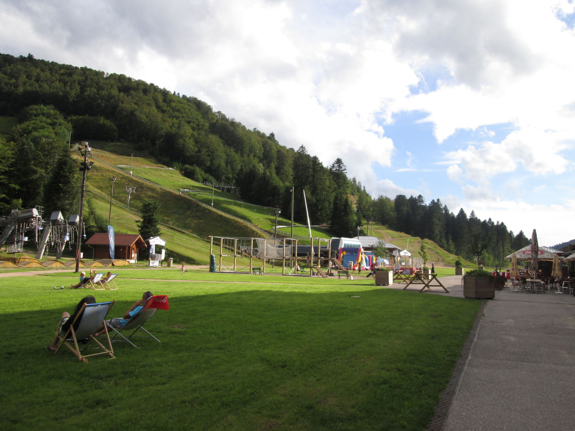 Wiederum nur wenige Minuten von La Schlucht entfernt, ist mit La Bresse-Hohneck das vermutlich größte Skigebiet der Vogesen zu finden. Große Hotelkomplexe im alpinen Stil wurden direkt am Auslauf der Abfahrten installiert. Mehrere Sessellifte und Schlepplifte bringen die Skifahrer zügig auf die Berge. Im Sommer ist allerdings nur ein Sessellift in Betrieb. Daneben wurden einige Kinderbespaßungsanlagen errichtet und - natürlich unser Besuchsgrund - der Alpine Coaster "Schlitte Mountain" von Wiegand. Leider ist auch diese Anlage eher eine Enttäuschung. Für einen Preis von 4,80¤ gibt es eine sehr kurze Fahrt, die leider genau dann endet, wenn man gerade das Gefühl hat, dass es beginnt. Ich war bisher nur von der Anlage in Bottrop mehr enttäuscht, wobei diese wenigstens noch mit einem für einen Alpine Coaster ungewöhnlichen Setting punkten kann.