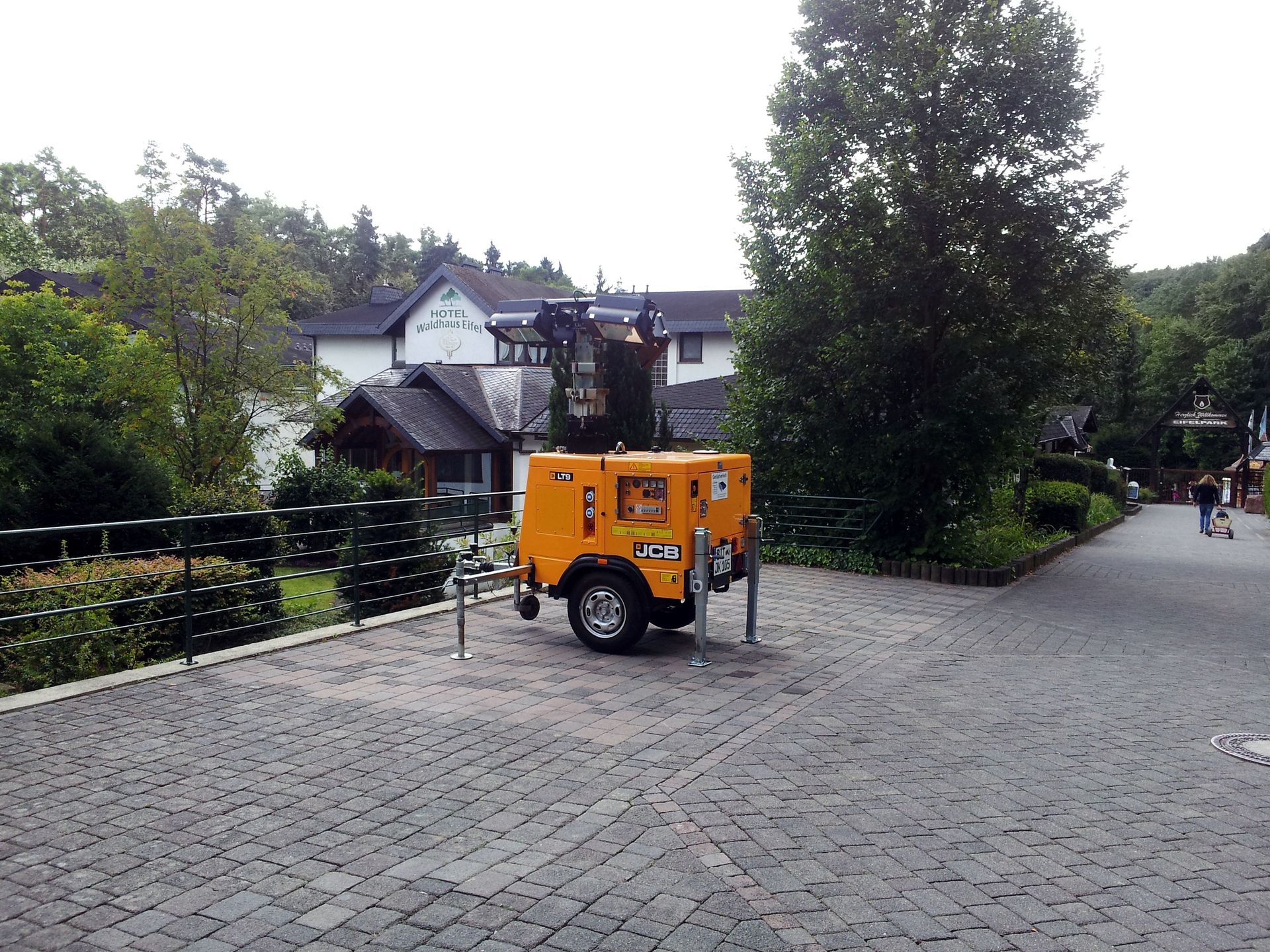 Im ganzen Park standen solche "mobilen Flutlichtmaste" für die Nacht - zusätzlich zu weiteren Scheinwerfern an Gebäuden und Co.
