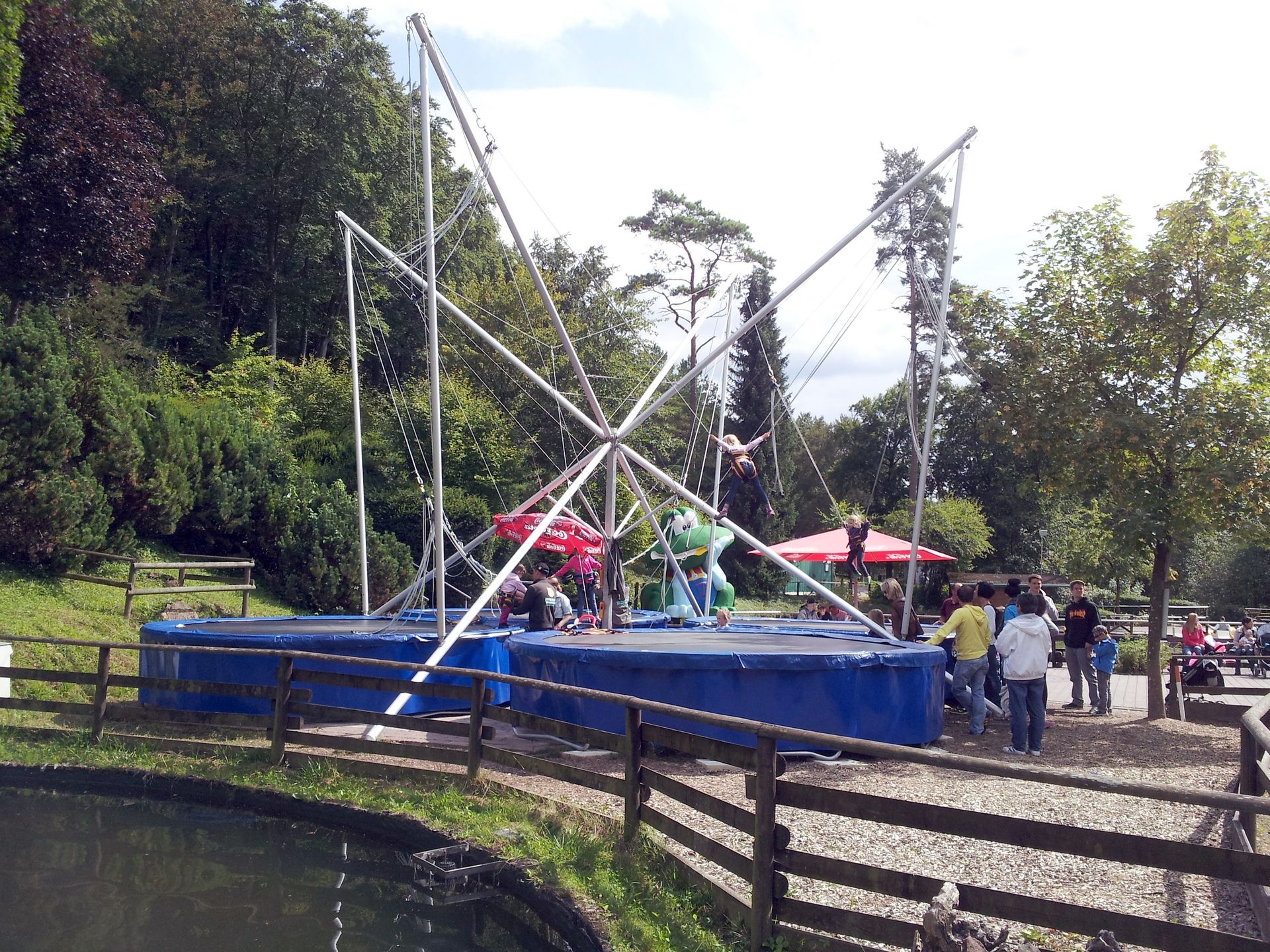 Dafür wurden gegenüber Bungee-Trampoline aufgestellt.