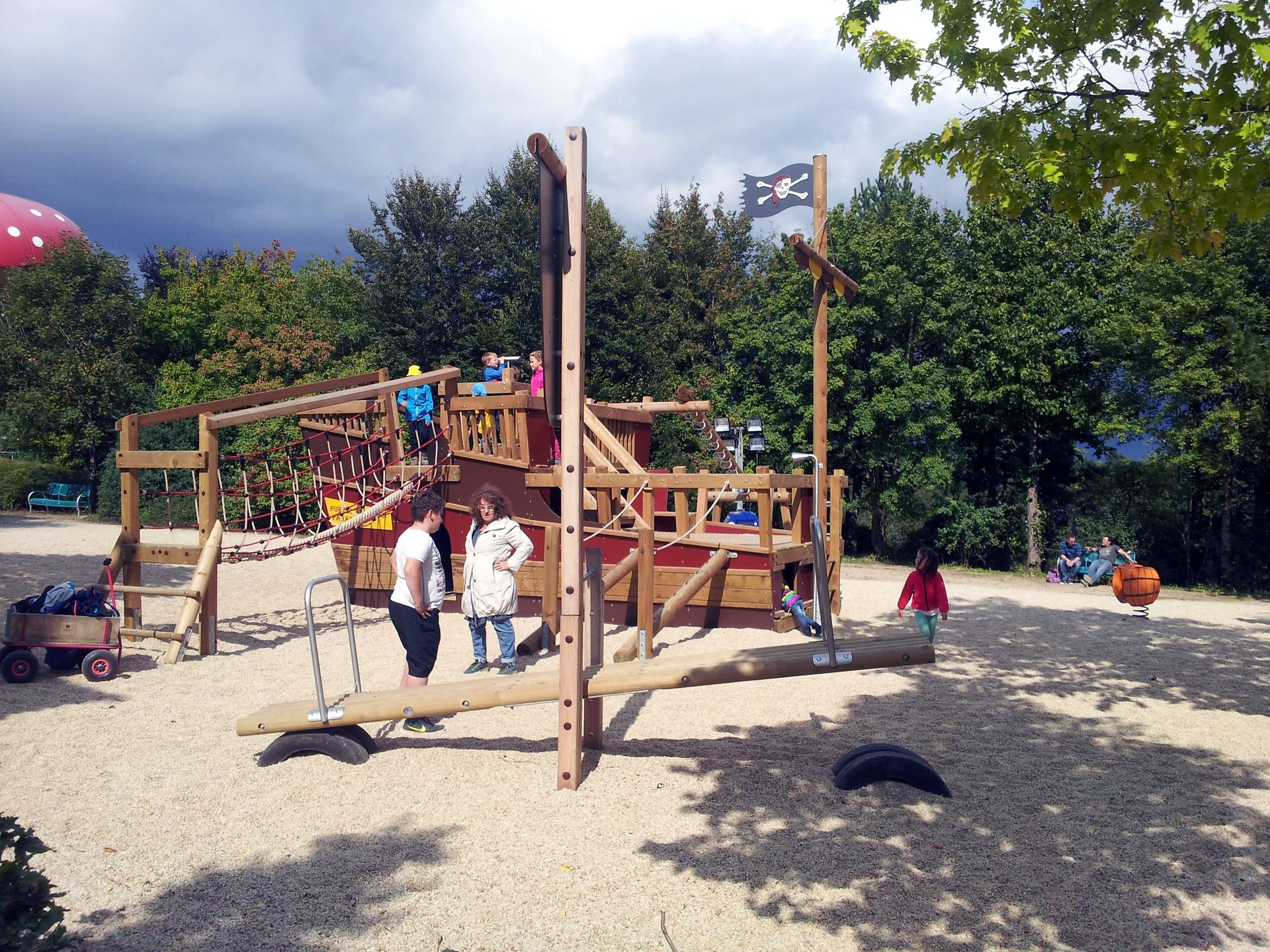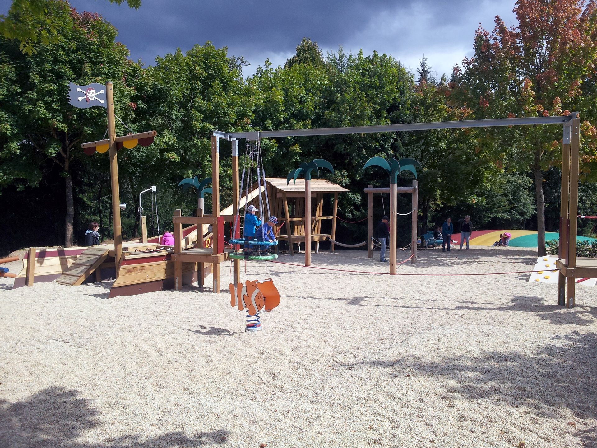 Auf der einen Seite ein Piratenspielplatz.
