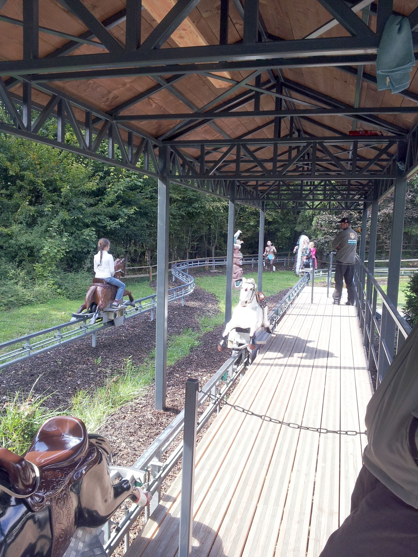 Und ganz hinten noch ein Pferdekarussell mit erstem Einblick auf den Alpine-Coaster.