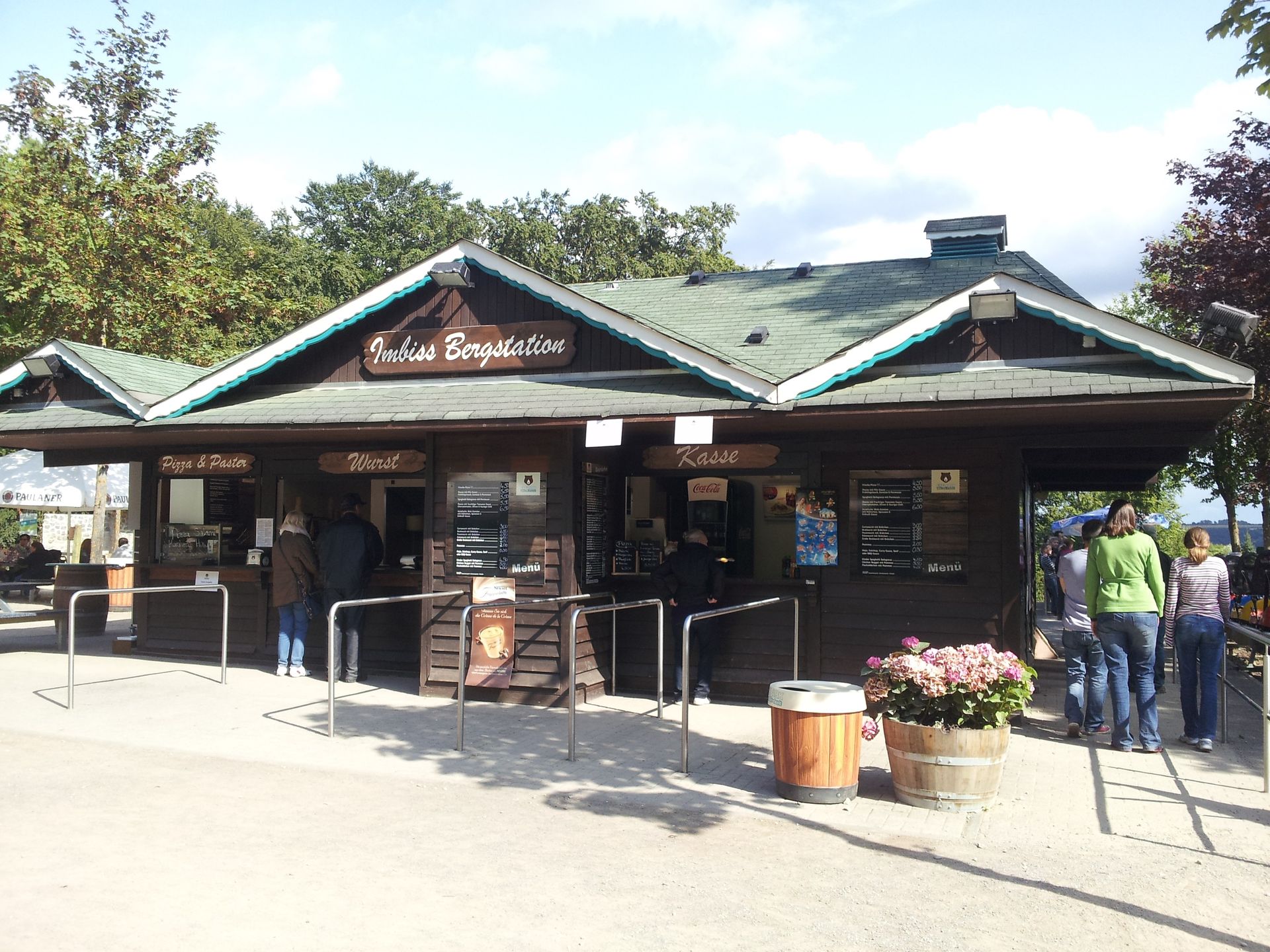 Die eigentliche Bergstation. Rechts die Schlange zur Abfahrt mit dem Eifel-Coaster.