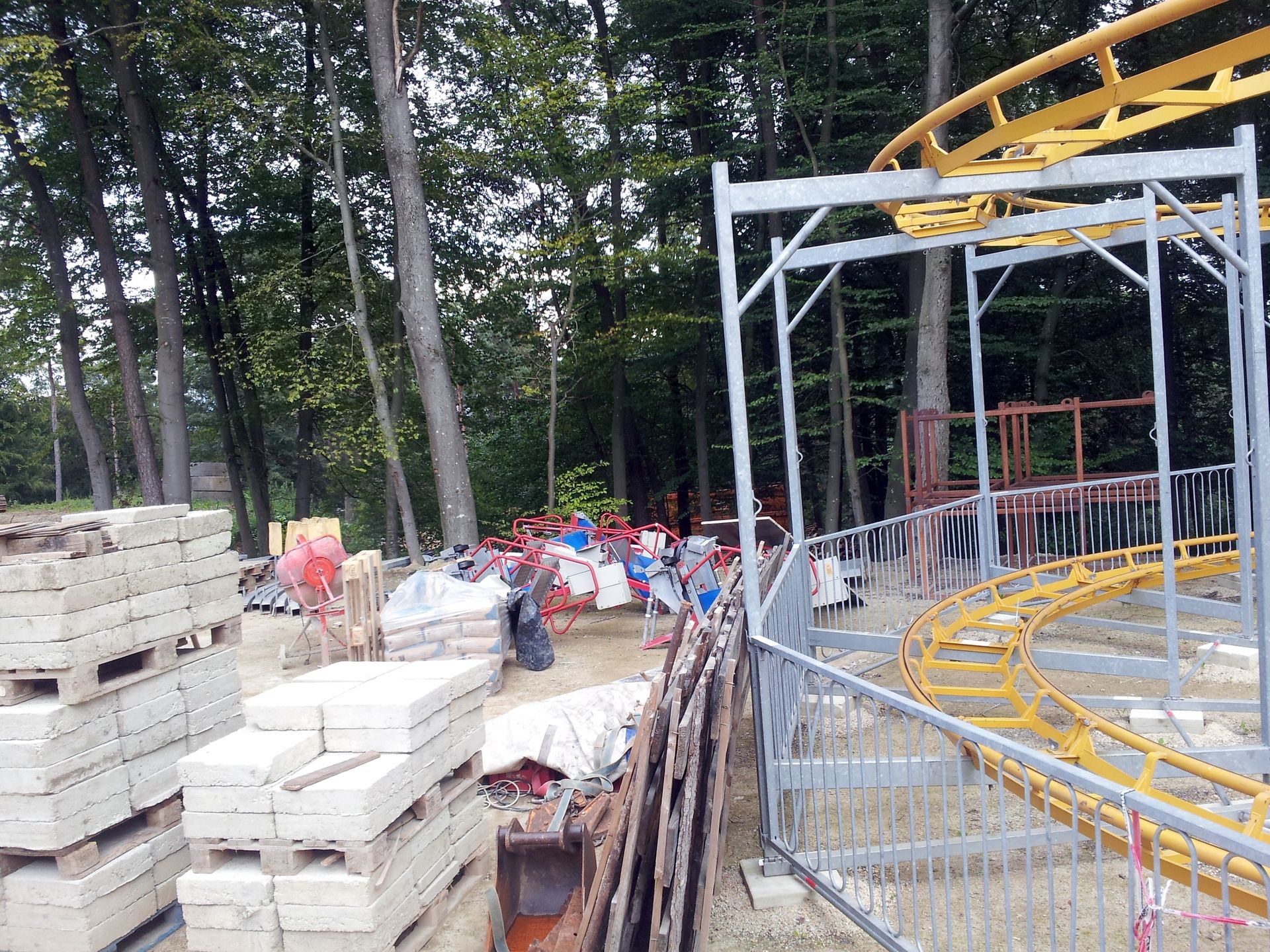 An der Erweiterung wird auch schon gewerkelt. Hinten scheint eine Art Bootsfahrt zu kommen (von der Achterbahn war besser zu sehen, dass das ein Kanal ist).