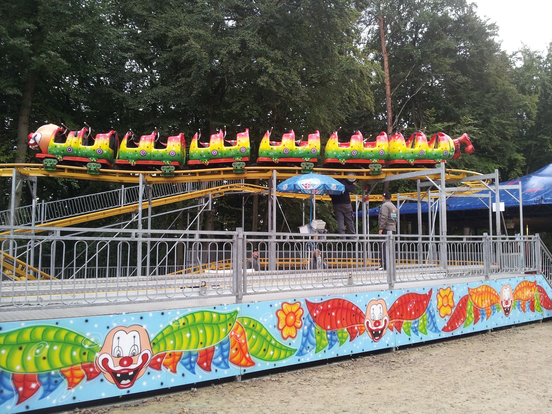 Allmählich ließ der Regen dann wieder nach und schließlich konnte ich "trockenen Fußes" und ohne große Wartezeit mit dem Eifel-Coaster nach oben fahren. Neben der Reitbahn gönnte ich mir einen Schwenker vom Grill für passable 4¤, dann ging ich nochmal zum Tapsiplatz, wo man gerade eifrig am Big Apple herumdokterte.
