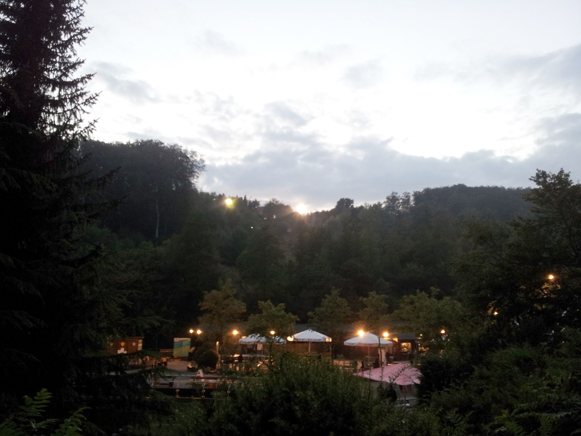 Gegen 22:30 Uhr sollte dann das Feuerwerk starten. Abschuss an der Bergstation, man sollte es aber auch in der Talstation sehen können, wenn man den Plakaten glaubte. Den genauen Abschussort hatte ich leider nicht ausmachen können, also zog ich die Talstation vor, wo weniger Bäume die Sicht beeinträchtigen würden. So jedenfalls meine Vermutung.