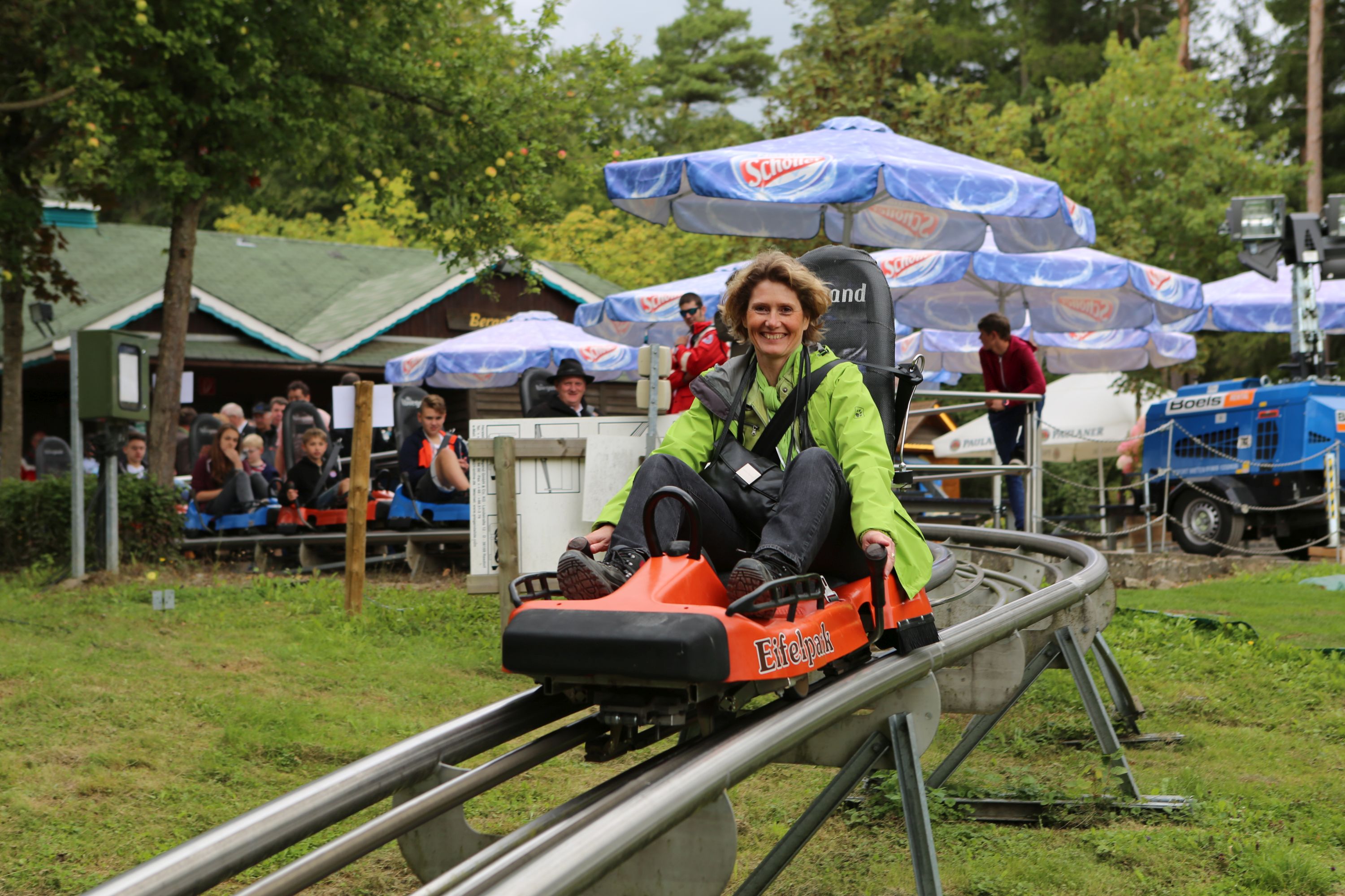 Um 10 Uhr gab es die große Eröffnungsrede auf der Showbühne. Wirtschaftsministerin Eveline Lemke: „Für den Park und die Region ist es ein Glücksfall, dass Frau Löwenthal und Herr Goetzke den Eifelpark übernommen haben. Sie haben über drei Millionen Euro investiert, um den Park noch attraktiver und spannender zu machen. So wurden unter anderem die Familienachterbahn Eifelpark-Blitz, der Bauernhof und die Abenteuerspielplätze erneuert. Damit wird Natur für Kinder erlebbar und gleichzeitig ein Ort geschaffen, an dem Kinder sich austoben können. Die zahlreichen Besucher zeigen, dass das Konzept gut angenommen wird. Für die Region ist der Eifelpark ein wichtiger Wirtschaftsfaktor. Er bietet Familien ein Angebot, das so in der Eifel nicht vorhanden ist. Das Naturerlebnis steht im Eifelpark Gondorf im Mittelpunkt. Kinder können Bären, Wölfe, Luchse, Steinböcke und andere Tiere kennenlernen. Spannend ist auch die Greifvogel-Flugschau, gerade die Kleineren lieben den Streichelzoo. Besonders gefällt mir, dass das Angebot so gestaltet ist, dass die ganze Familie einen schönen Ausflugstag an der frischen Luft verbringen kann. Die Investition hat sich gelohnt – Die Mischung aus Ruhe, Erholung, Aktivität und Freizeitspaß ist absolut gelungen!“