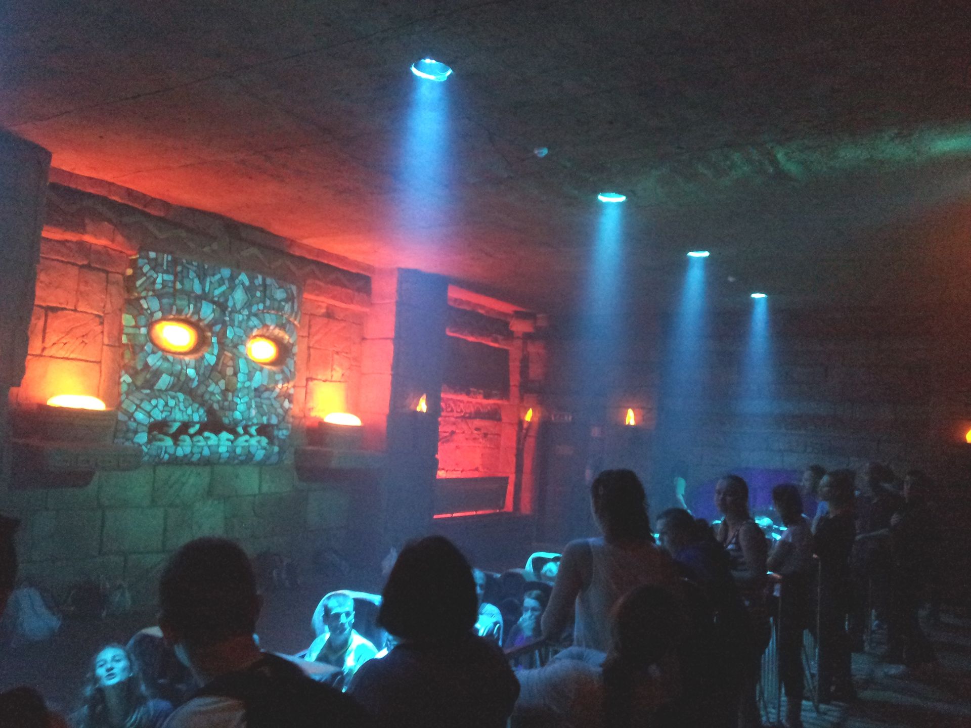First Drop befindet sich wie vorhin zu sehen außerhalb der Halle. Der ist aber relativ harmlos, wirklich Fahrt nimmt der Zug erst danach auf, wenn er wieder in die Halle eintaucht. Ab da schlängelt er sich überraschend flott durch die "Dunkelheit", bis die von einem Laserkegel umhüllte Schlussbremse ihn wieder zum Stillstand bringt.