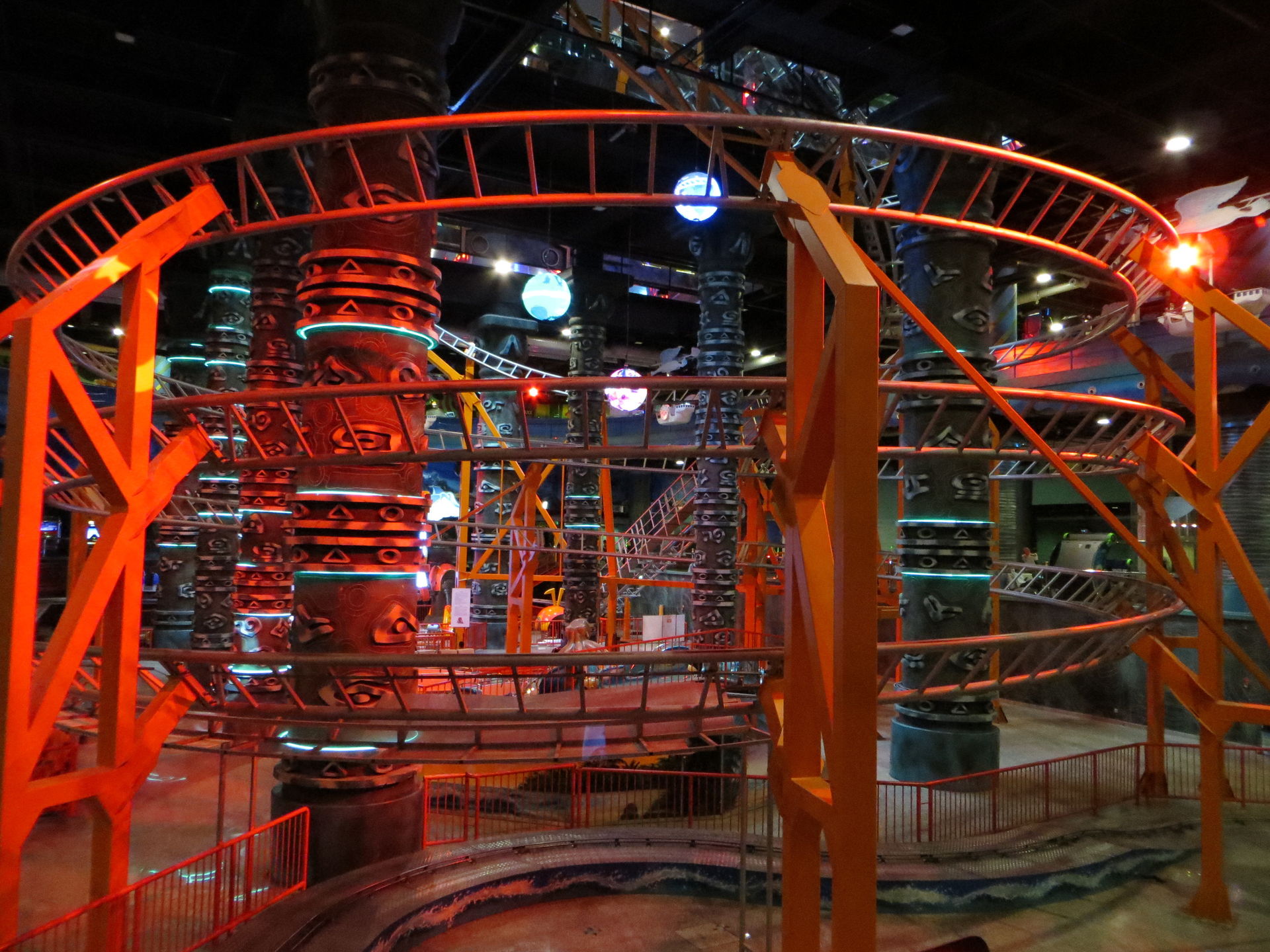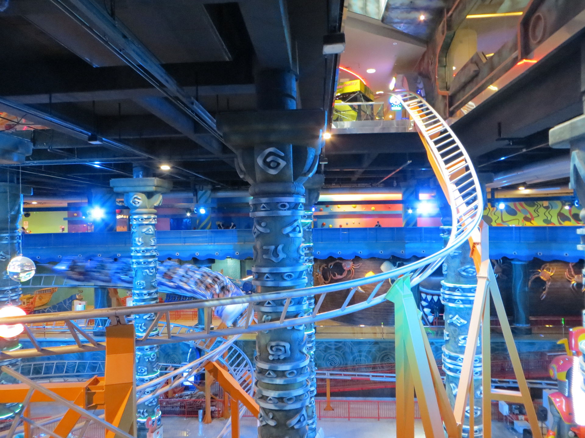 Der Indoor-Park verteilt sich auf mehrere Ebenen mit Burger King Restaurant, mehreren Kinderfahrgeschäften, Bowlingbahn, einer zur Zeit gechlossenen Lasertag-Arena, vielen Spielautomaten und natürlich der großen Achterbahn in der Mitte.