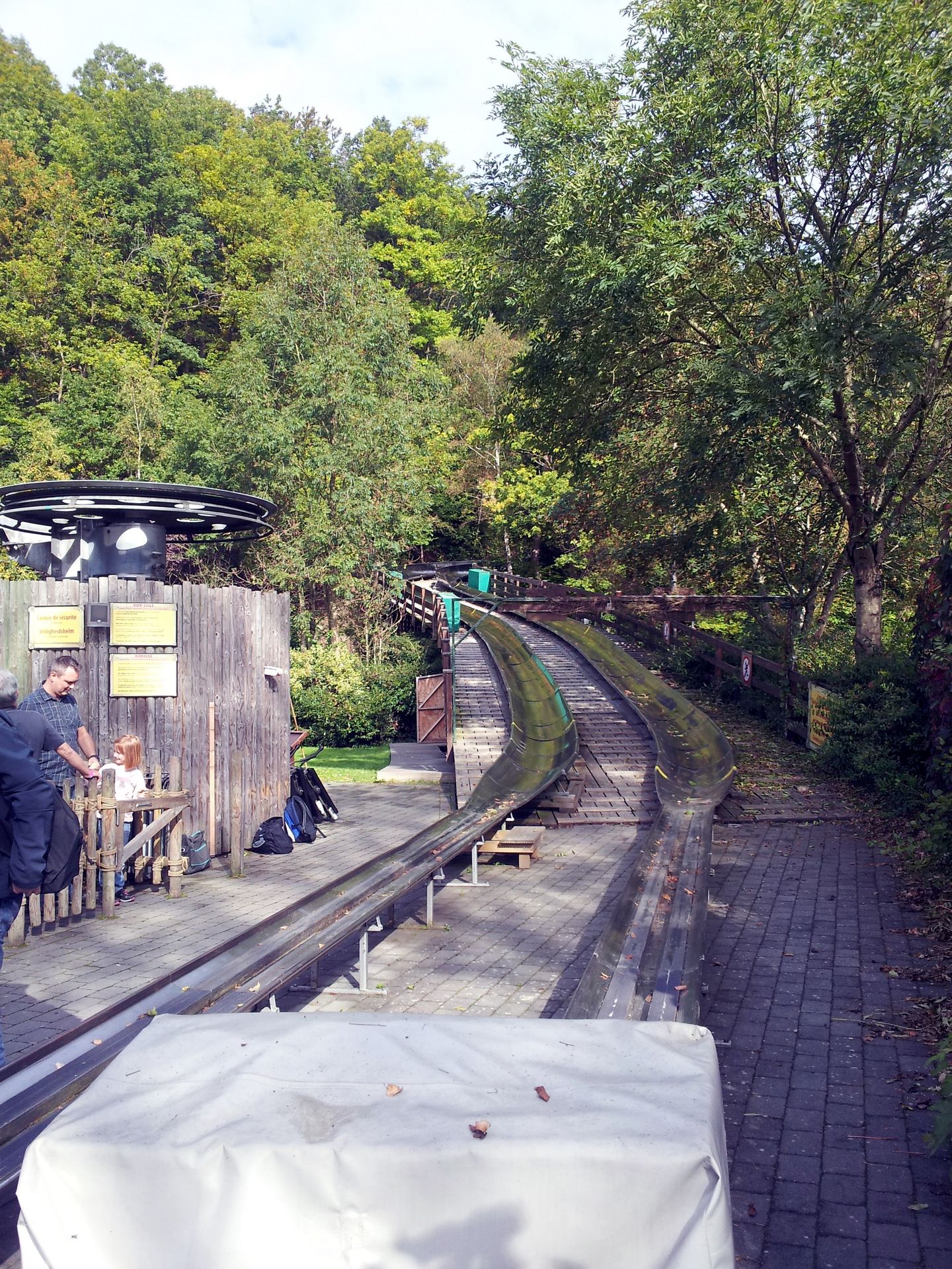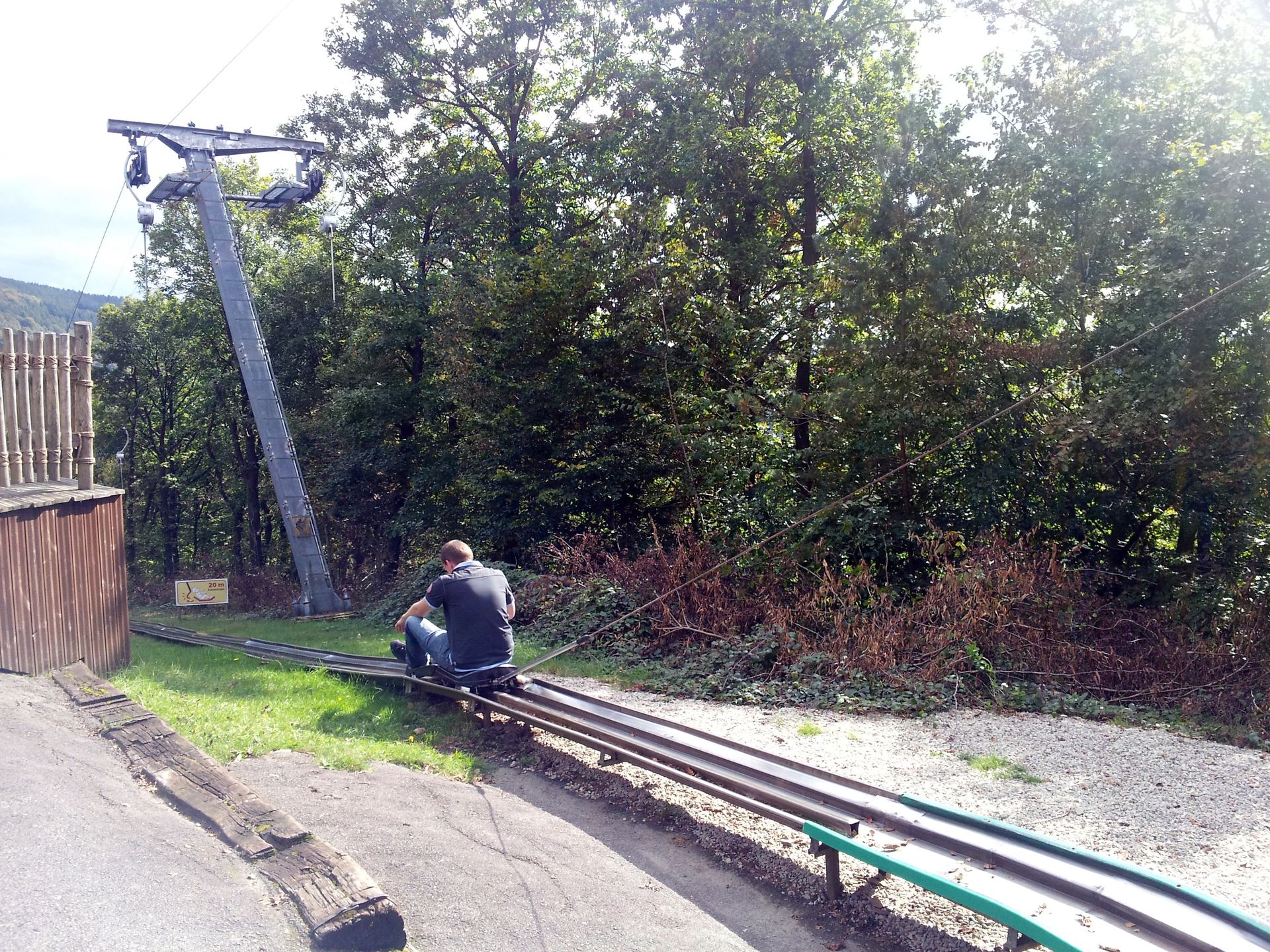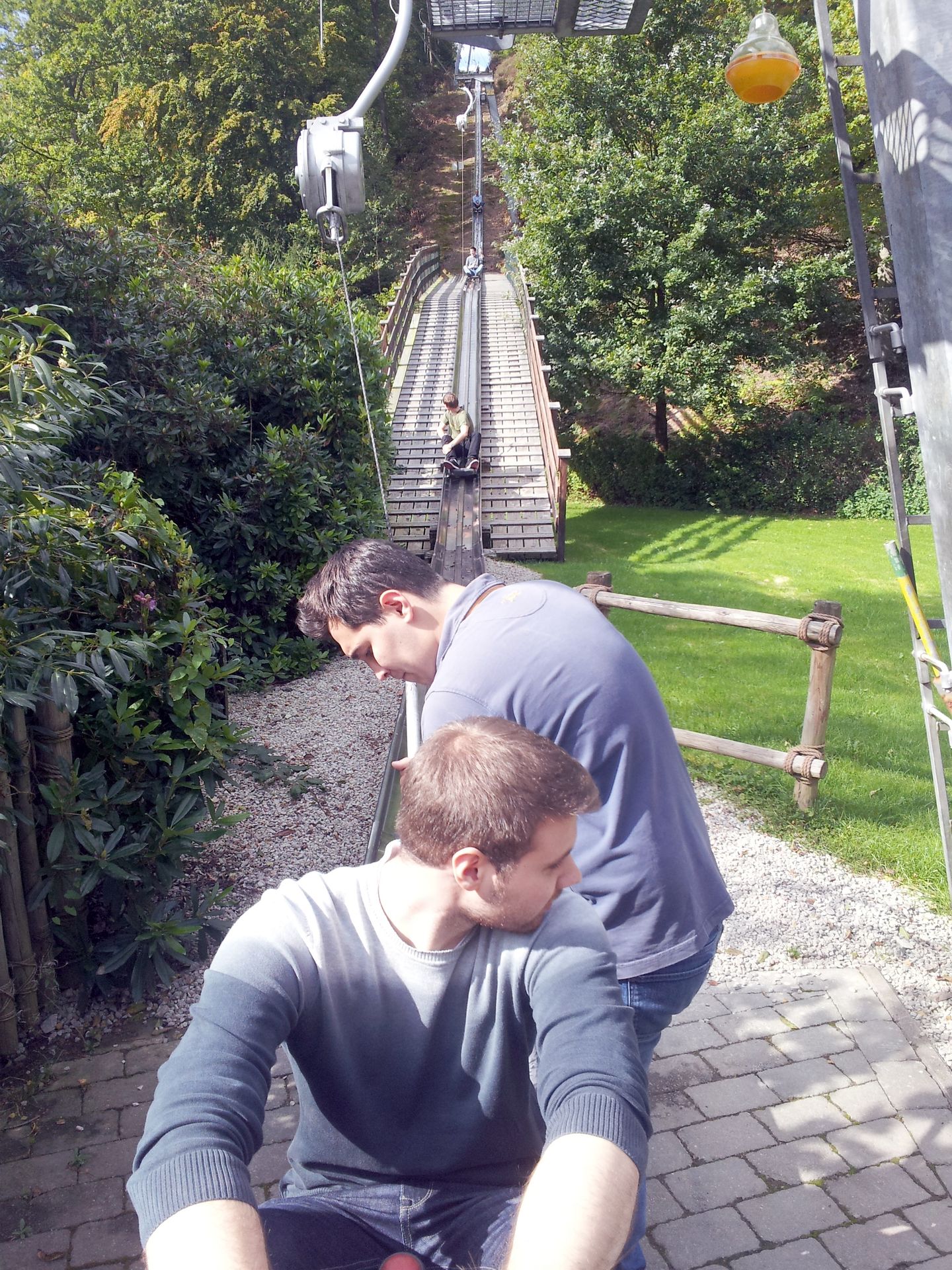 Eigentlich hätten die anderen gegen halb drei fahren wollen, Christian musste abends nämlich noch zu Fantissima im Phantasialand. Da saßen wir aber gerade in der Seilbahn wieder nach unten. Der Plan verschob sich also ein wenig, und so fügten wir noch eine Runde Rodelbahn an. Diesmal ohne Zwischenfall, aber wieder konnte ich nicht bis ganz zum Schluss Gas geben.
