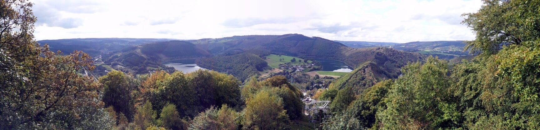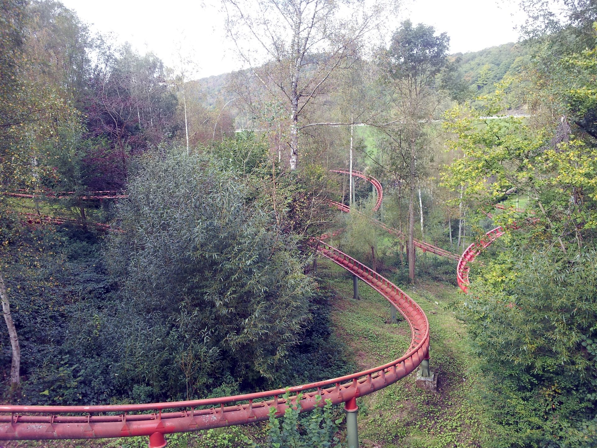 Und so traf ich mich am Samtsag, dem 27.09. mit SebMa auf dem Mitfahrerparkplatz in Spangdahlem. Von dort aus fuhren wir gemeinsam in Richtung Belgien. Tatsächlich bin ich die Strecke schon sehr oft auf dem Weg in den Urlaub gefahren. Aber an der Formel1-Strecke von Spa-Francorchamps bin ich bis dahin noch nie von der Autobahn abgefahren. Und der weitere Weg zum Park führt dann sogar über die ehemalige Masta-Straight der Rennstrecke (die auch damals schon eine ganz normale Landstraße war). Leider merkt man nicht wirklich etwas davon, dass hier mal Formel1-Wagen mit über 300 Sachen entlang gerauscht sind. Lediglich die leichte Steilkurve in Stavelot deutet die Vergangenheit dieser Straße an. Wir mussten aber links daran vorbei (wo die Strecke auch vor dem Bau der Steilkurve entlangführte). An einer Kreuzung verließen wir dann die alte Rennstrecke. Von dort war es dann auch nicht mehr allzu weit bis zum Park.
