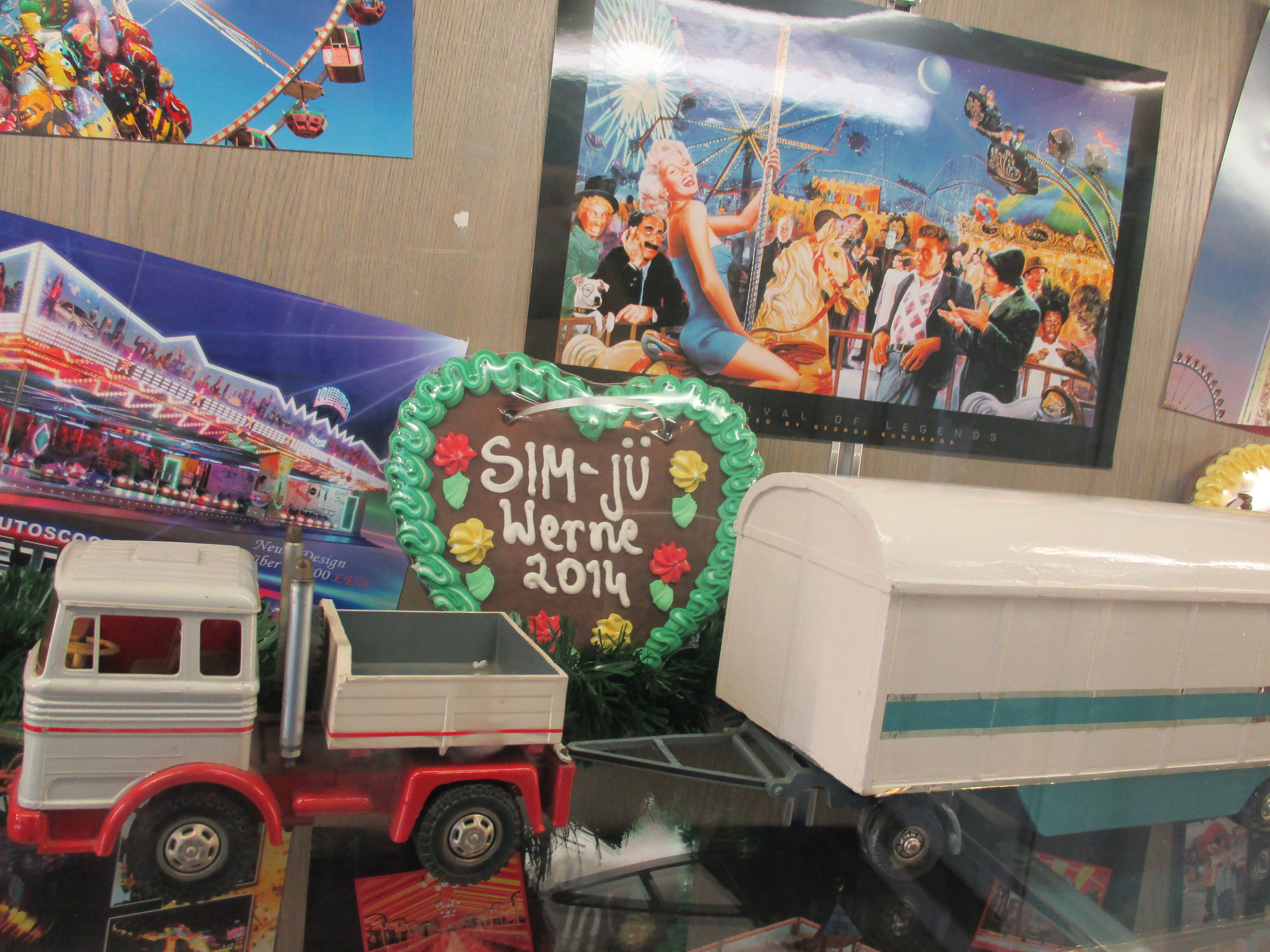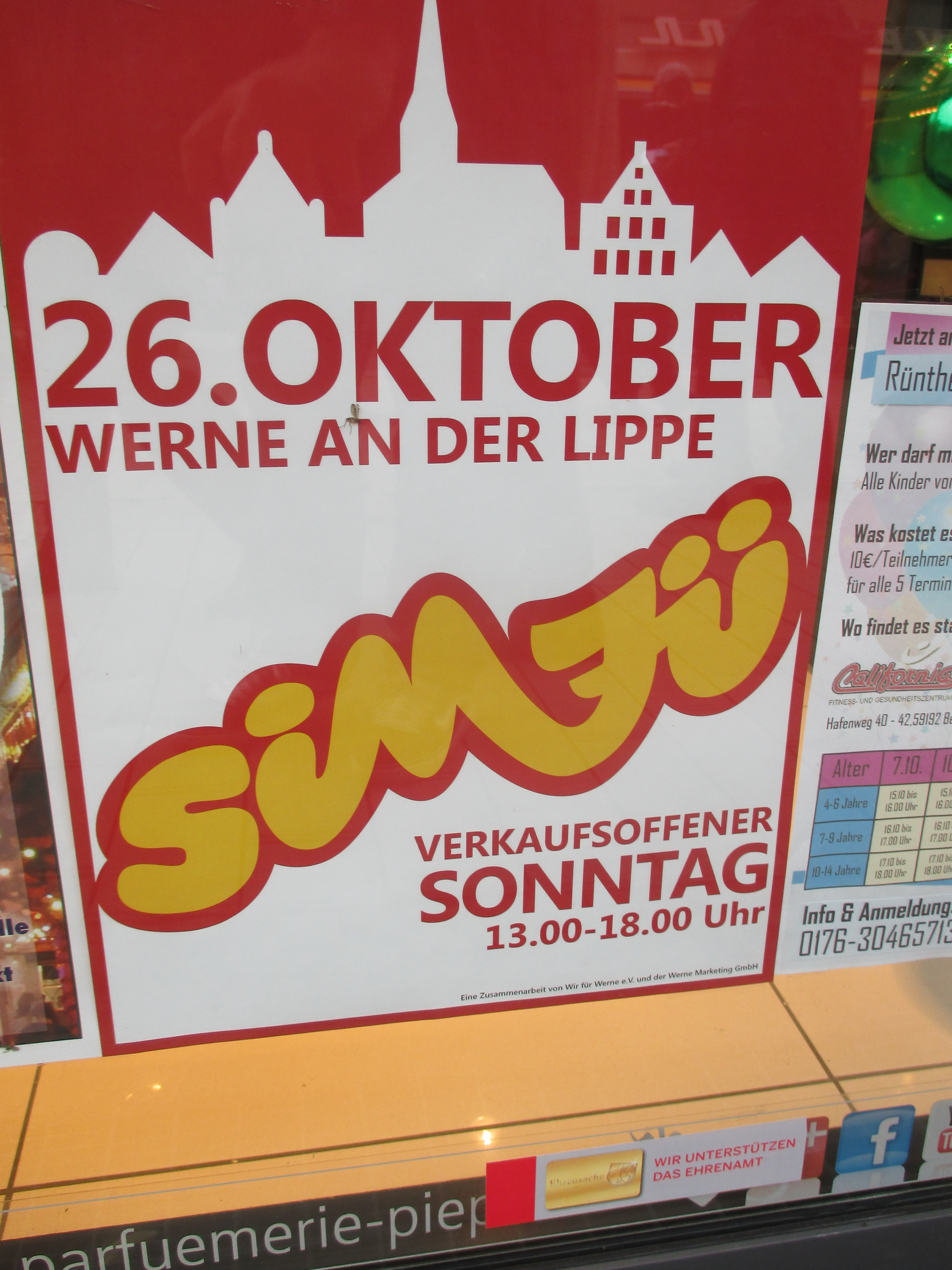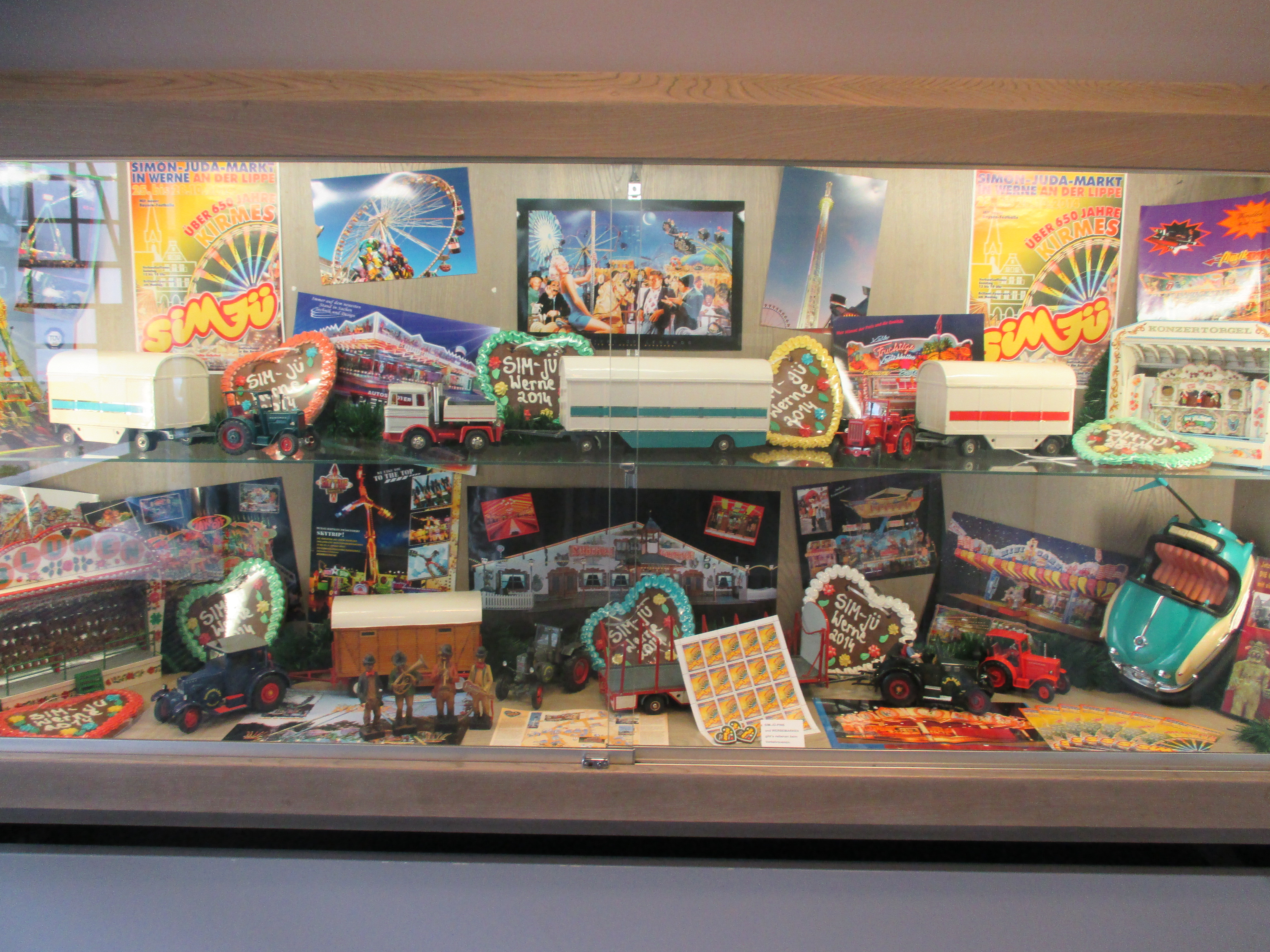 Zuvor geht es aber noch zum Geldtanken in die Sparkasse, die mit einer hübschen Vitrine zu Sim-Jü (kurz für Simon-Juda-Markt) aufwartet.