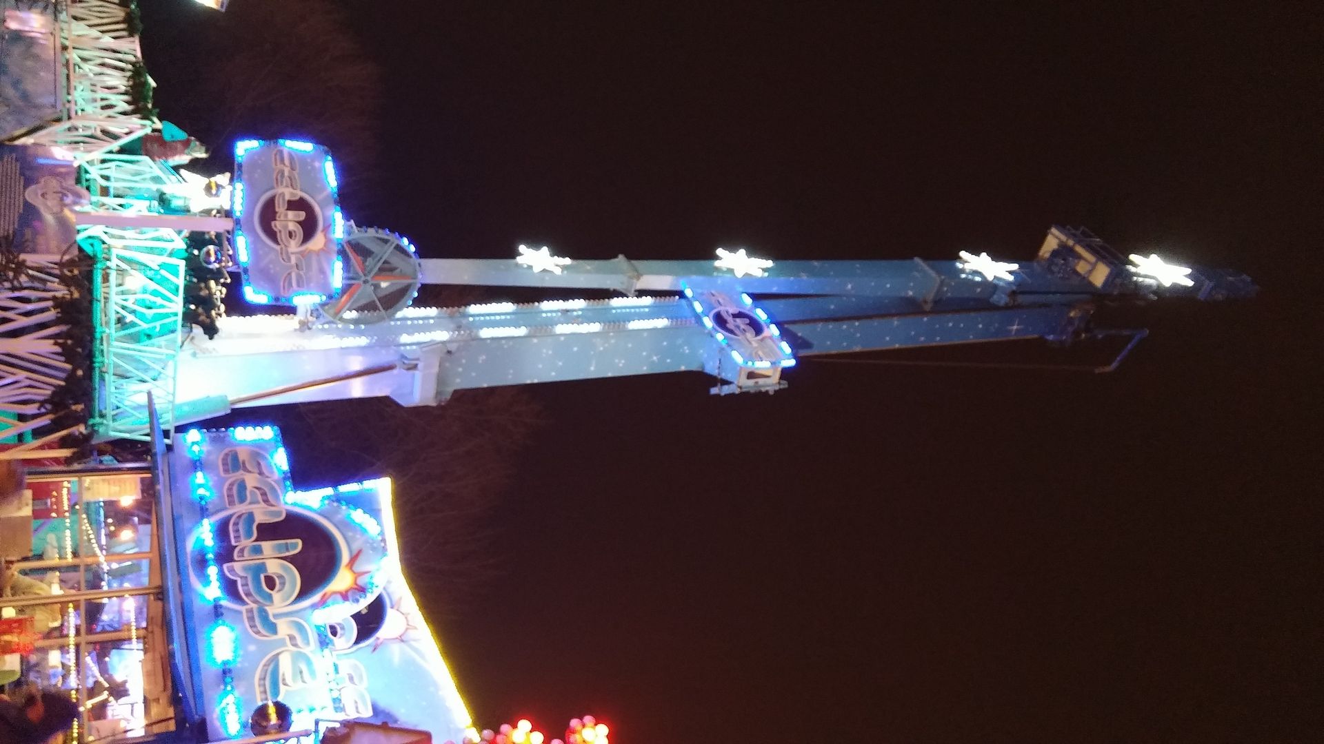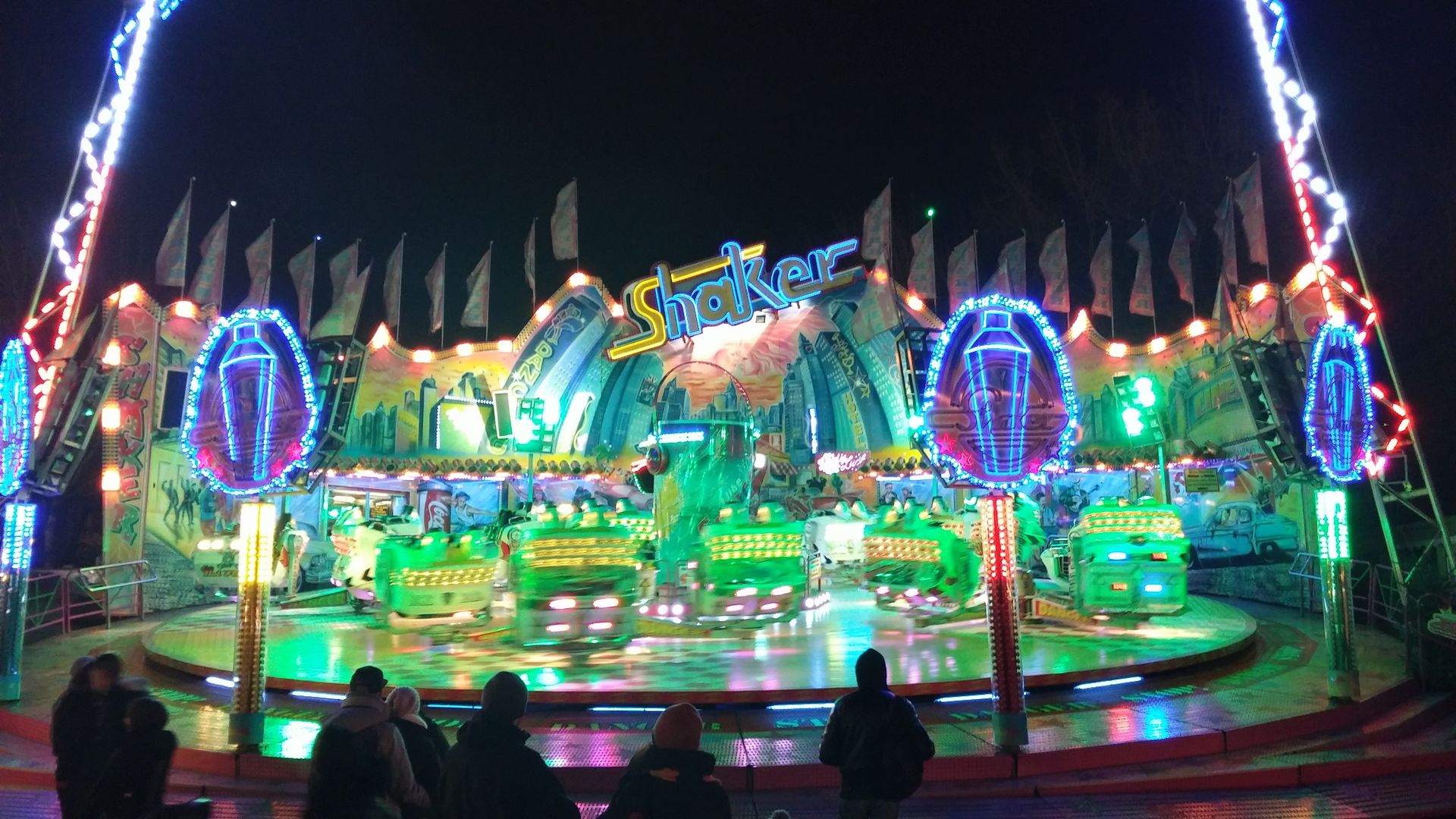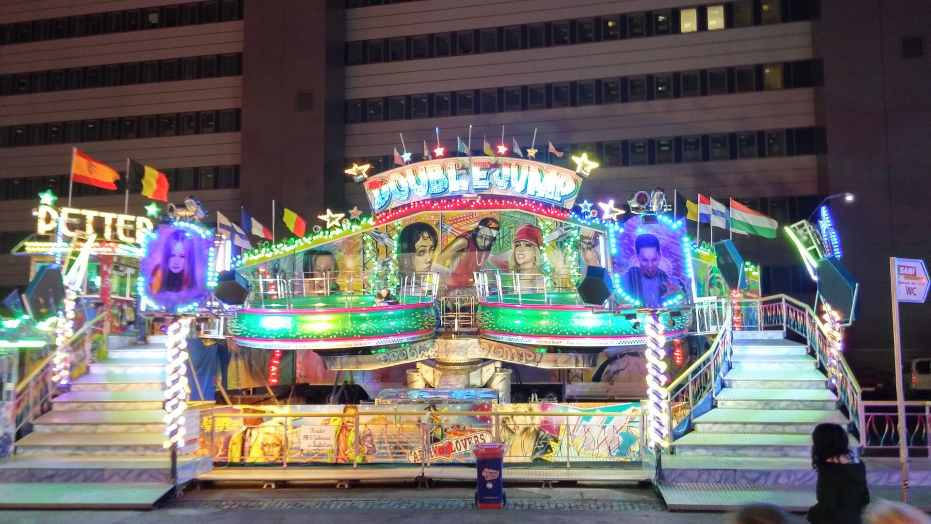 Ich will mich da gar nicht groß rechtfertigen, tue es aber dennoch: Dank Schlafausbeute von etwa 1,5 Stunden die Nacht zuvor war ich eh nicht sonderlich fit, samt, ich nenne es mal, eher wenig essen. Nach der ersten Runde hat Fabian es recht ordentlich gemeint mit der Fahrzeit aber auch der Intensität, so dass mir nicht schlecht war, aber direkt noch eine Runde hätte ich auch nicht gewollt. Beim zweiten Rundgang war ich mir unsicher, ob eine Fahrt eine gute Idee ist und bin auch sonst nichts gefahren, selbst mein Favorit Capriolo und Afterburner nicht - ich wusste einfach nicht, wie sich das mit der zwischenzeitlich eingenommenen Frites special, Müdigkeit und evt. Fahrtüchtigkeit auf dem Rückweg verträgt. In Sachen Rocket war ich sogar ganz froh, bei der Kombination deftig schwingen,s schnell drehen, rechtsrum, linksrum, rechtsrum, stoppen um drei Leute raus zu lassen, und dann nochmal eine rechts-links Zugabe hatte damit das auf jeden Fall beste Preis-Fahrzeitverhältnis: Ein Euro für mindestens 3,5 Minuten...