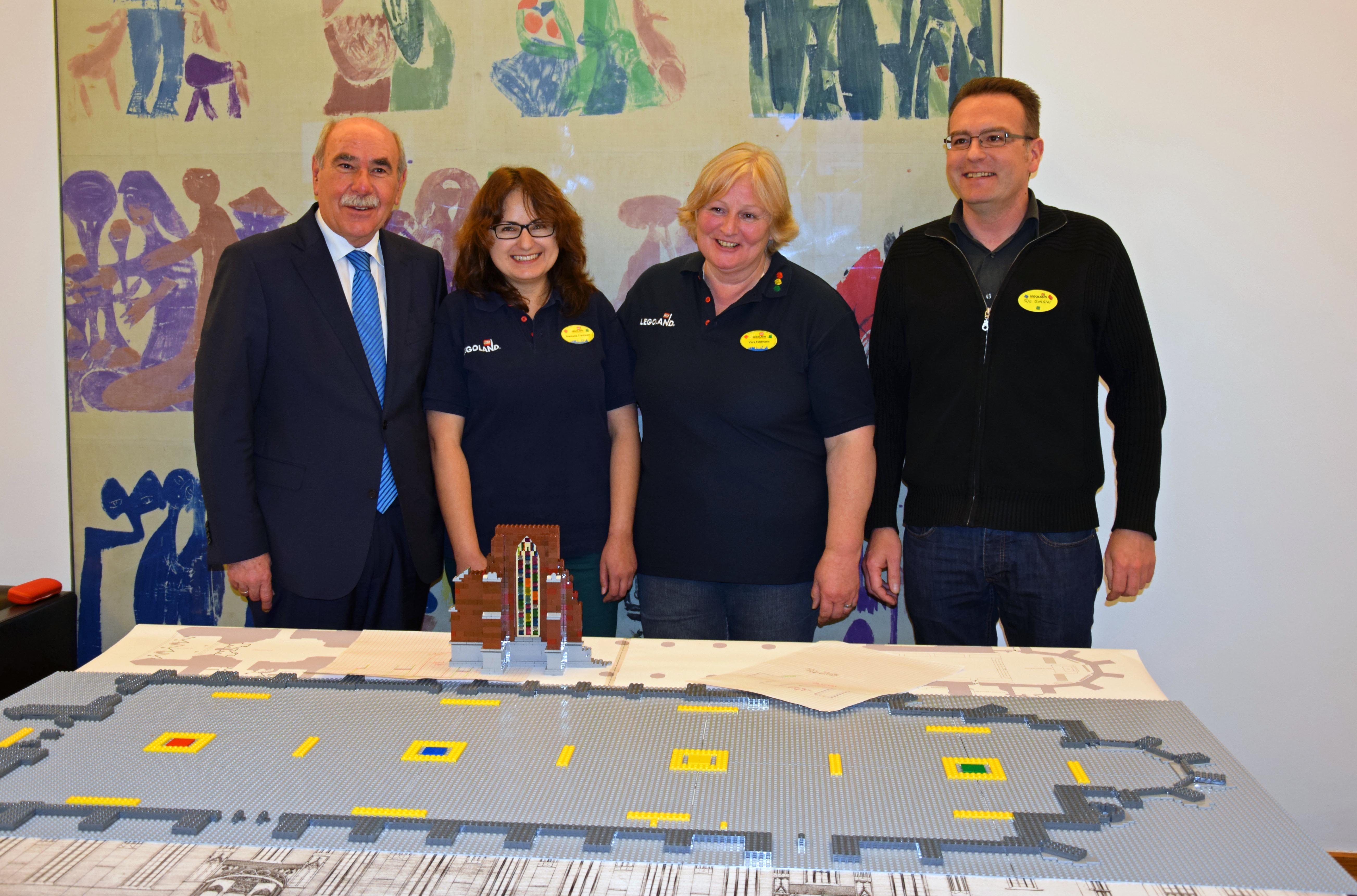Passend zum 125-jährigen Turmjubiläum des Ulmer Münsters mit seinem höchsten Kirchturm der Welt im Mai 2015 startet LEGOLAND Deutschland in Kooperation mit der Stadt Ulm ein ganz besonderes Bauprojekt. Aus handelsüblichen LEGO Steinen soll ein originalgetreues Modell des weltberühmten Bauwerks entstehen. Die beiden LEGO Modelldesignerinnen Anastasia Trautwein und Vera Feldmann werden das Projekt gemeinsam umsetzen. Zusammen mit dem Ulmer Oberbürgermeister Ivo Gönner präsentierten sie am vergangenen Freitag (28. Novmeber) das Vorhaben und gaben den Startschuss für die Bauarbeiten.