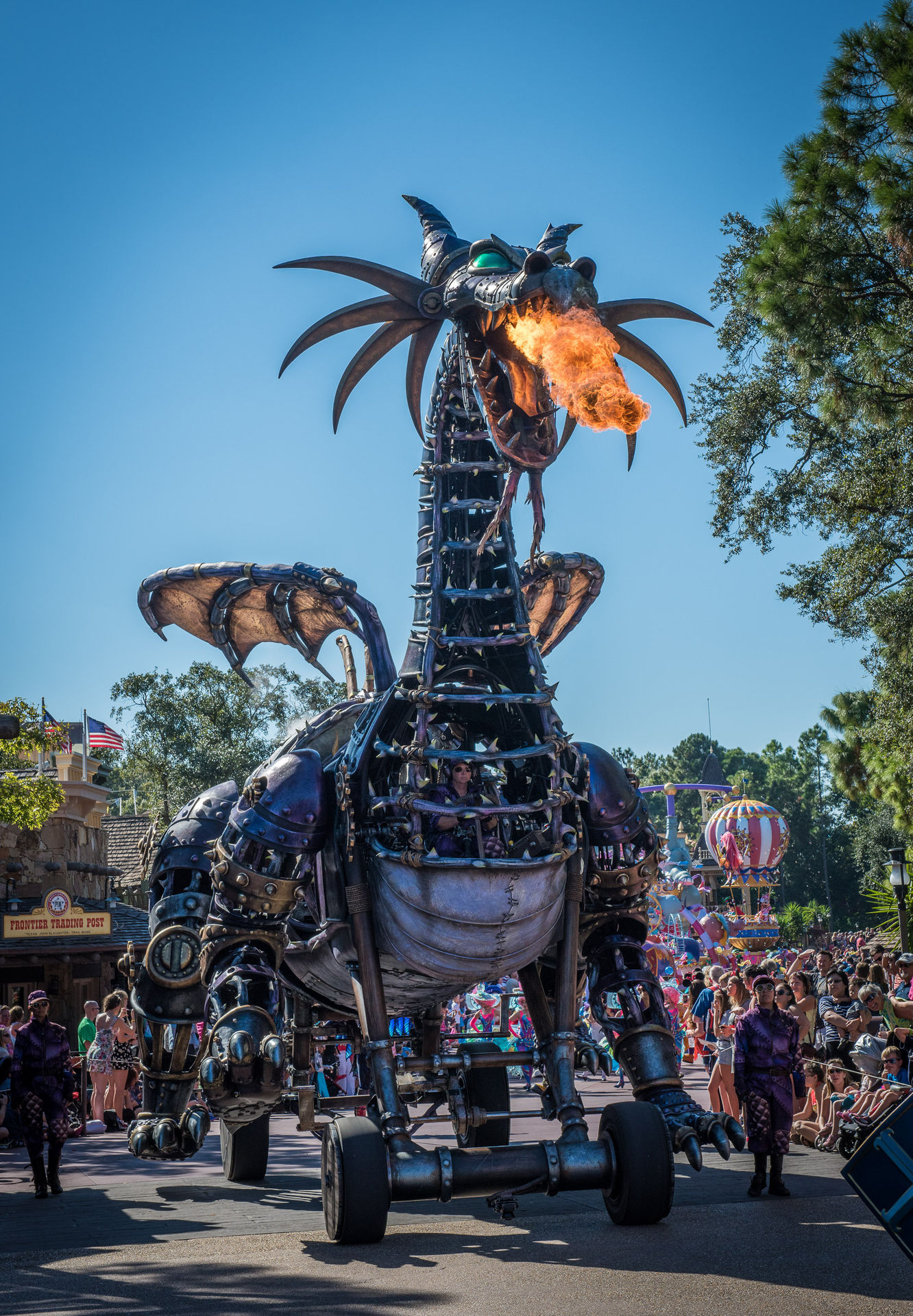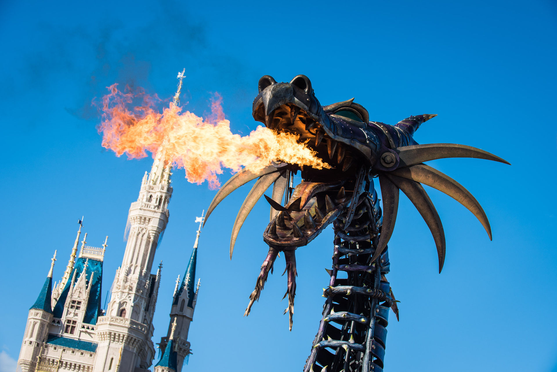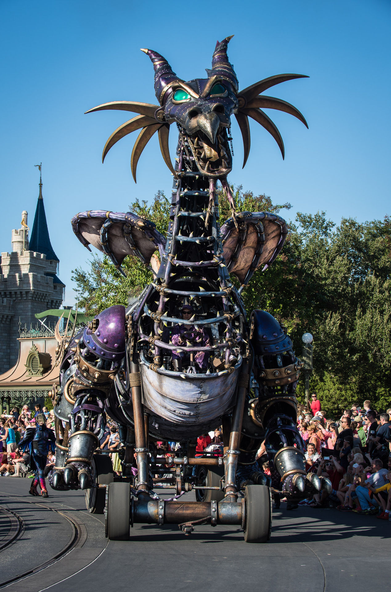 Wesentlich mehr beeindruckt war ich ehrlich gesagt von der neuen „Festival of Fantasy“-Parade. Sicher: Disney ist die Grandmotherbitch der Themenpark-Paraden, aber diese Nummer ist nochmal eine ganz andere Liga. Das beginnt schon mit den unglaublich großen Floats mit vielen riesigen beweglichen Elementen, geht über die prachtvollen Kostüme und endet bei einem unfassbaren Cast von dutzenden Look-A-Likes wie Anna und Elsa, Rapunzel, Merida, Belle und Arielle (die Namen der komplementären Typen spielen keine Rolle). Das alles mit einem erstklassigen Soundtrack. Und dem Drachen. Ah, der Drache…