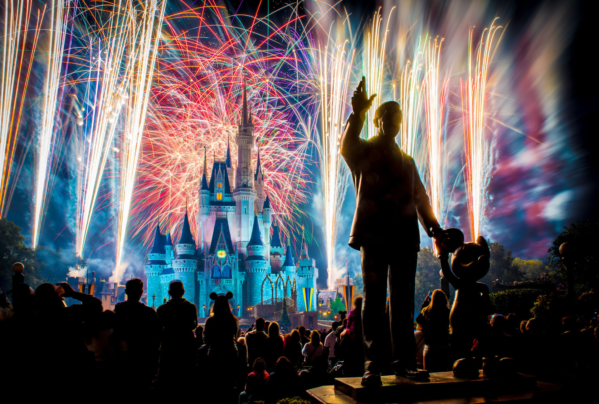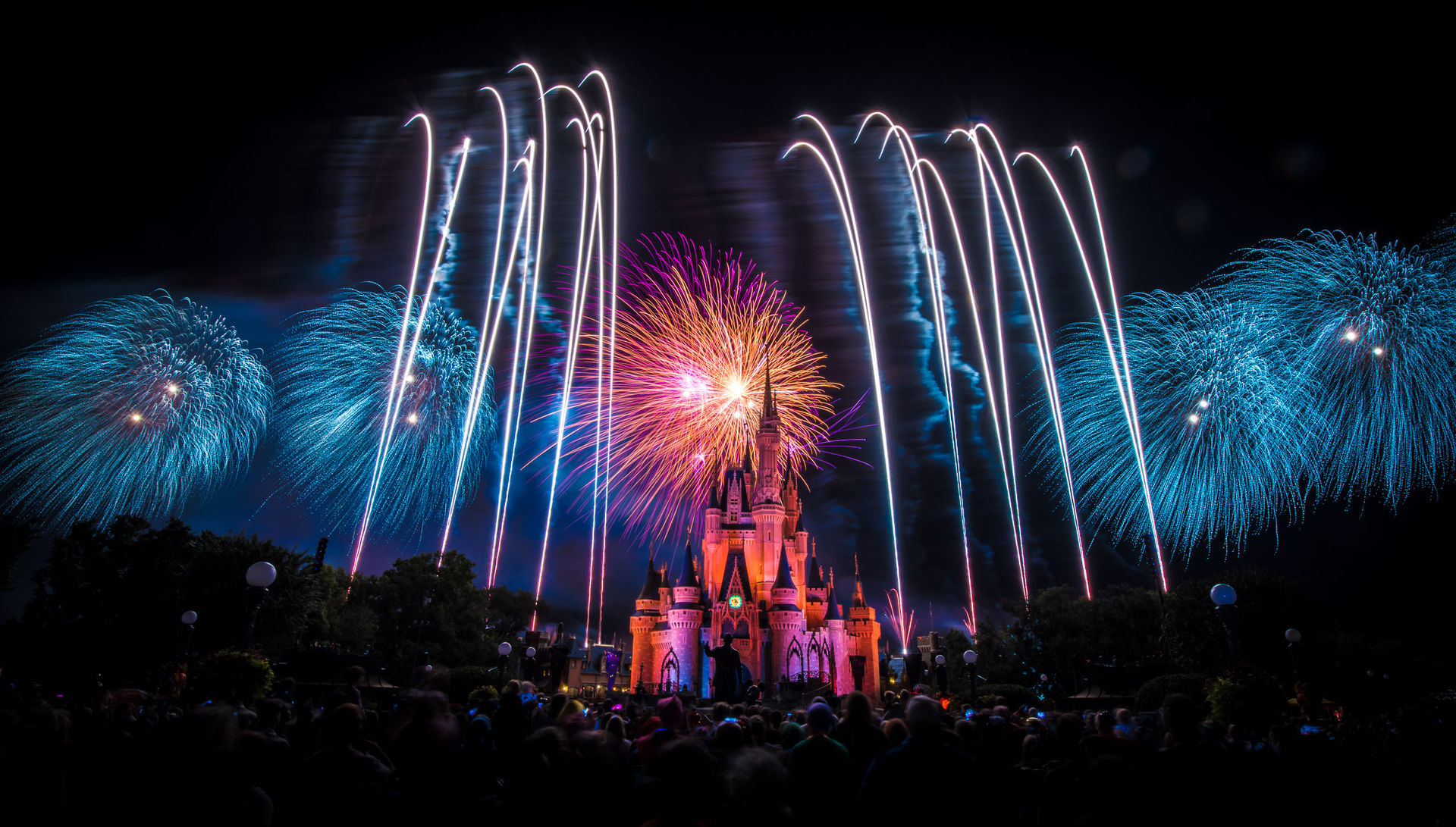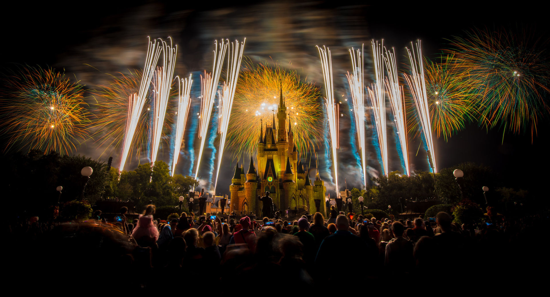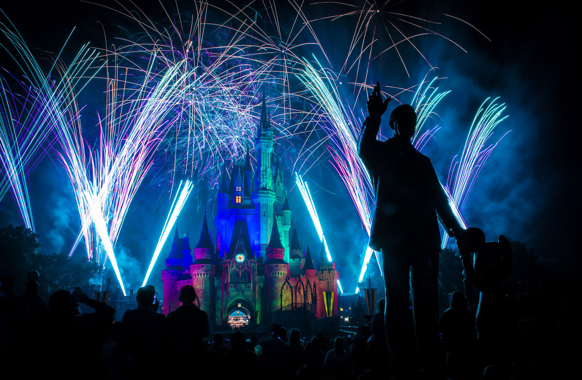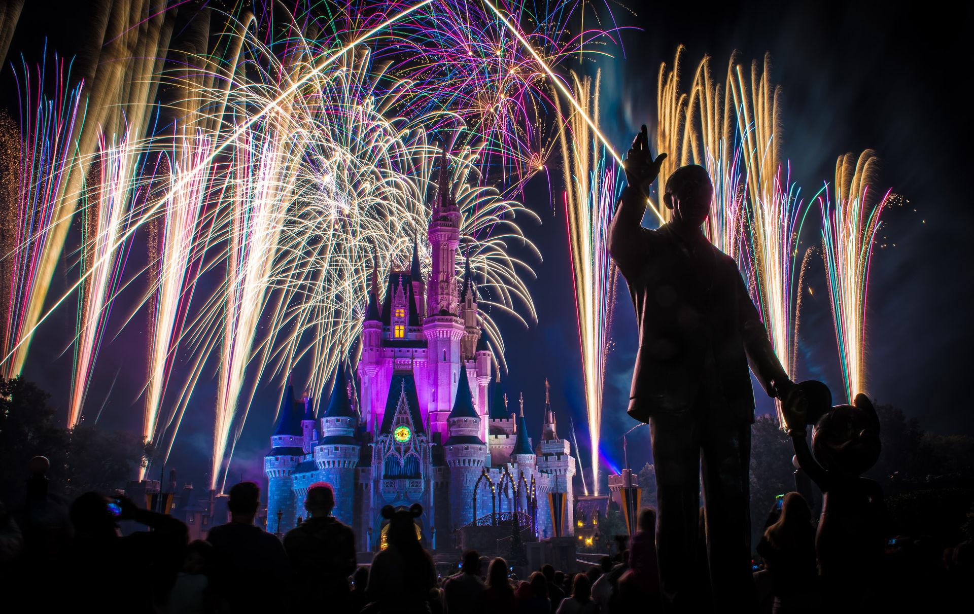 Die Wartezeiten im MK hängen auch zu einem großen Teil vom Glück ab. Letzten Donnerstag lagen diese - obwohl es ein Tag ohne Sonder-Event war - absolut im Rahmen. Durch zeitiges Erscheinen, eine elegante FP+ Kaskade und zwei Stunden Auszeit im California Grill, haben wir nirgends länger als 15 Minuten gestanden und dafür, dass wir erst 10 Minuten vor dem Feuerwerk am Hub waren, konnte sich unser Platz (und das Schloss von ebenjenem) durchaus sehen lassen.