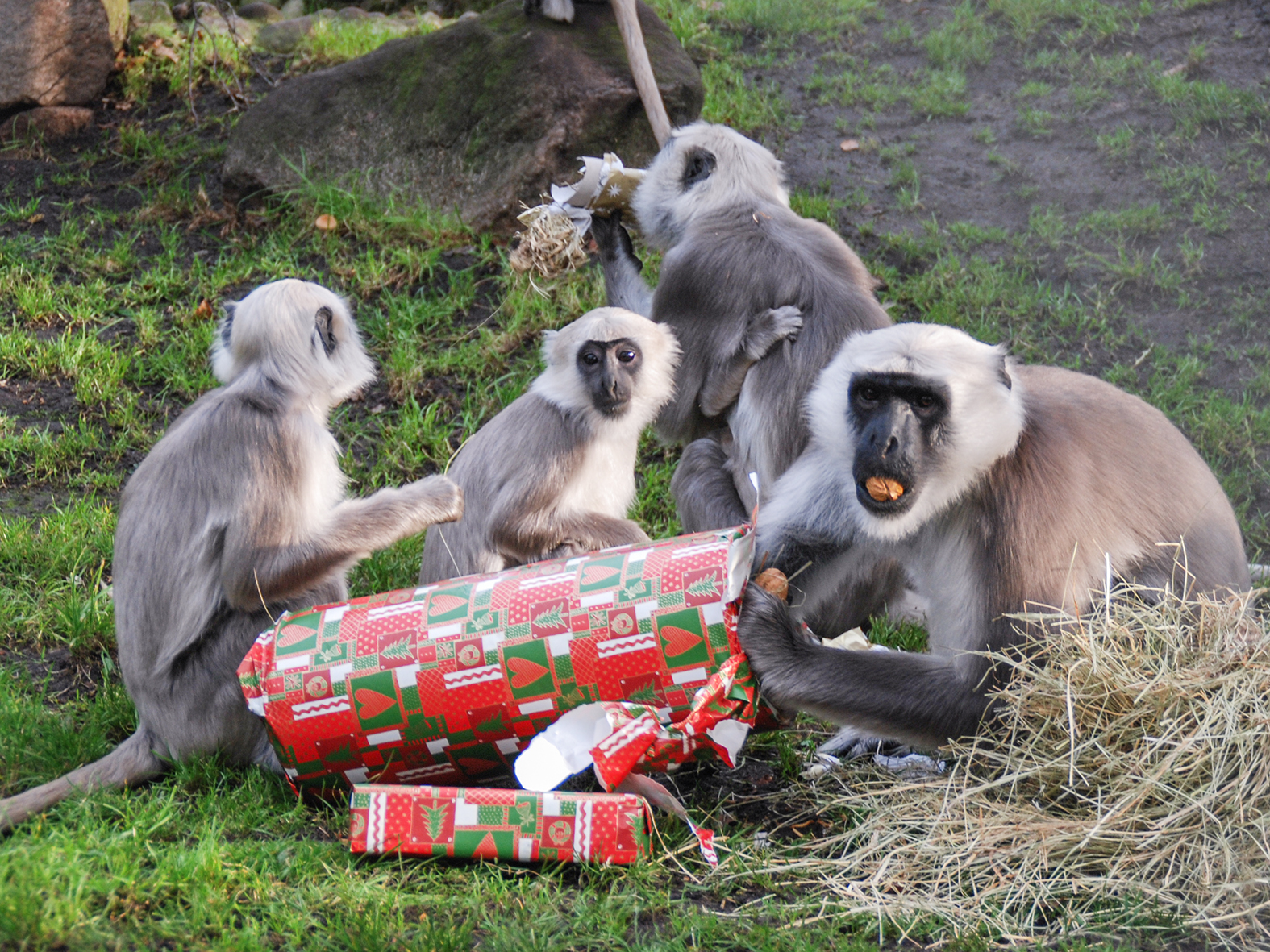 Weihnachten bei Affenfamilie Hulman mit Nüssen und anderen Leckereien