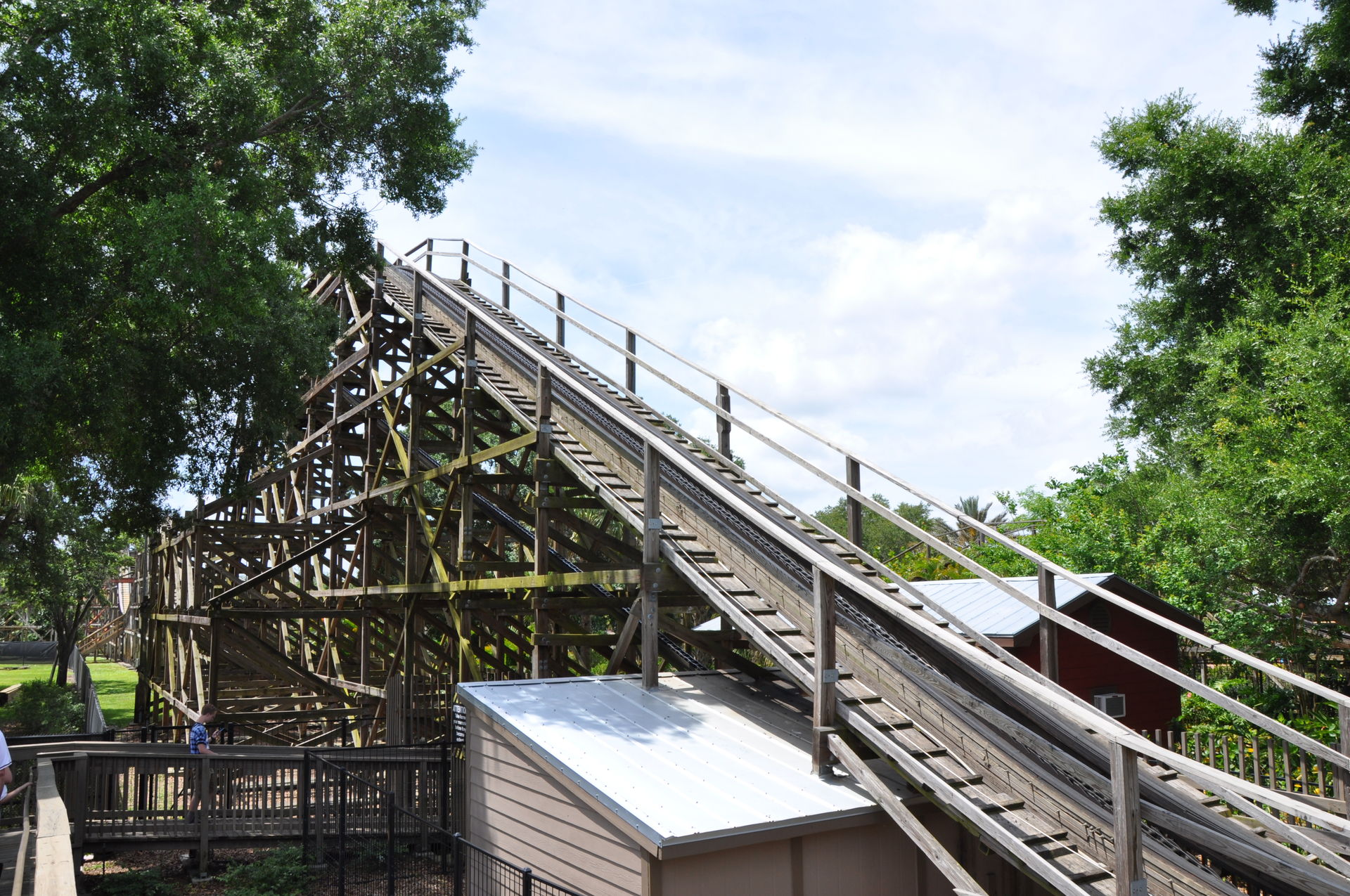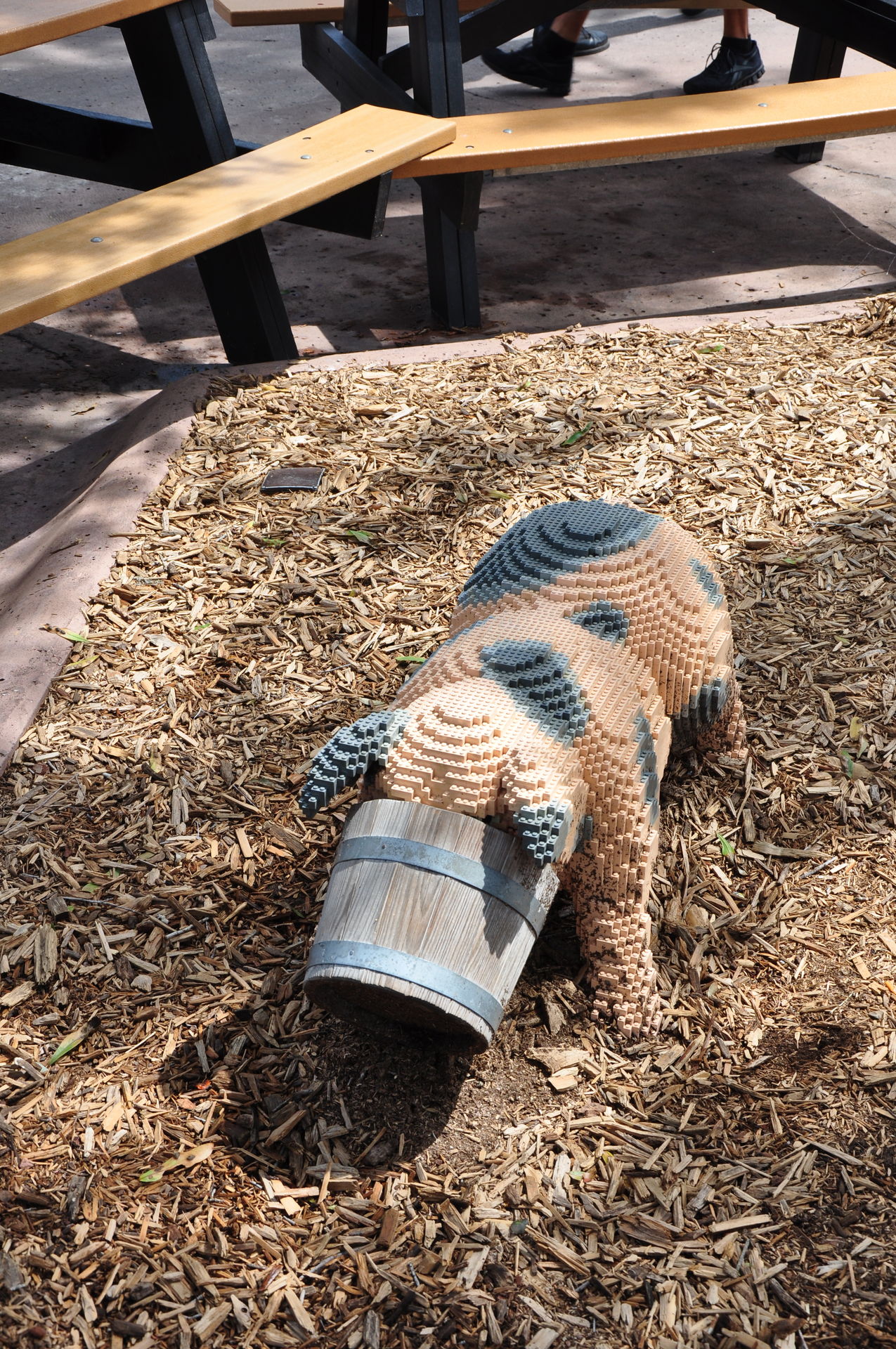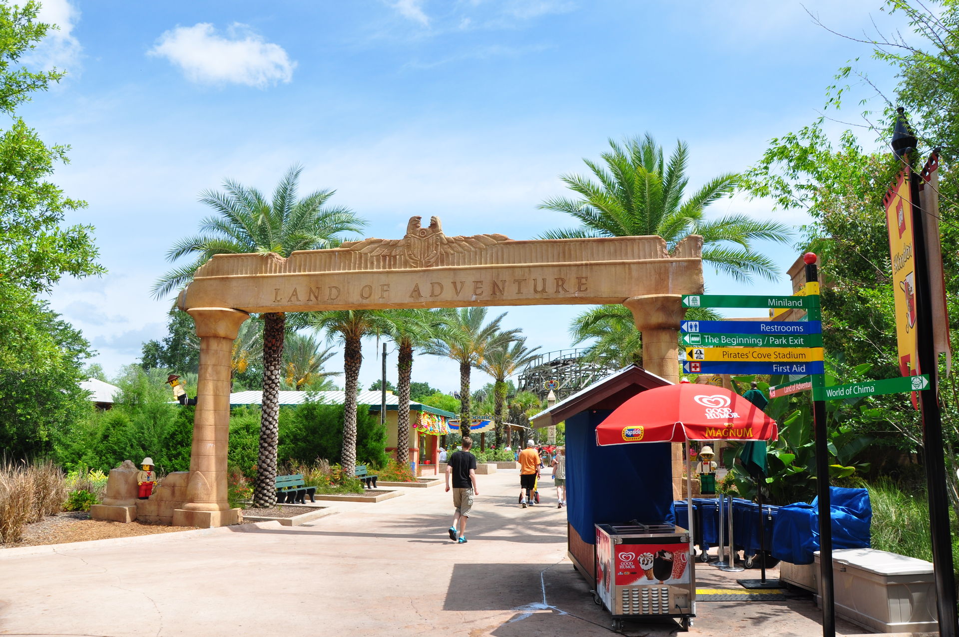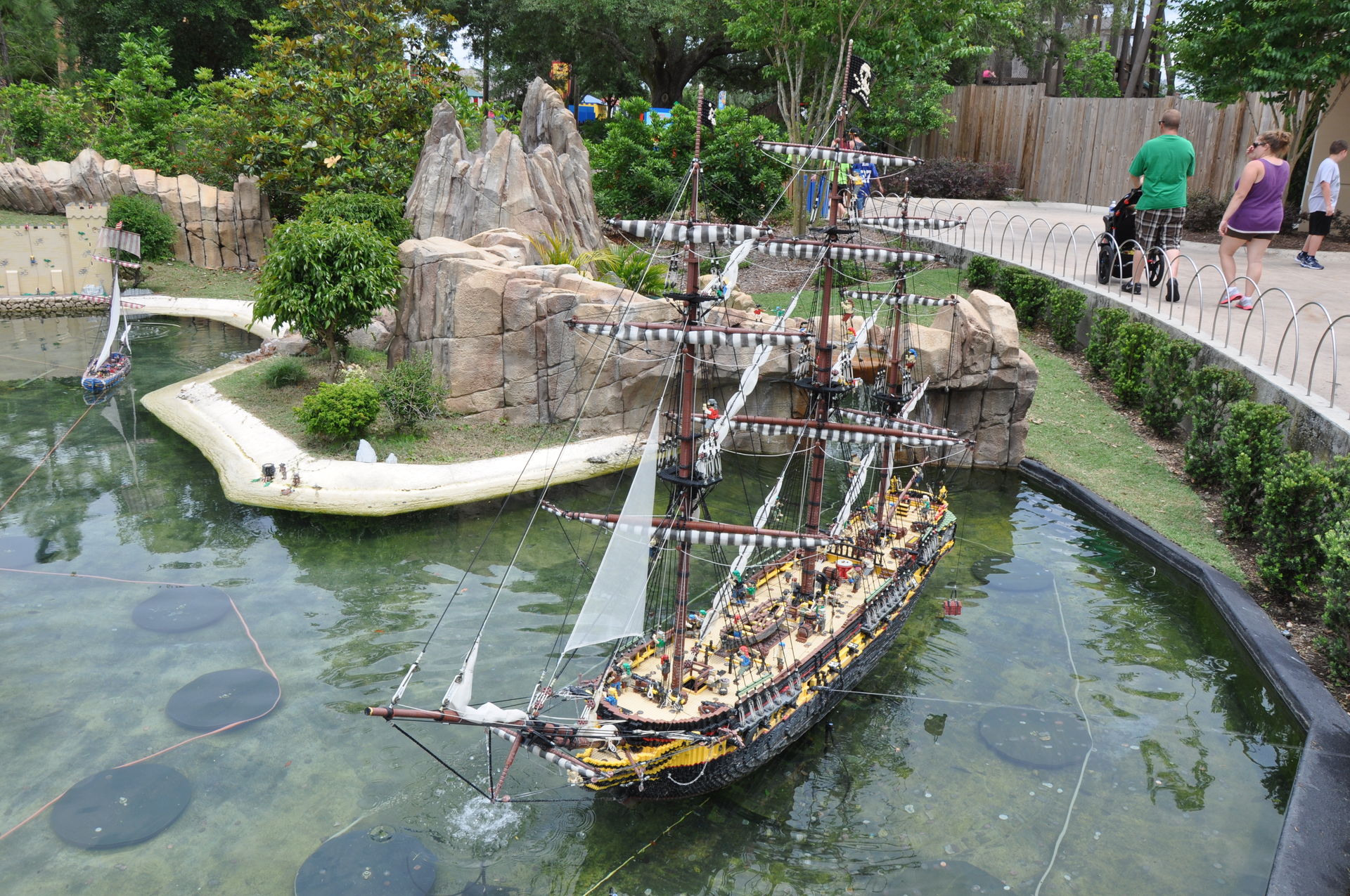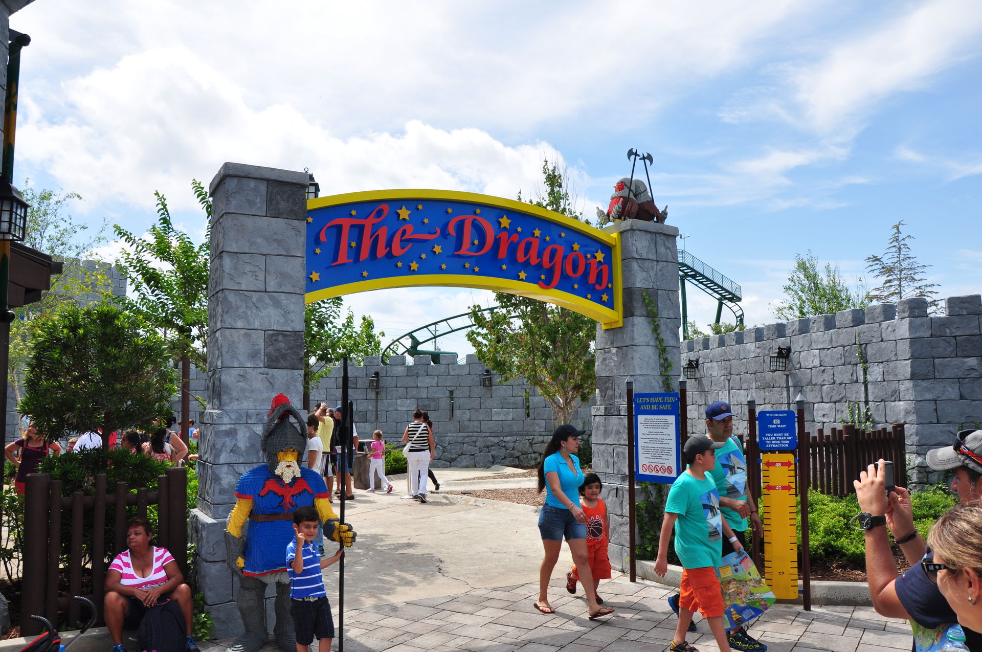 Die bunten Bauklötze gibt es noch gar nicht so lange in Florida. Der Park öffnete erst am 15.10.2011 seine Pforten. Davor hatte er eine eher wechselvolle Vergangenheit als Cypress Garden hinter sich. Diesem Umstand verdankt der Park auch, dass er den einzigen Woody aller Legoländer hat. Denn dieser wurde vom Vorgängerpark mit übernommen. Der Park liegt schön am Ufer des Lake Eloise und nutzt diesen auch für seine Shows. Diese haben wir jedoch nicht gesehen. Eine weitere Besonderheit ist der zugehörige Wasserpark. Dieser hatte am Tag unseres Besuches leider geschlossen. Das Wetter war so schwül gewesen, da hätten wir uns gerne erfrischt. Ob wir die Zeit dafür gefunden hätten ist fraglich, denn wir haben unseren Besuch dann vorzeitig wegen eines heftigen Gewitters abgebrochen. So konnten wir dann noch in Ruhe Koffer packen. Etwas mehr haben wir uns darüber geärgert, dass auch die Flying School wegen Wartungsarbeiten geschlossen hatte. Ist dieses doch der größte Coaster im Park. Da man den Weg schon an der Driving School abgesperrt hat, kam ich nicht einmal in die Nähe um Fotos zu machen.