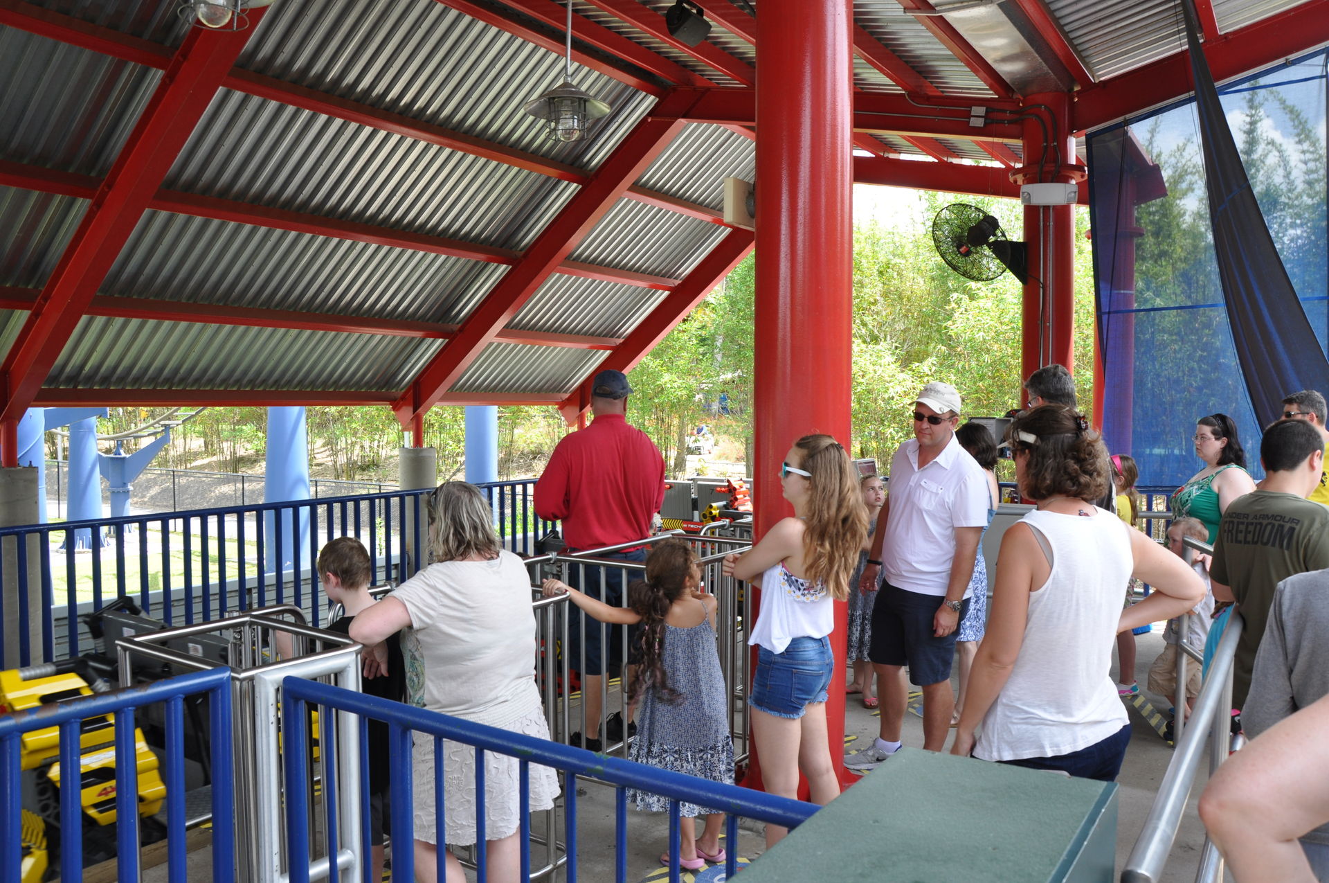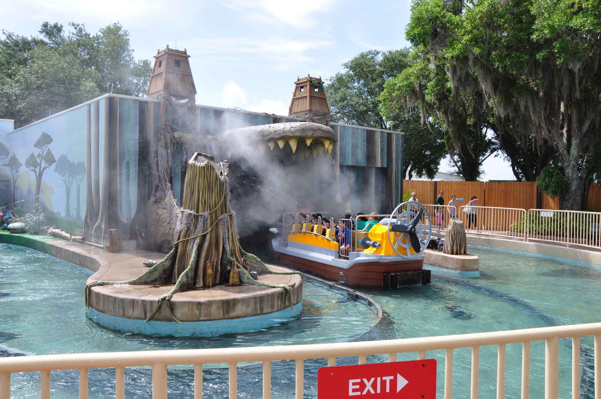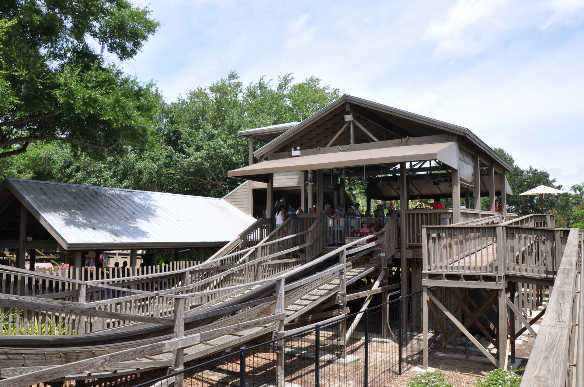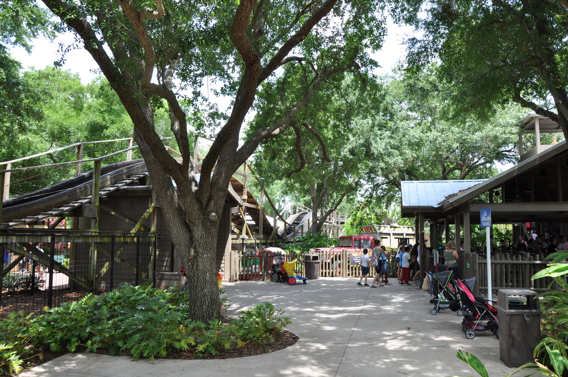 Die bunten Bauklötze gibt es noch gar nicht so lange in Florida. Der Park öffnete erst am 15.10.2011 seine Pforten. Davor hatte er eine eher wechselvolle Vergangenheit als Cypress Garden hinter sich. Diesem Umstand verdankt der Park auch, dass er den einzigen Woody aller Legoländer hat. Denn dieser wurde vom Vorgängerpark mit übernommen. Der Park liegt schön am Ufer des Lake Eloise und nutzt diesen auch für seine Shows. Diese haben wir jedoch nicht gesehen. Eine weitere Besonderheit ist der zugehörige Wasserpark. Dieser hatte am Tag unseres Besuches leider geschlossen. Das Wetter war so schwül gewesen, da hätten wir uns gerne erfrischt. Ob wir die Zeit dafür gefunden hätten ist fraglich, denn wir haben unseren Besuch dann vorzeitig wegen eines heftigen Gewitters abgebrochen. So konnten wir dann noch in Ruhe Koffer packen. Etwas mehr haben wir uns darüber geärgert, dass auch die Flying School wegen Wartungsarbeiten geschlossen hatte. Ist dieses doch der größte Coaster im Park. Da man den Weg schon an der Driving School abgesperrt hat, kam ich nicht einmal in die Nähe um Fotos zu machen.