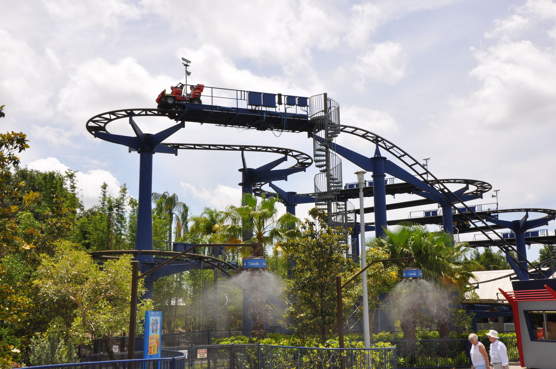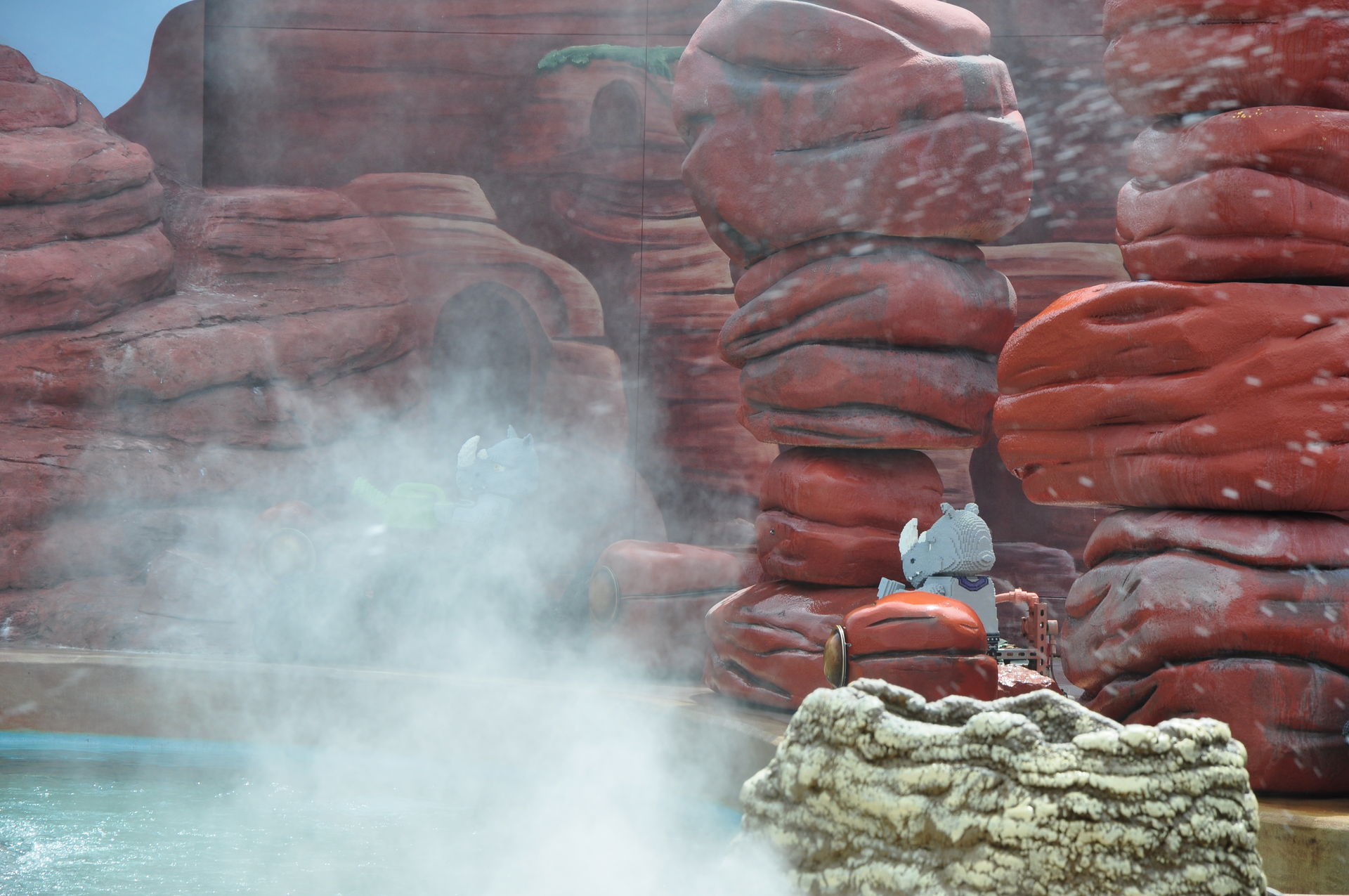Inverted Coaster konnten wir leider nicht fahren. Er war wegen Wartungsarbeiten geschlossen. Da auch der dahinter liegende Wasserpark geschlossen war, hatte man den Weg bereits an der Fahrschule gesperrt. So blieben nur ein paar Fotos aus der Ferne.
