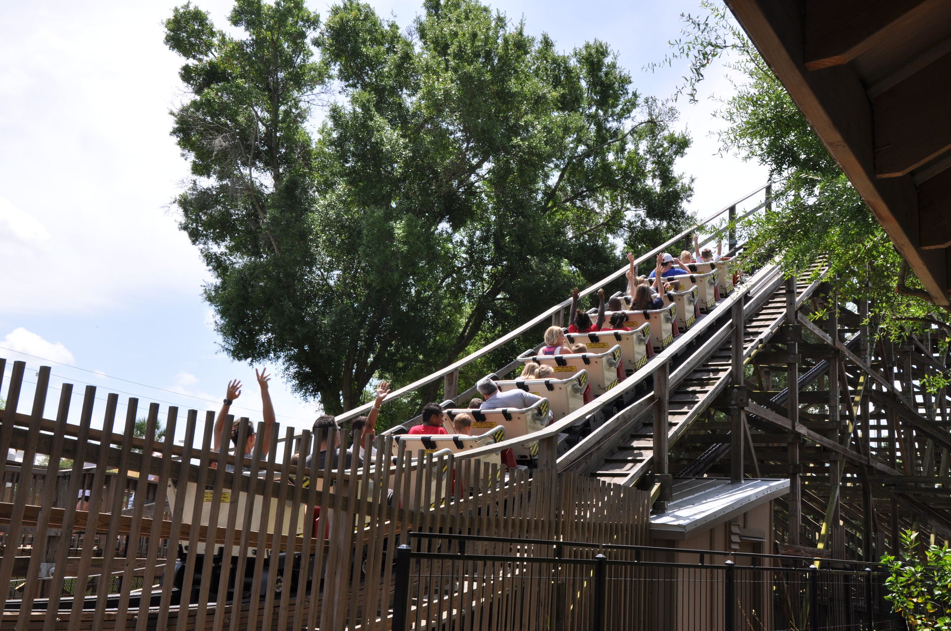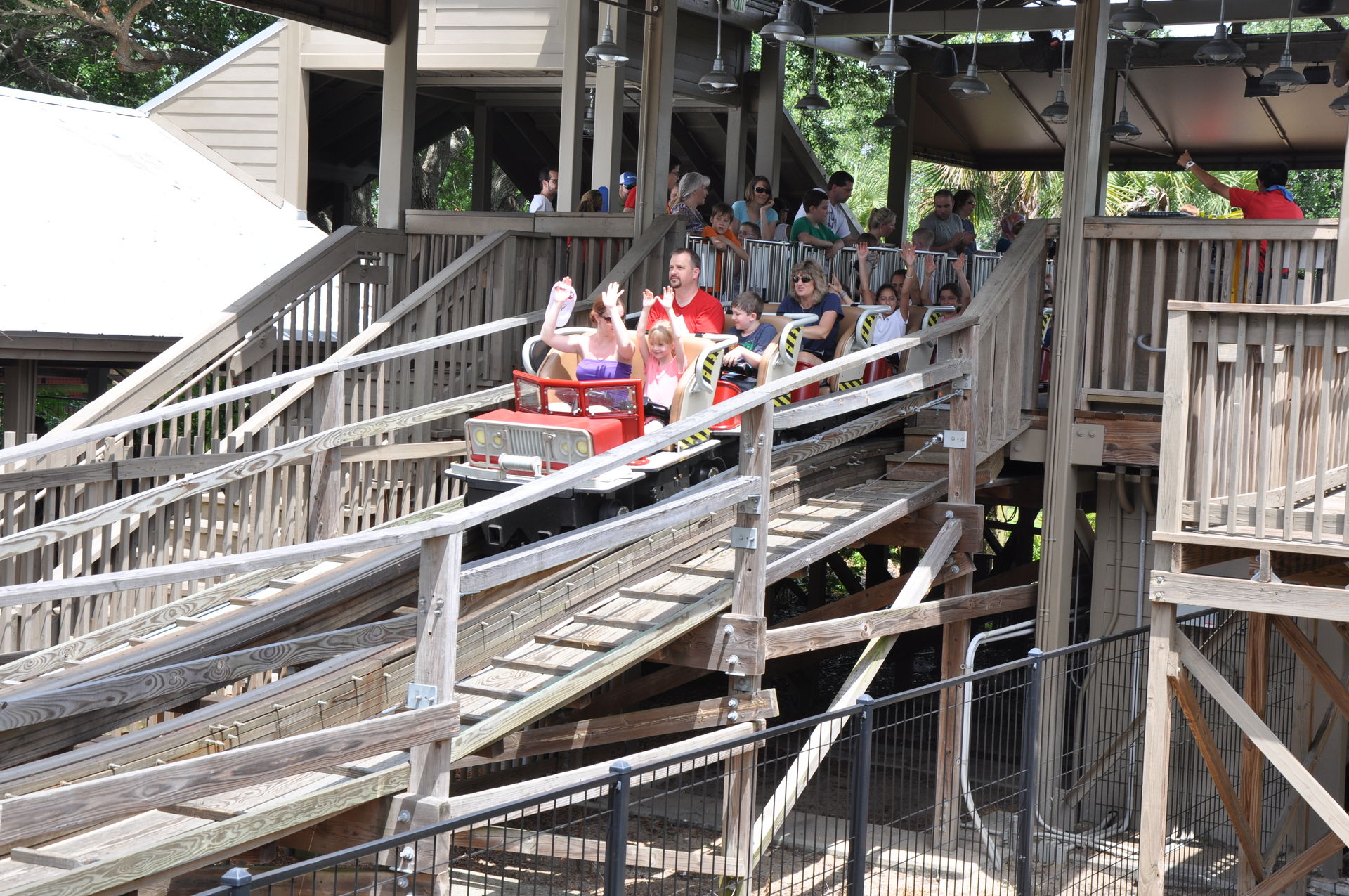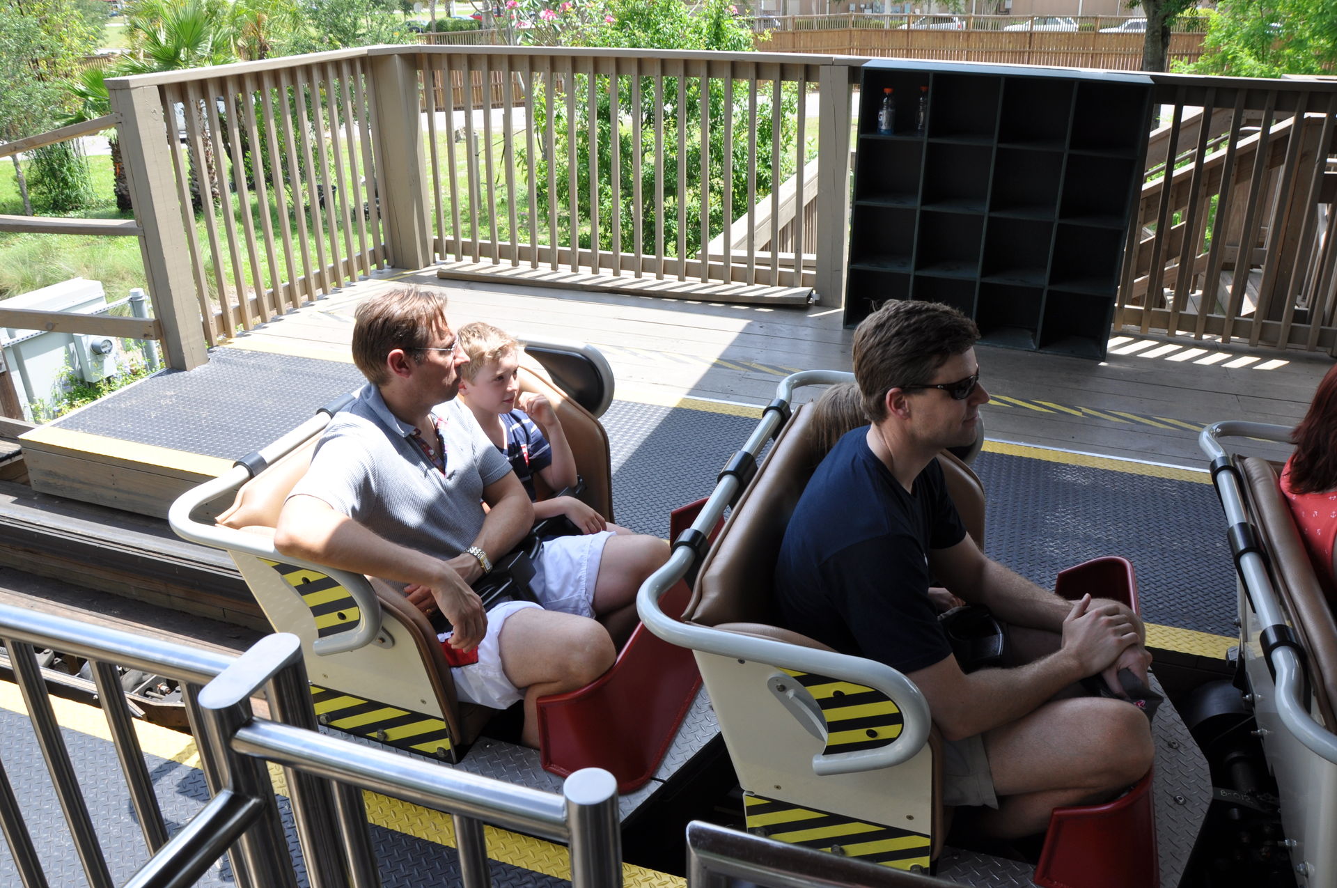 Nun sind wir ihn doch noch gefahren. Kurz vor unserem ersten Besuch des Legoland Windsor musste dieser Coaster dort Ende 2009 dem Neubau eines Hotels weichen. Nachdem er eingelagert war, bekam er 2011 in Florida neues Leben eingehaucht. Es handelt sich um die aus anderen Legoländern bekannte Wilde Maus Large Park von