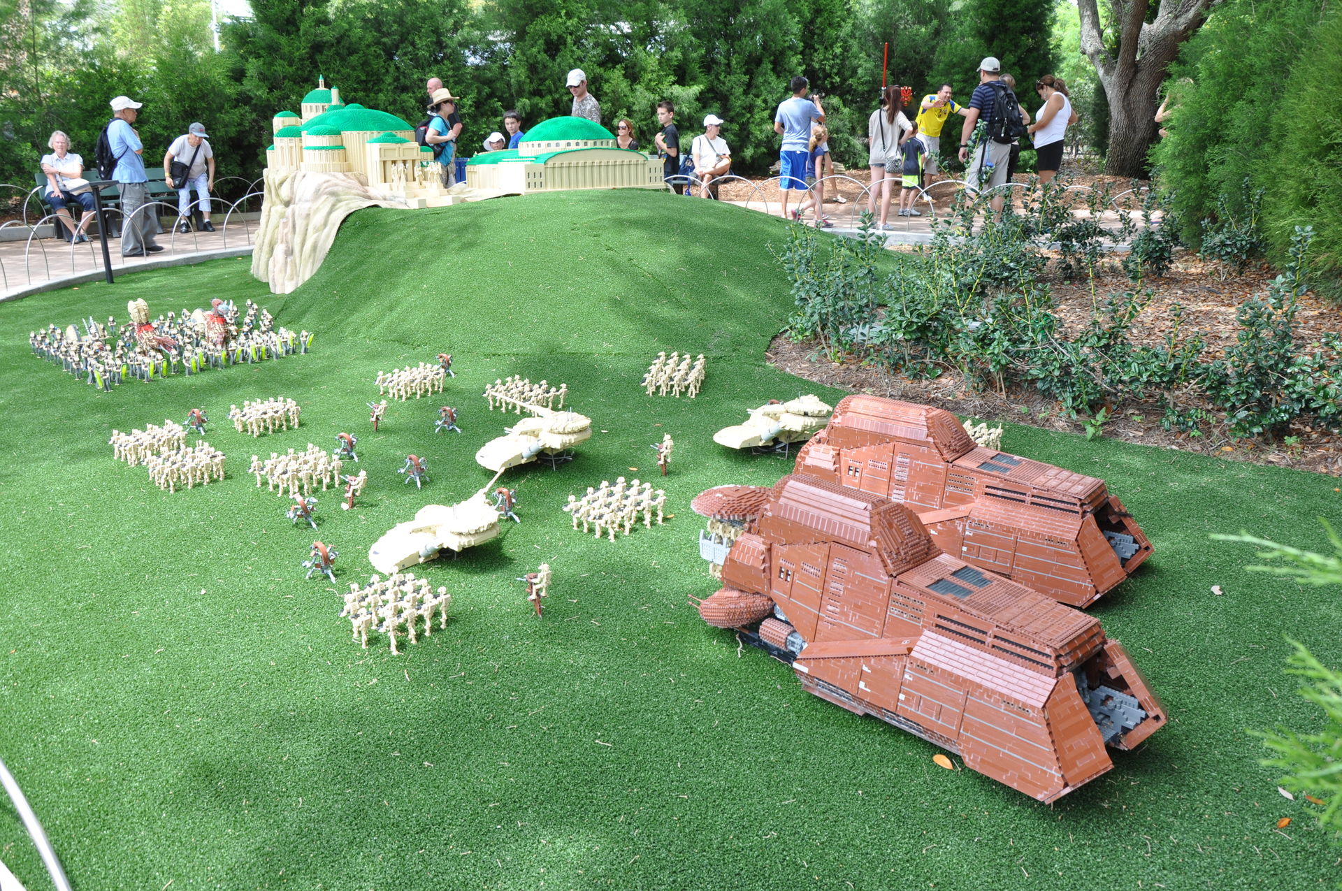 Die Hauptattraktion eines jeden Legolandes ist ja das Miniland. Hier in Florida gibt es nur die Bereiche USA und Star Wars. Aber alles sehr schön gemacht. Insbesondere die Eidechsen Animation auf dem Dach des Palastes von Naboo hat uns sehr gut gefallen. Es zeigt aber leider auch die Einstellung vieler Amerikaner, für die es nur Amerika gibt.