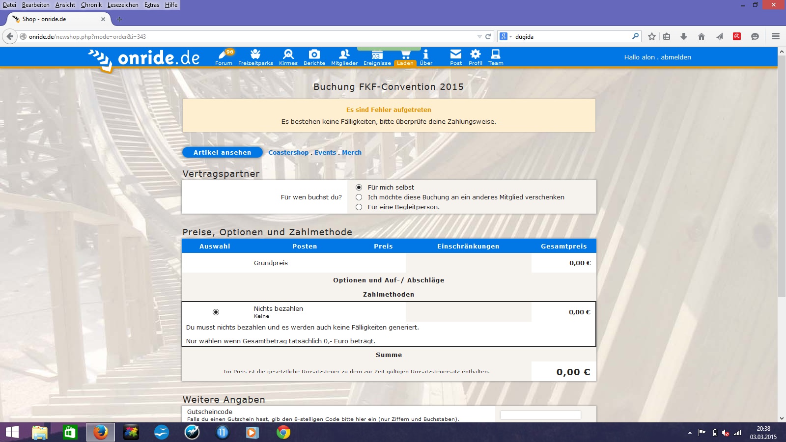 - Das Event kostet 25 ¤ pro Person. Die Bezahlung des Event findet vor Ort an der Tageskasse statt.