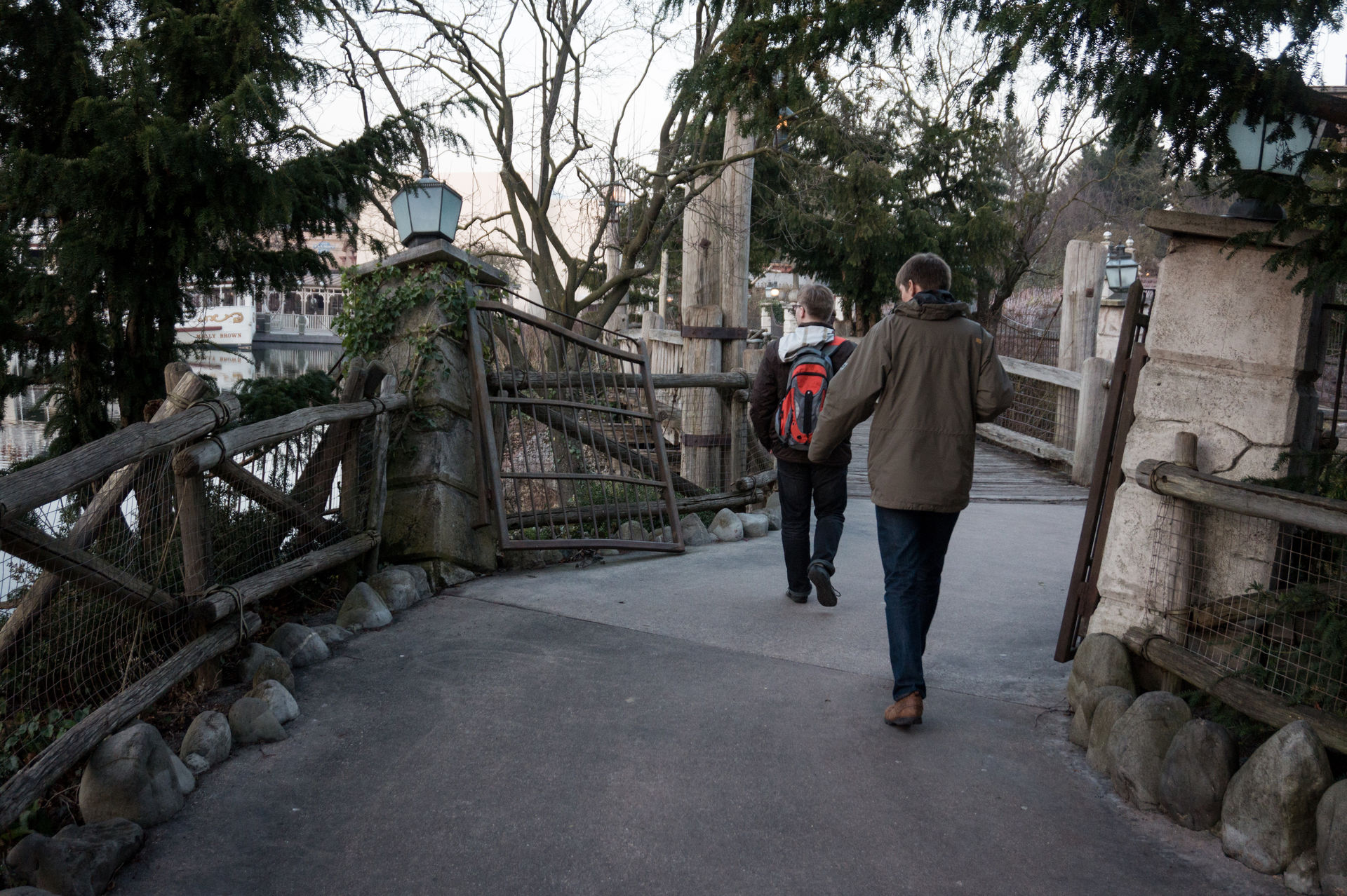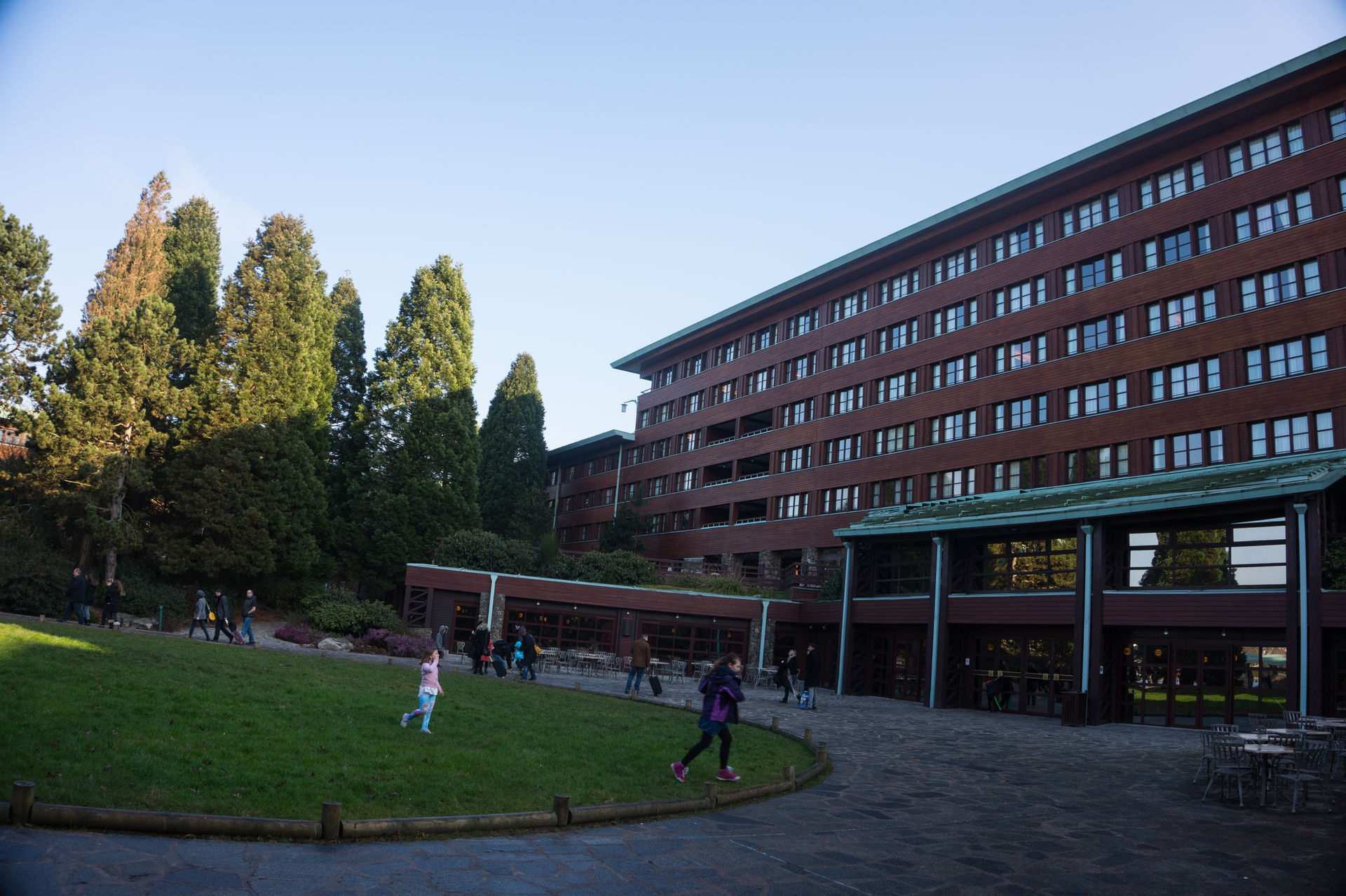 Zusammen ging es dann mit der RER-A nach Chessy - Marne-la-Vallée um ins Hotel Sequoia Lodge einzuchecken. Obgleich 1-2 Kunden noch vor uns in der Schlange waren dauerte es keine 10 Minuten bis wir durch die Parkanlage zu unserem Zimmer schlenderten, recht vorbildlich, immerhin kennt man dieses bei gleichem Andrang und gleichen Prozedere aus Port Aventura anders, obgleich die sture Eigenart der Franzosen nur französisch zu sprechen sich an der Rezeption mal wieder durchgesetzt hatte. Dafür aber quasselte der Angestellte in der Schlange recht gerne auf Deutsch.